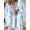 Fashion Sweaters Women Autumn Winter Lace V Neck Heart Print Knit