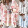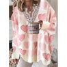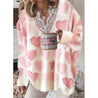 Fashion Sweaters Women Autumn Winter Lace V Neck Heart Print Knit Jumper Long Sleeve Loose Pullovers Plus Size