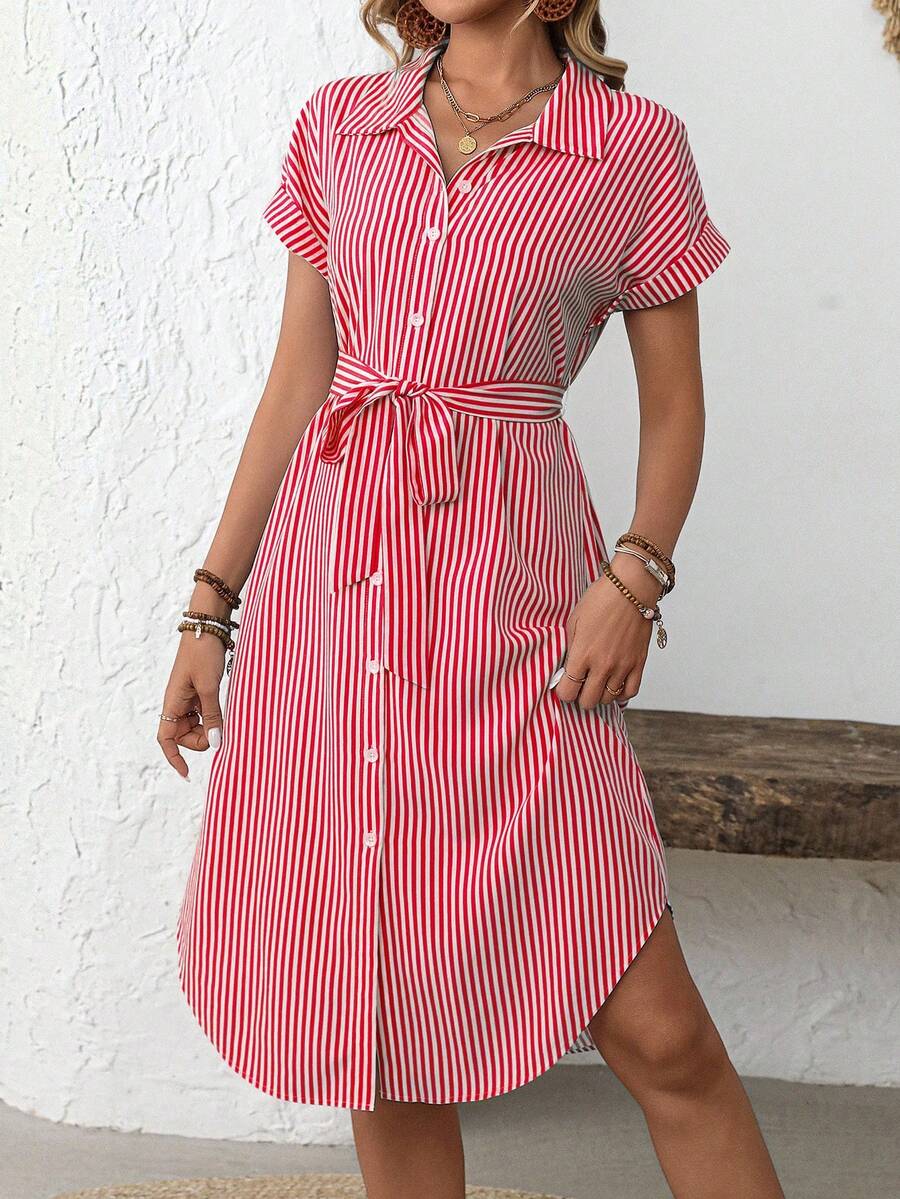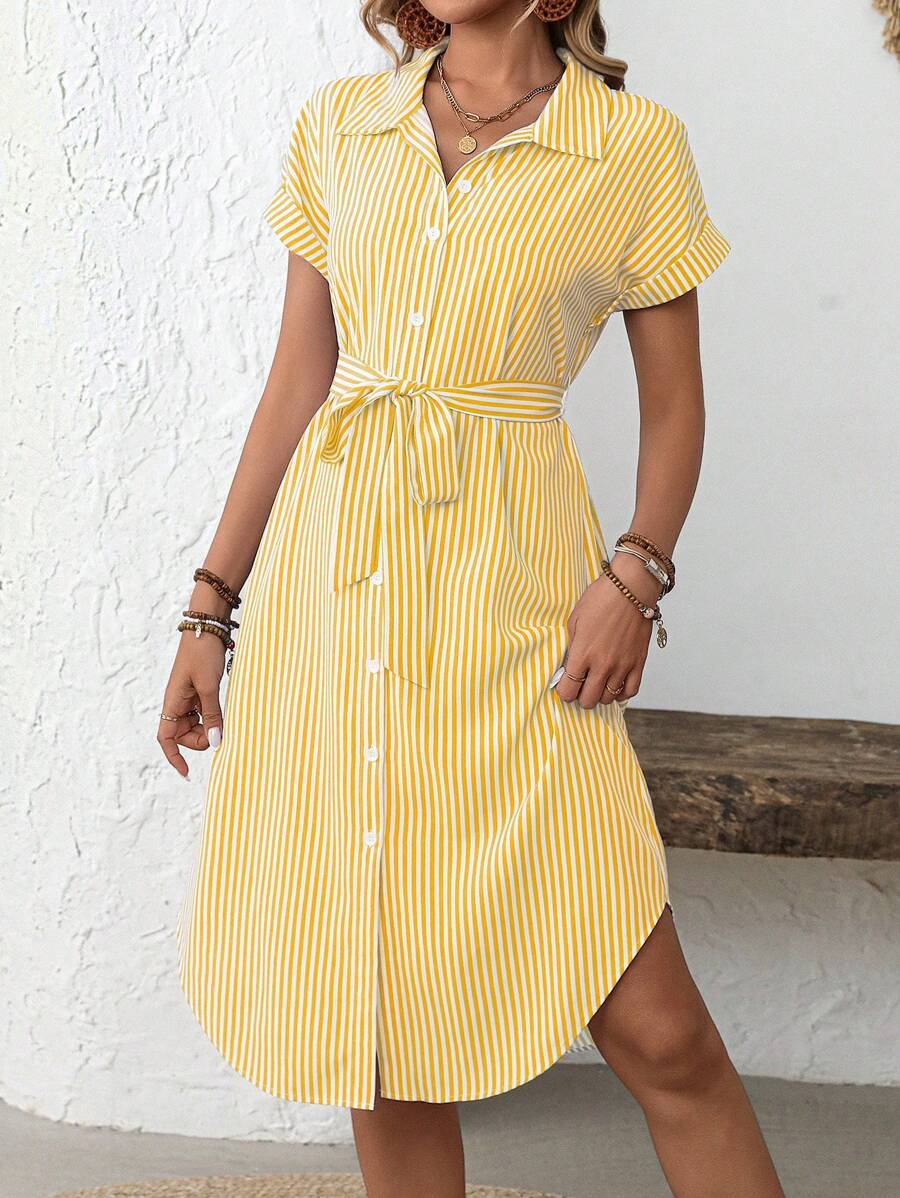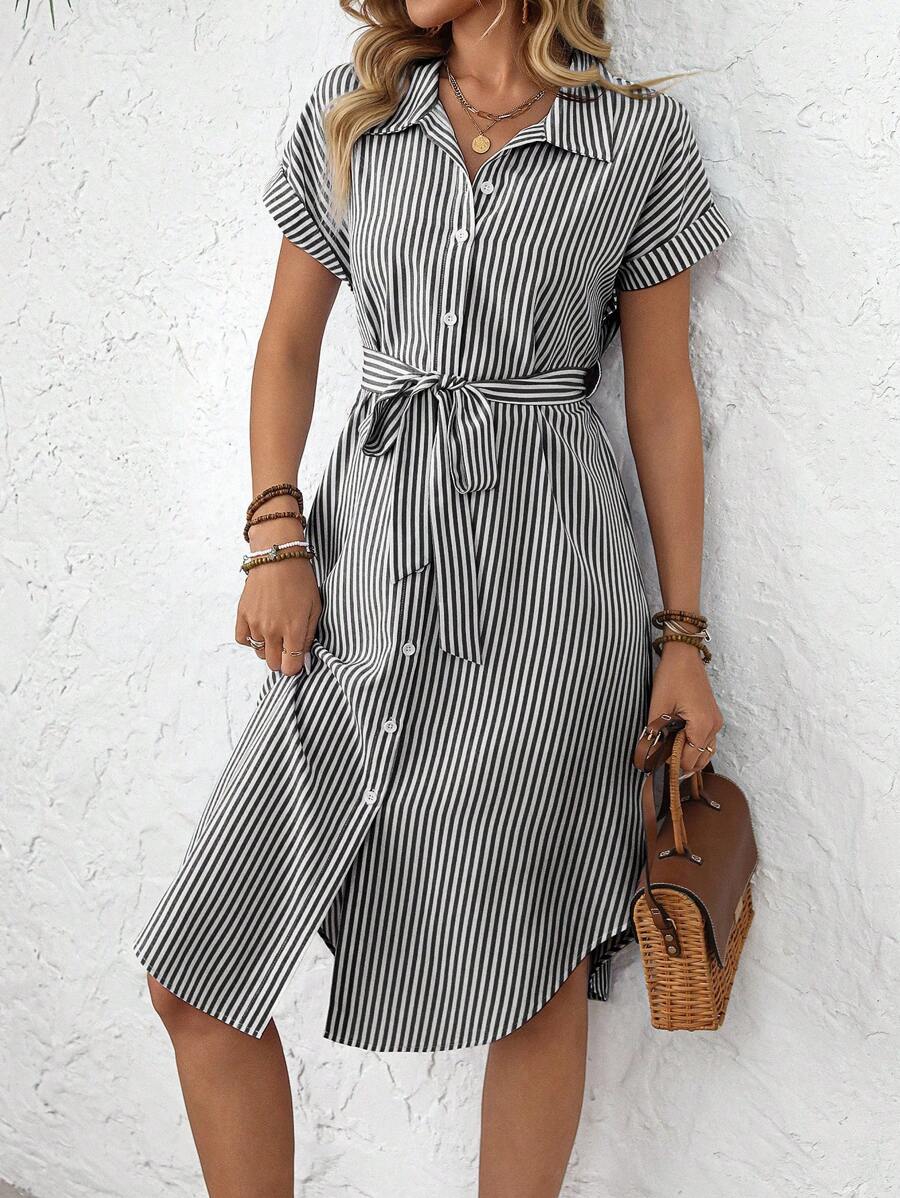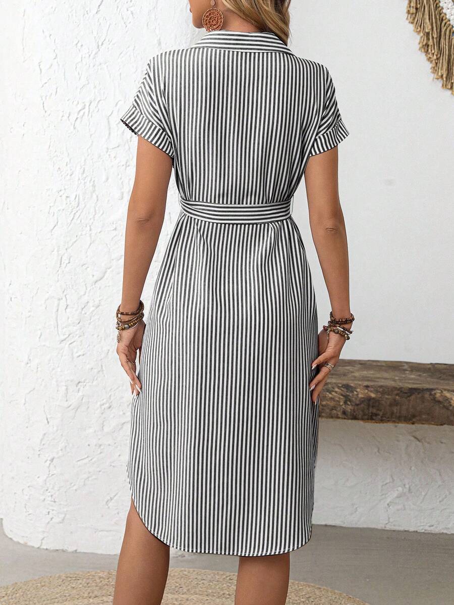 Faunlyn Women Striped Batwing Sleeve Casual Midi Shirt Dress