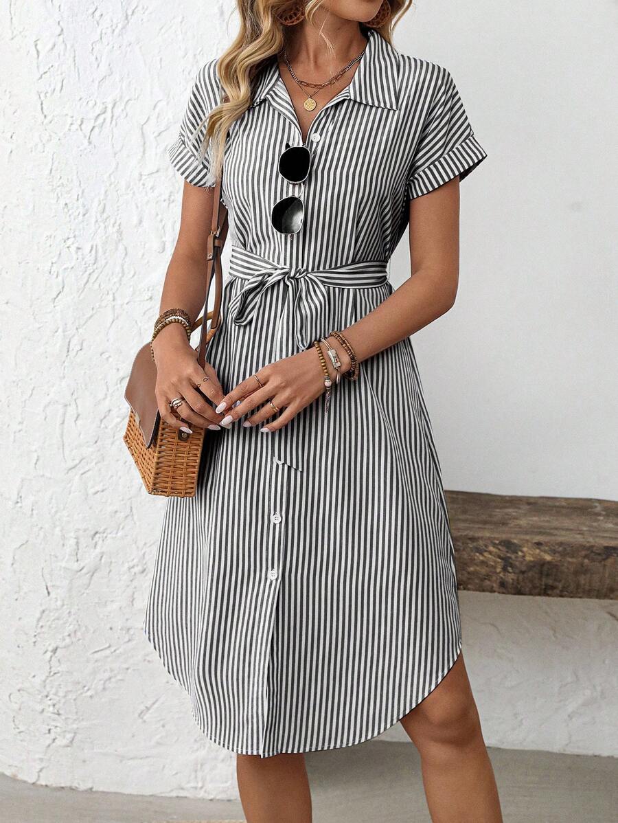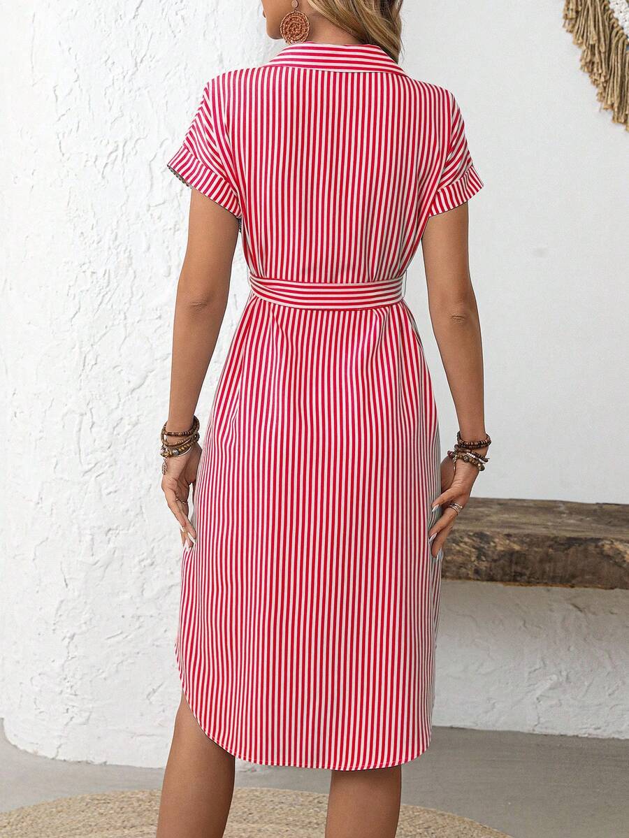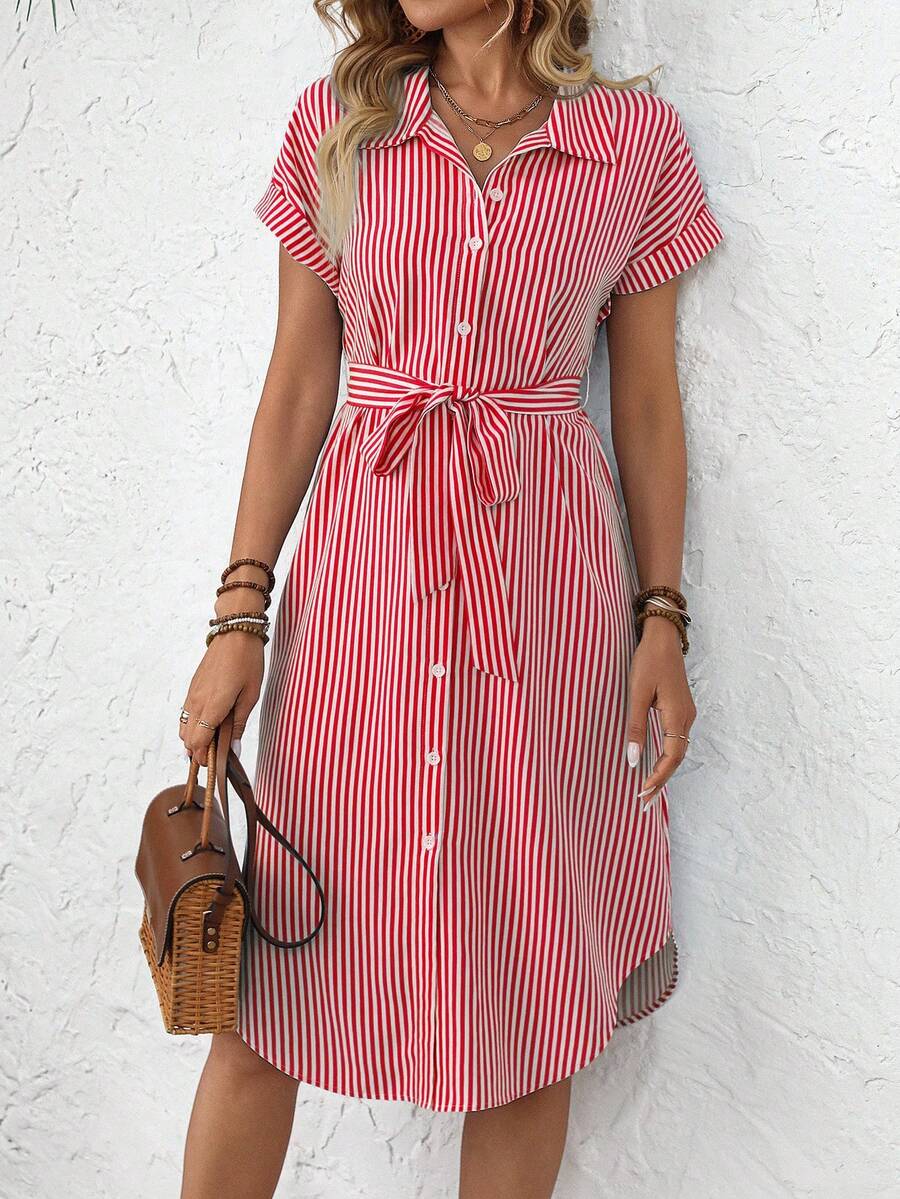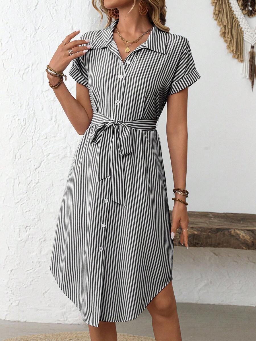 Faunlyn Women Striped Batwing Sleeve Casual Midi Shirt Dress