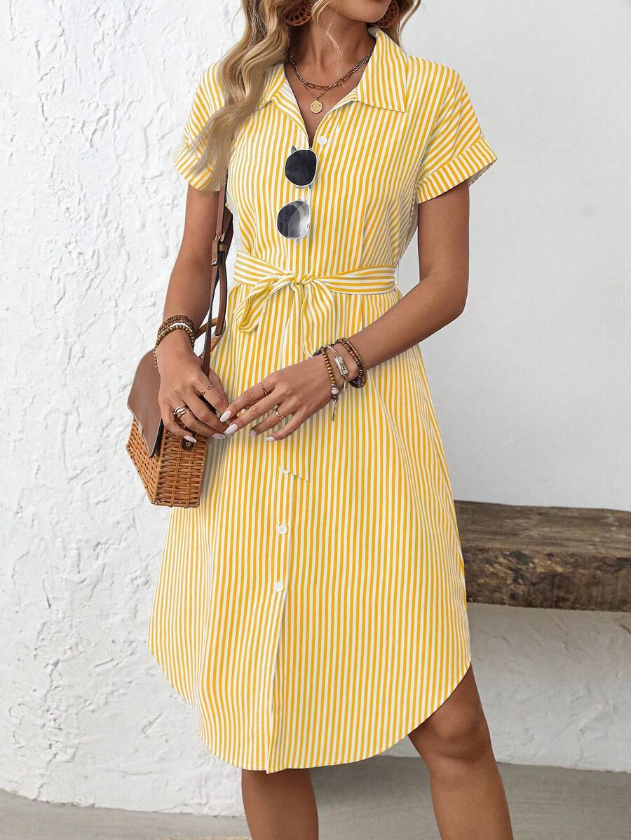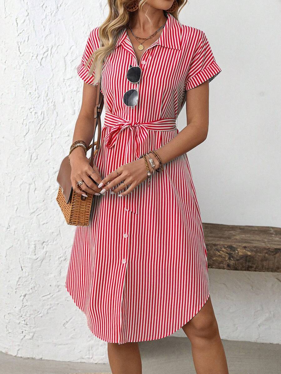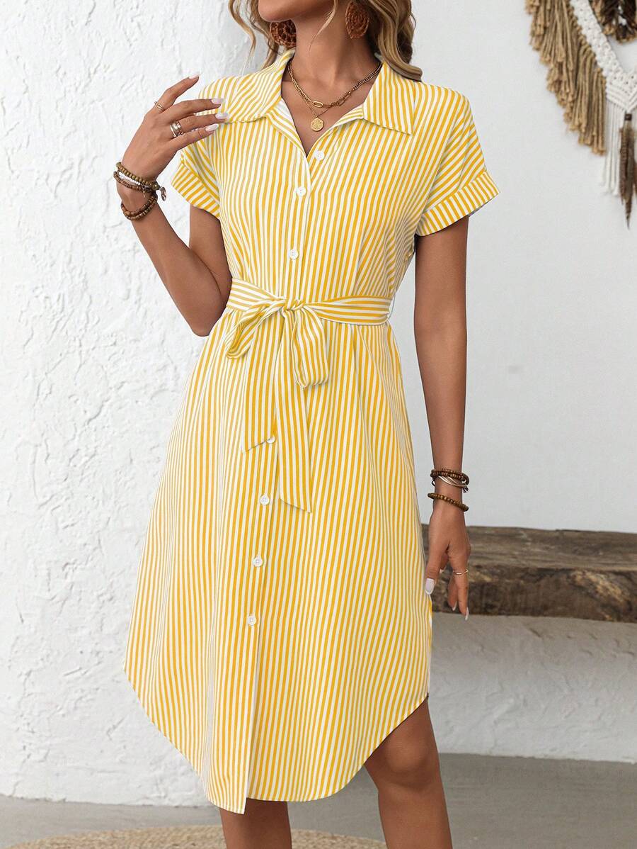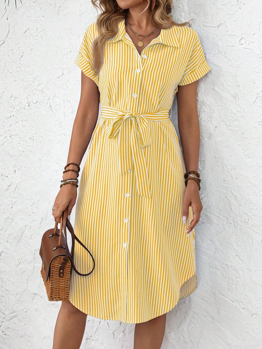 Faunlyn Women Striped Batwing Sleeve Casual Midi Shirt Dress