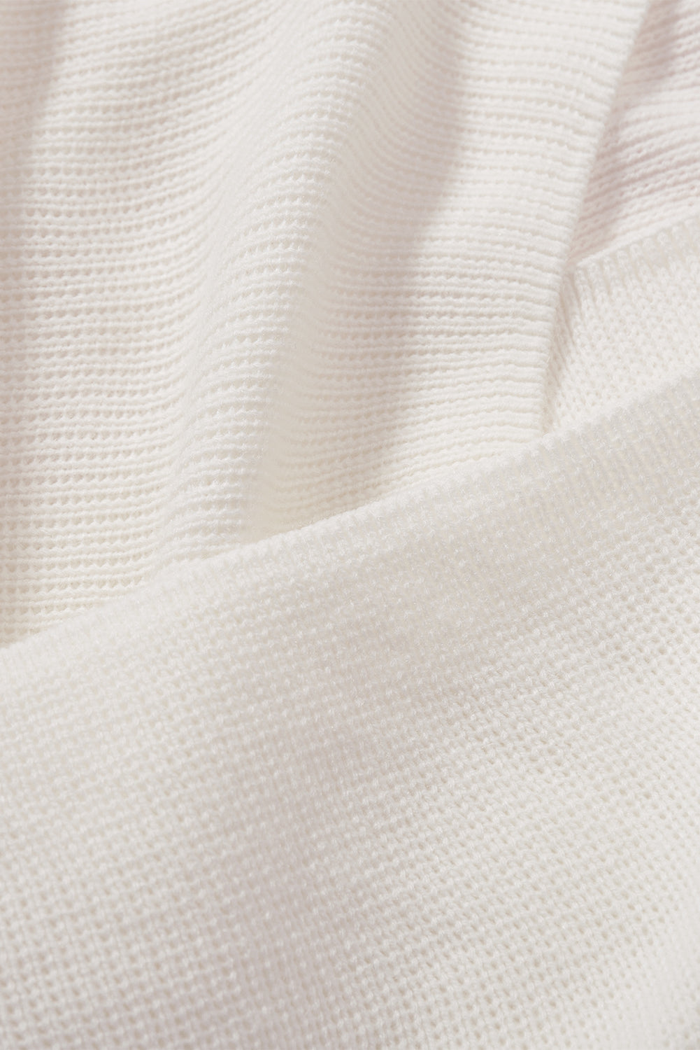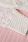 •This ribbed sweater has a surplice v neck, hollow-out back with strap, lantern sleeves in lace