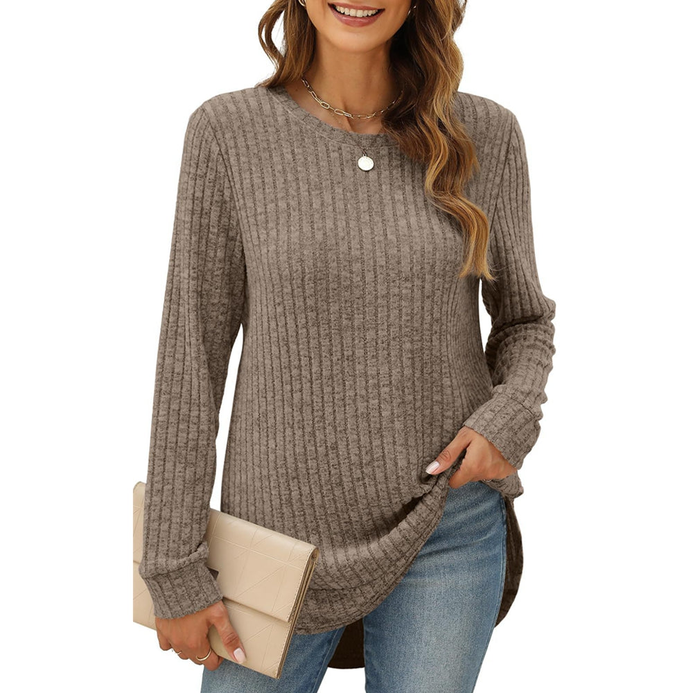 Women Long Sleeve Lightweight Ribbed Tunic Sweater S-2X
