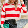 Stylish crew neck cropped striped sweater, features wide contrasting stripes.  Easily paired with high waisted jeans or skirt.  Available in 3 colors and 2 sizes.