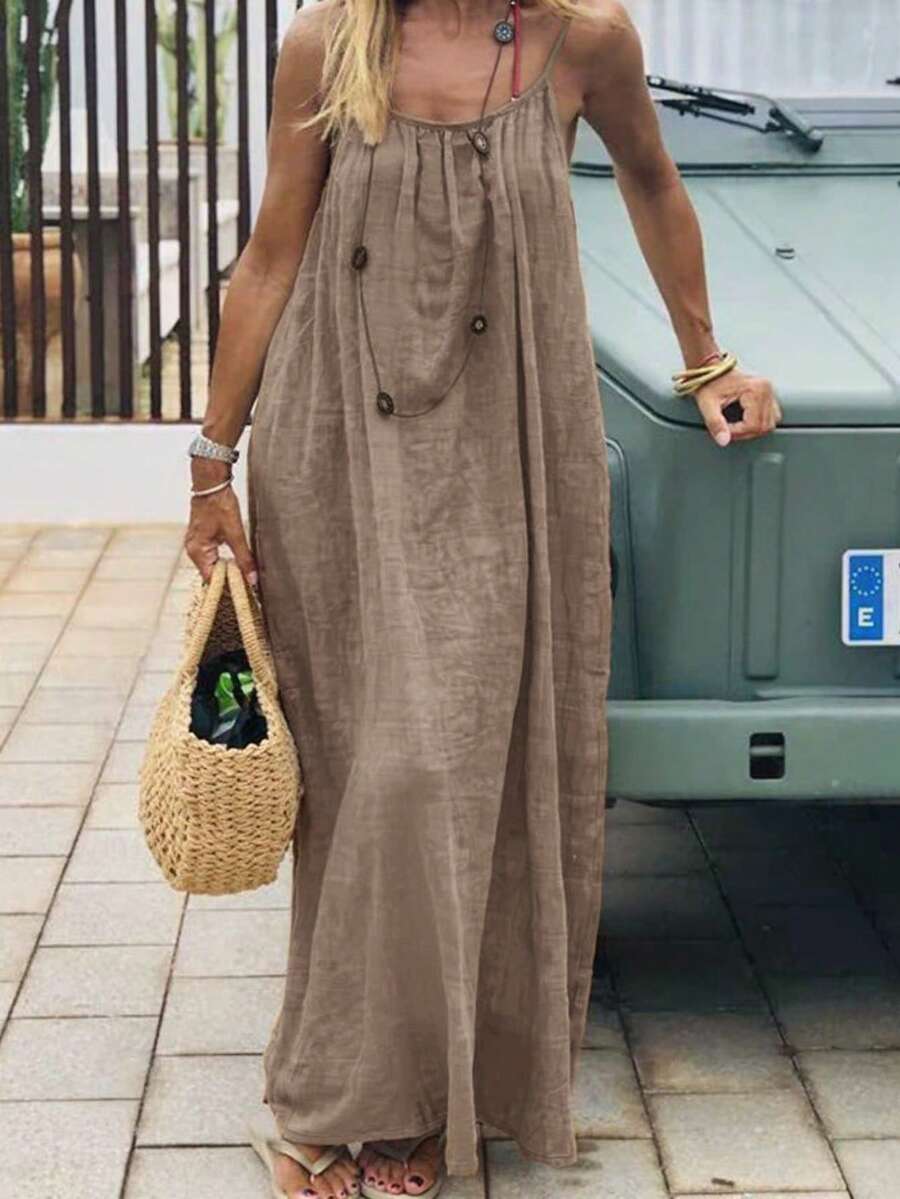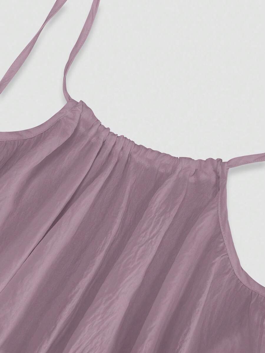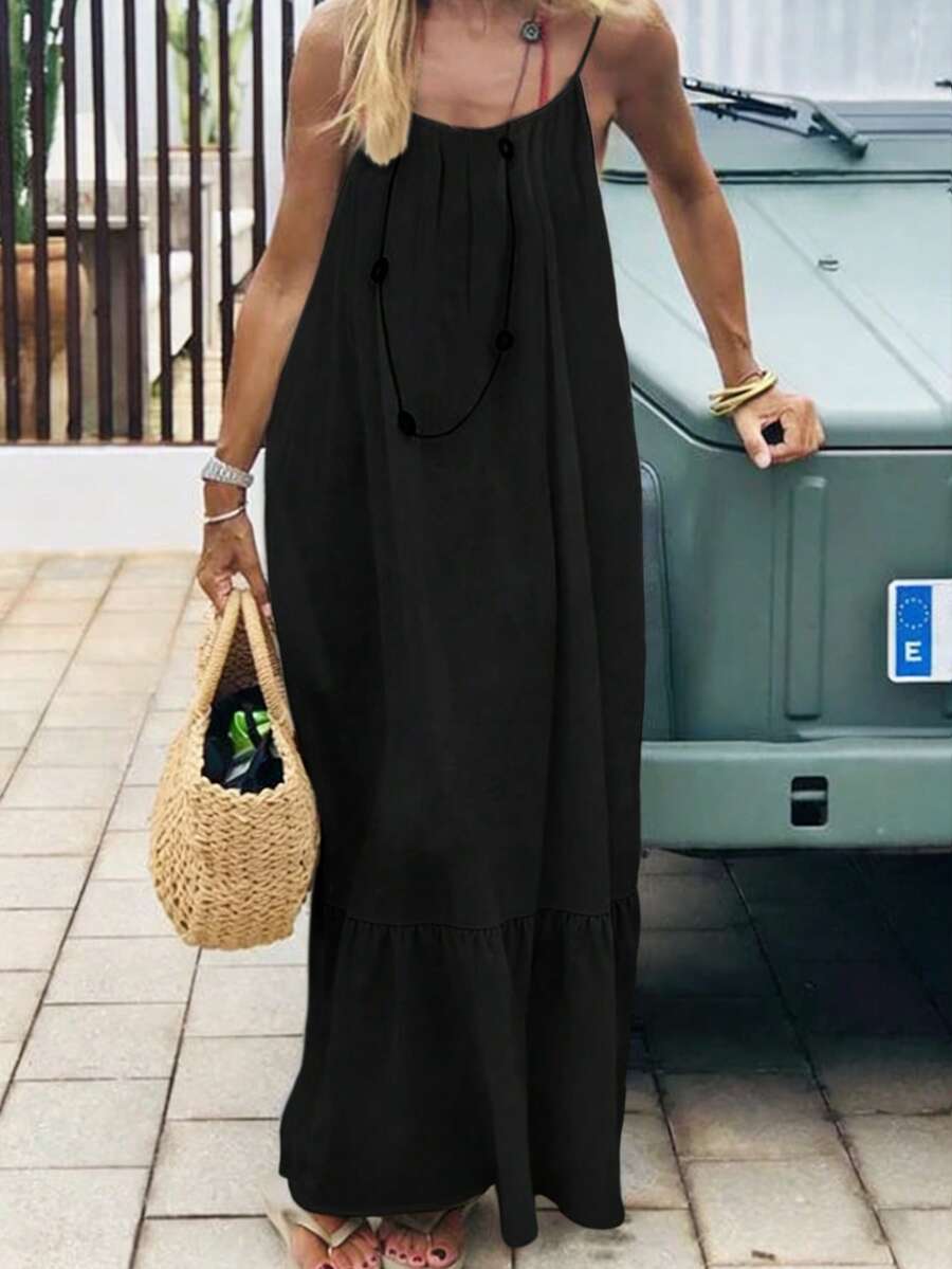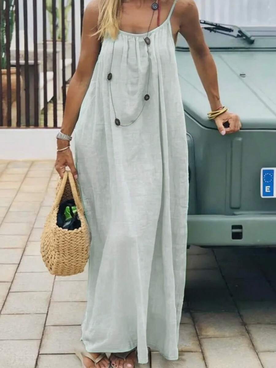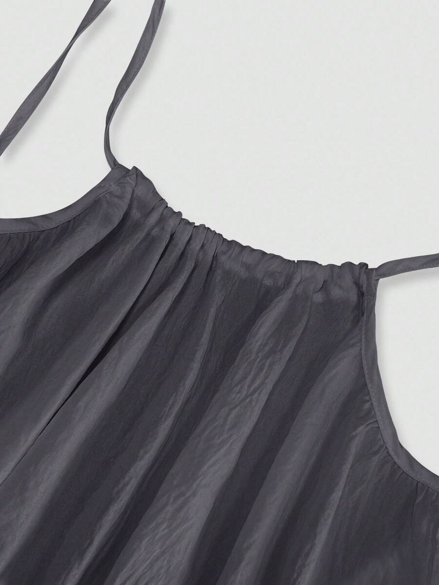 Cévolie Women's Solid Color Backless Tie Strap Casual Long Dress