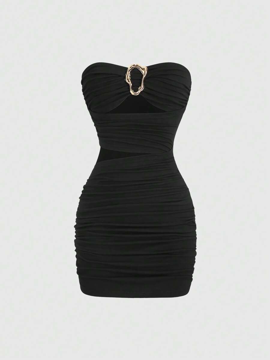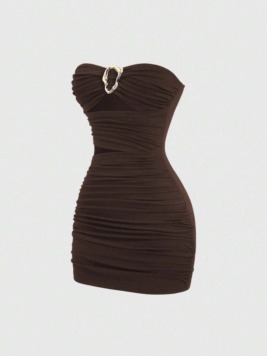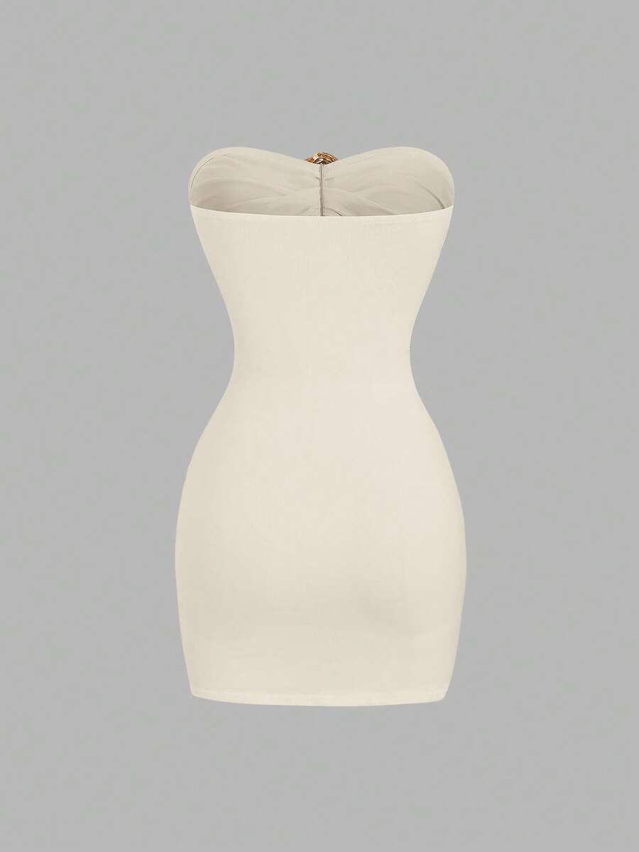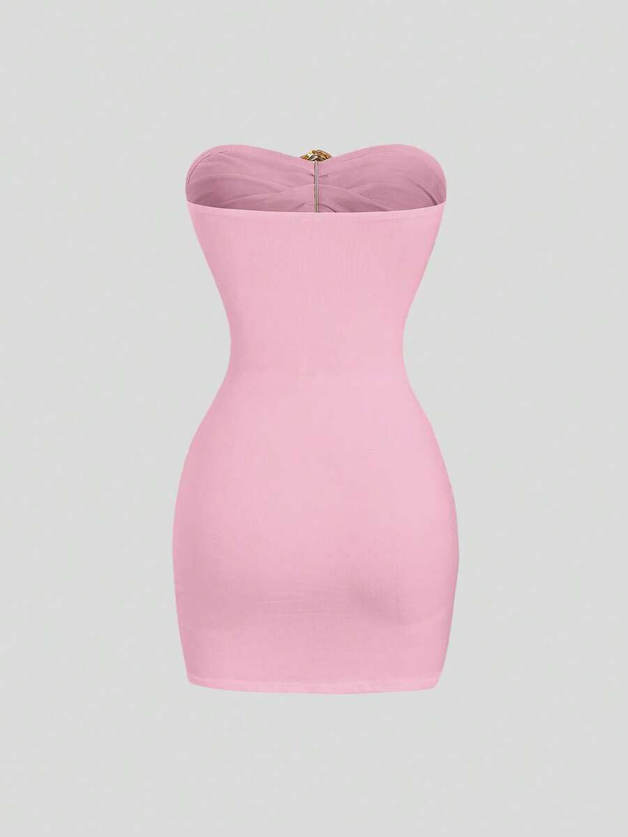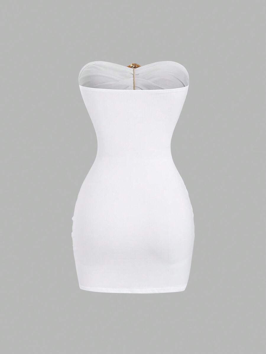 Sweetra Women's Sexy Fitted Strapless Metal Buckle Mini Dress