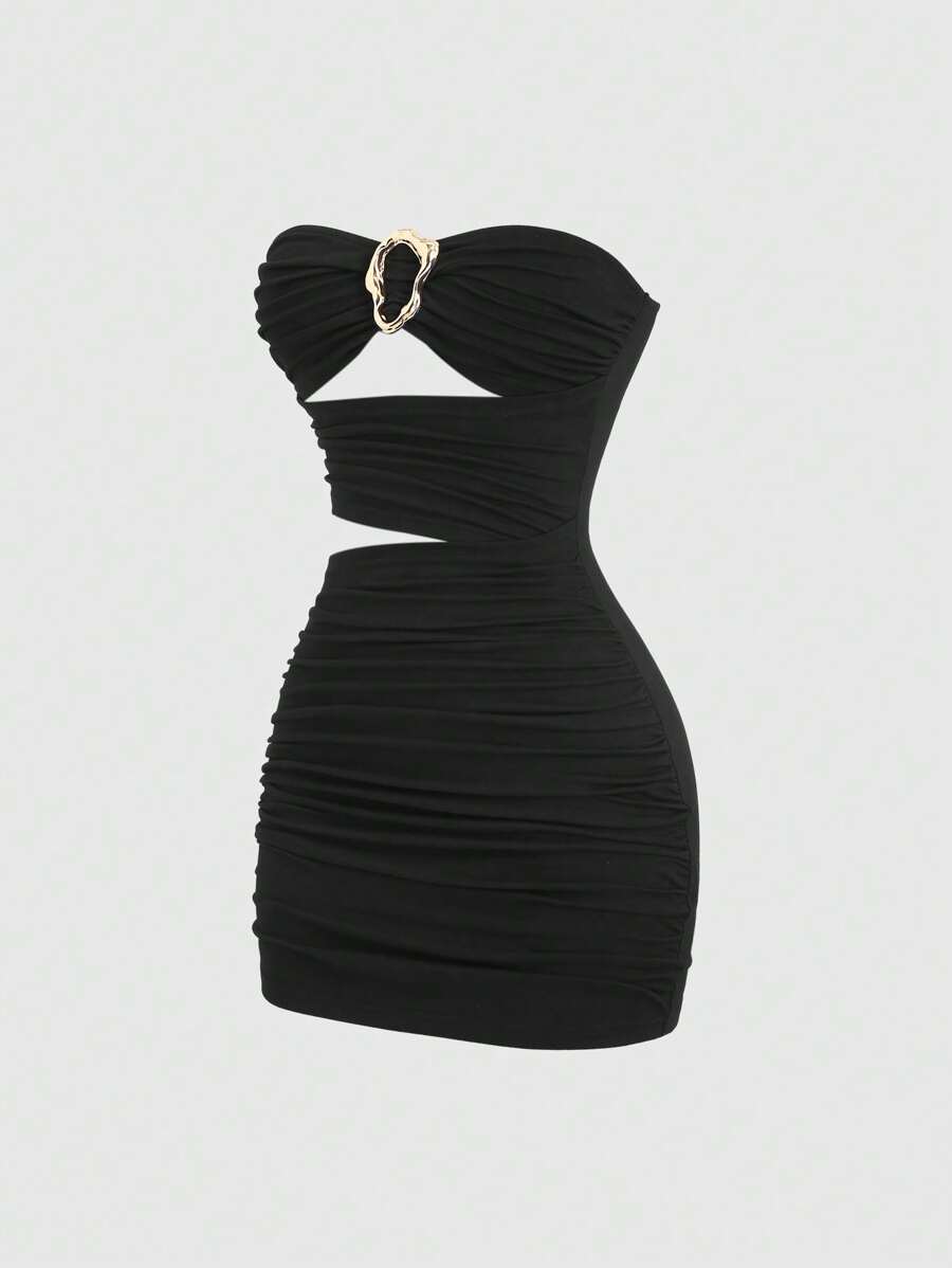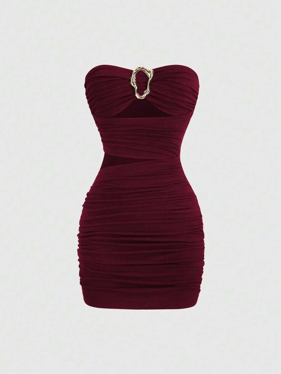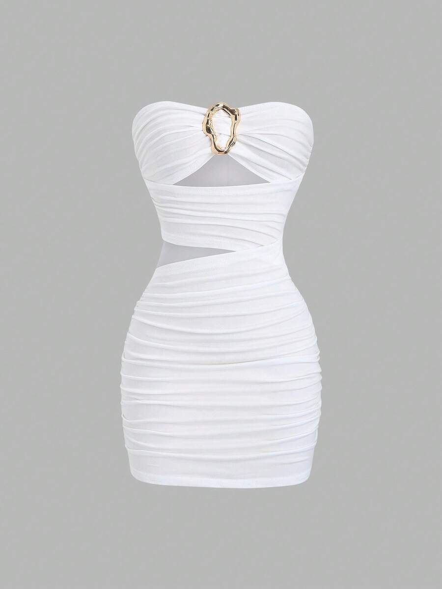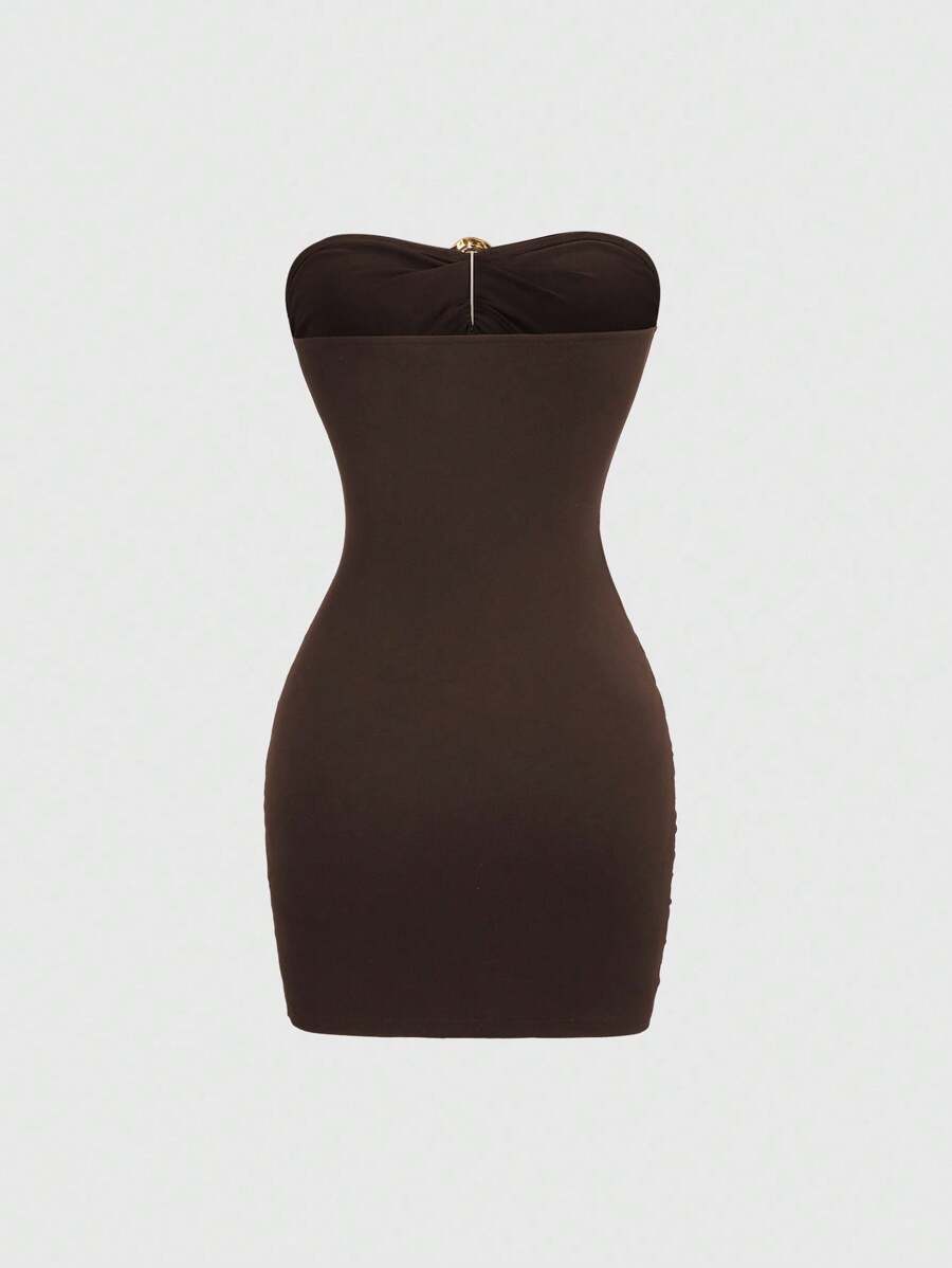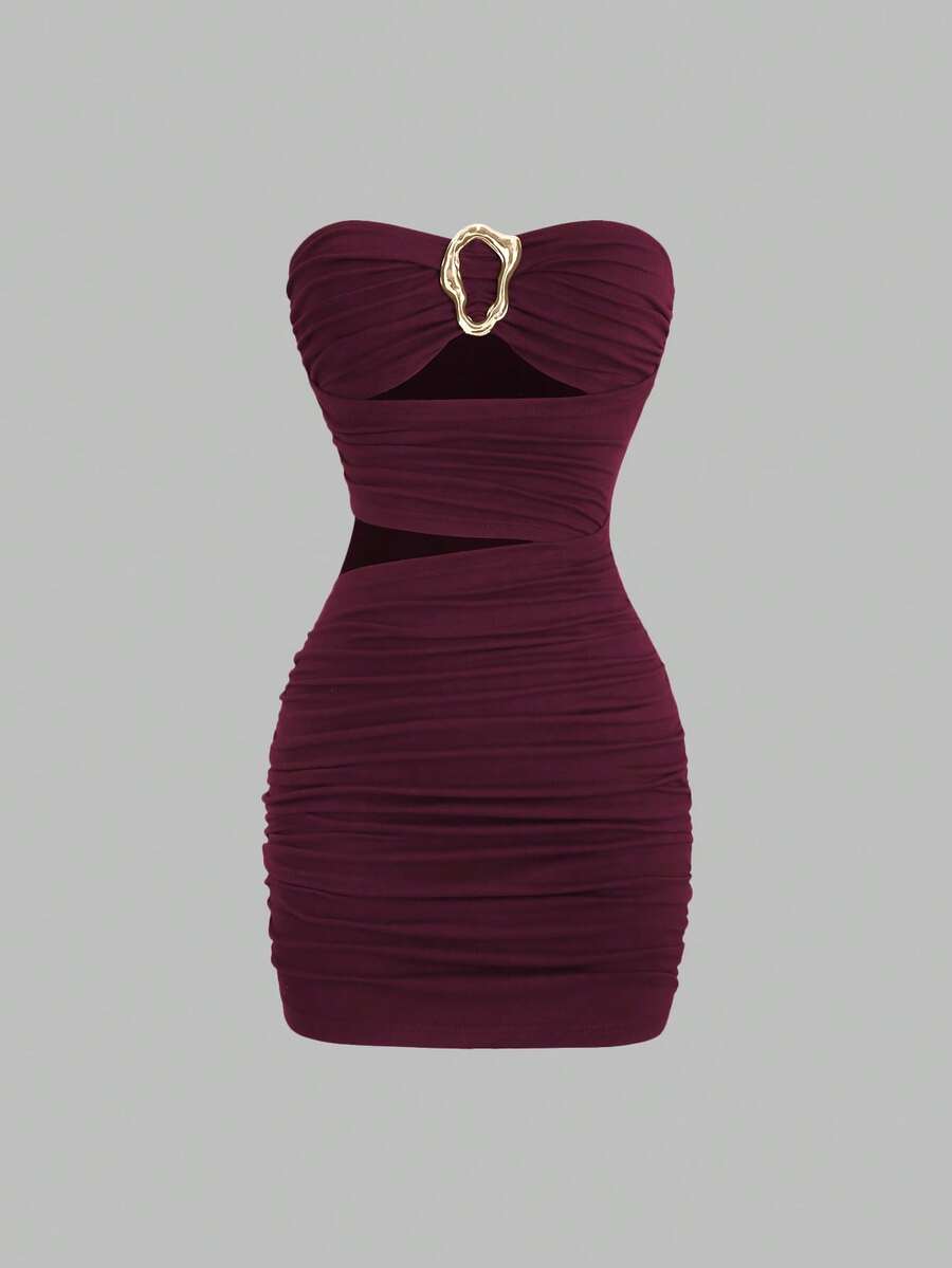 Sweetra Women's Sexy Fitted Strapless Metal Buckle Mini Dress
