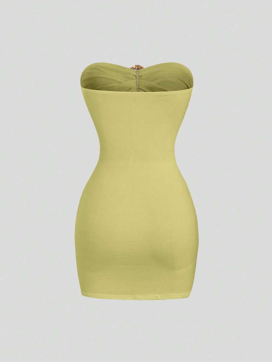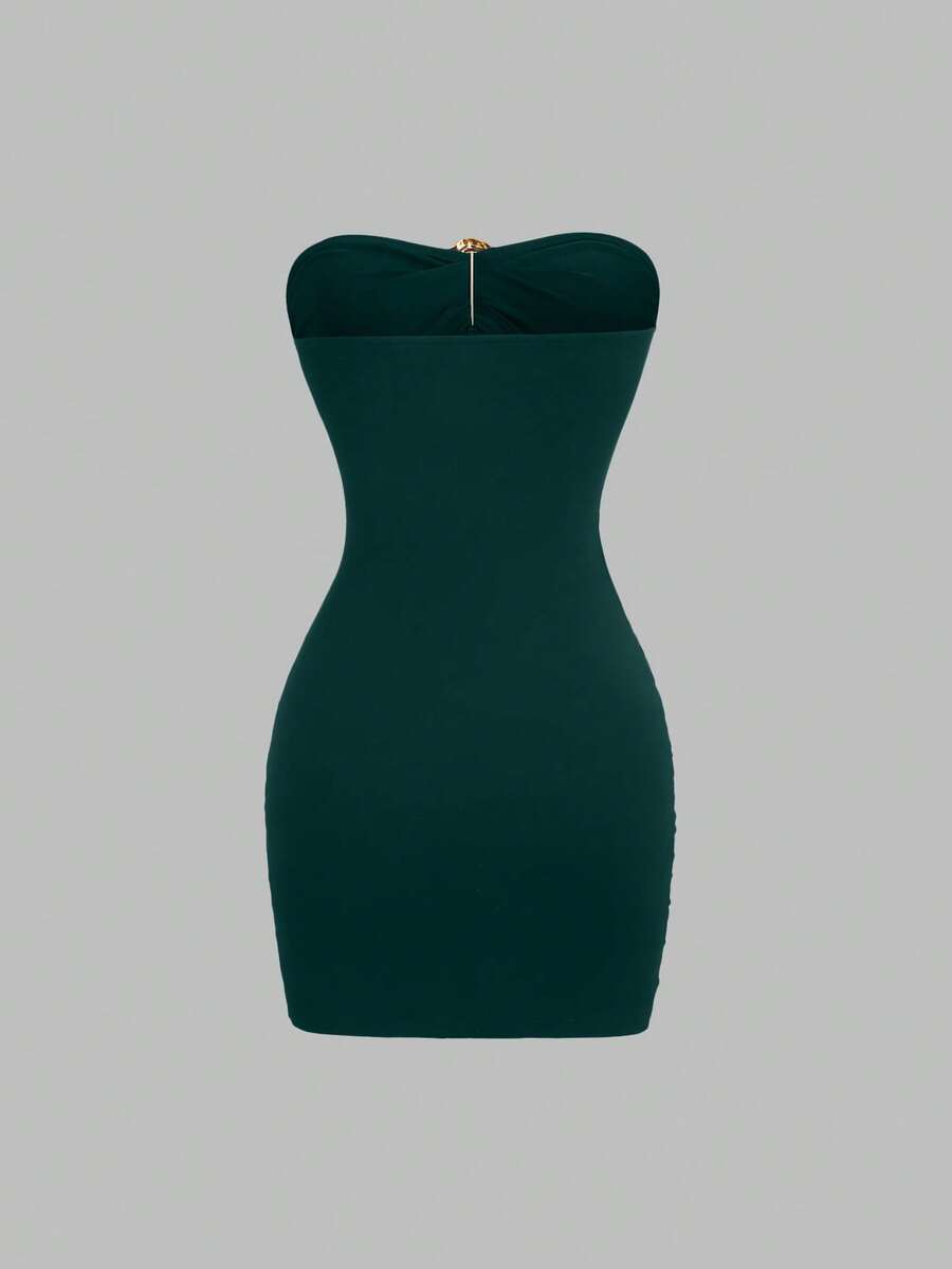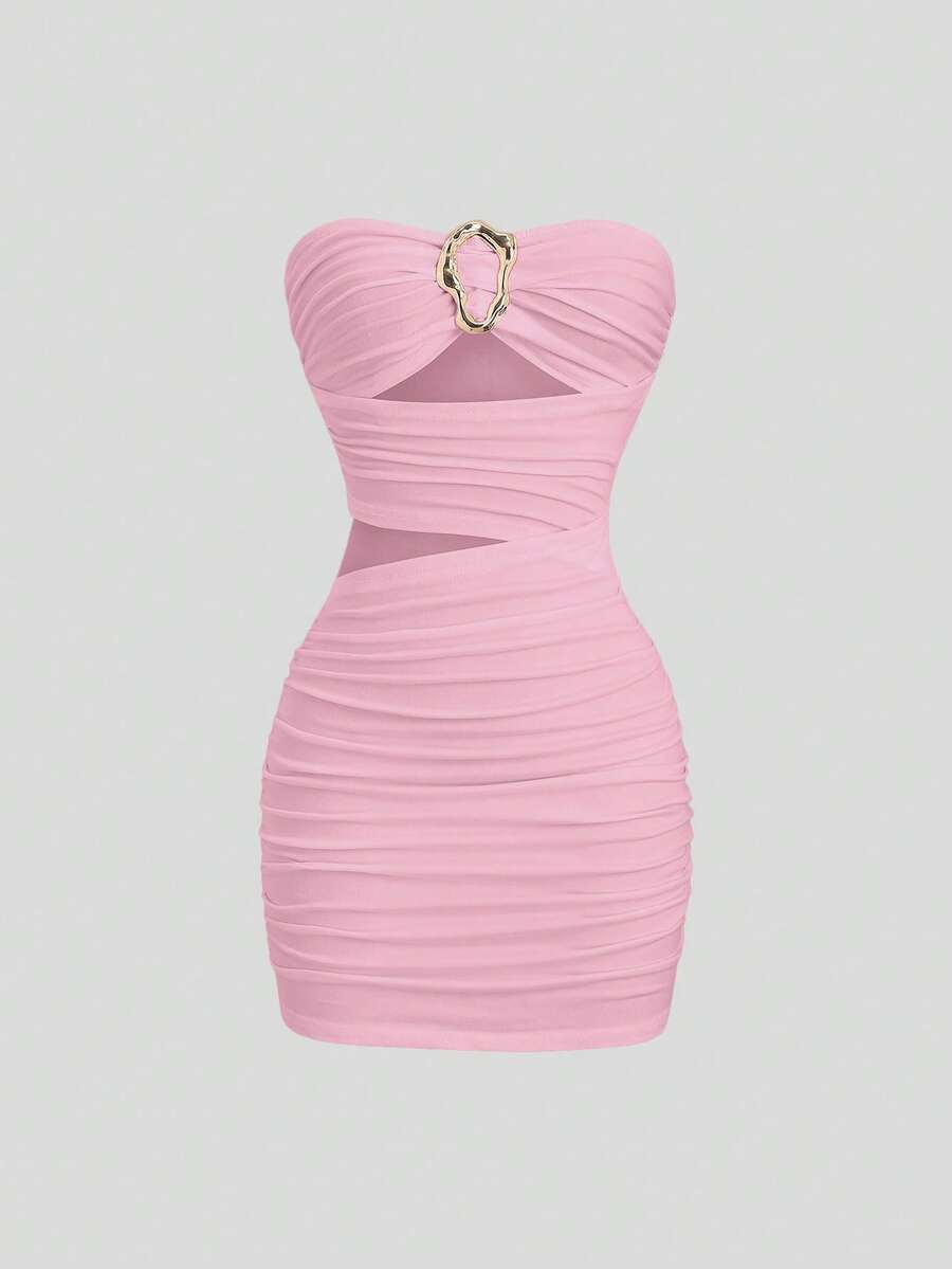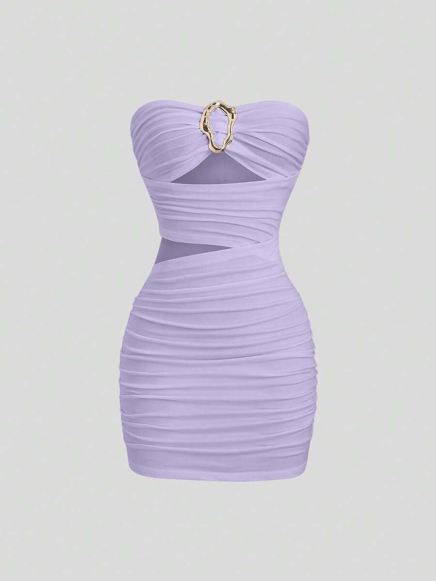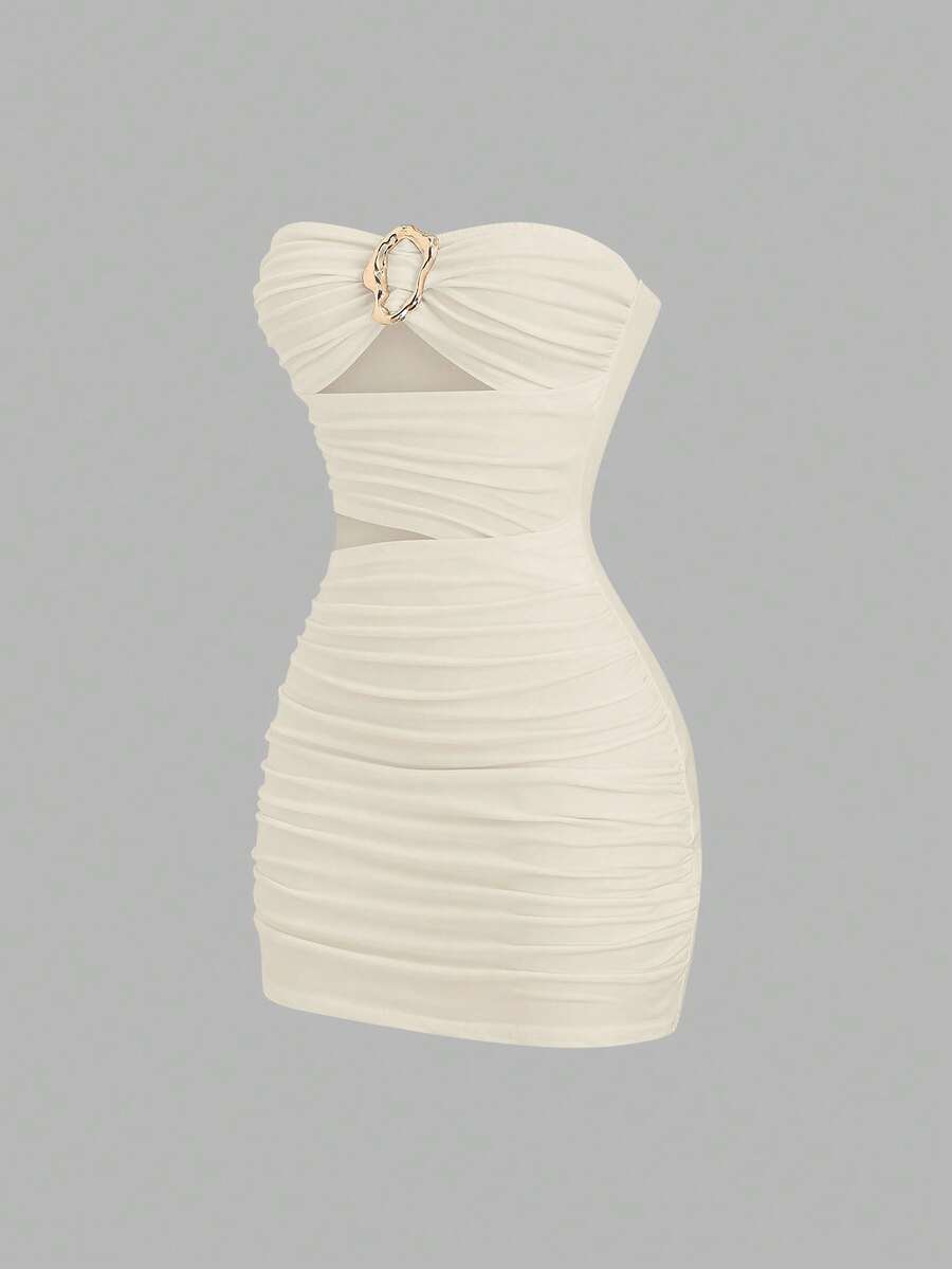 Sweetra Women's Sexy Fitted Strapless Metal Buckle Mini Dress