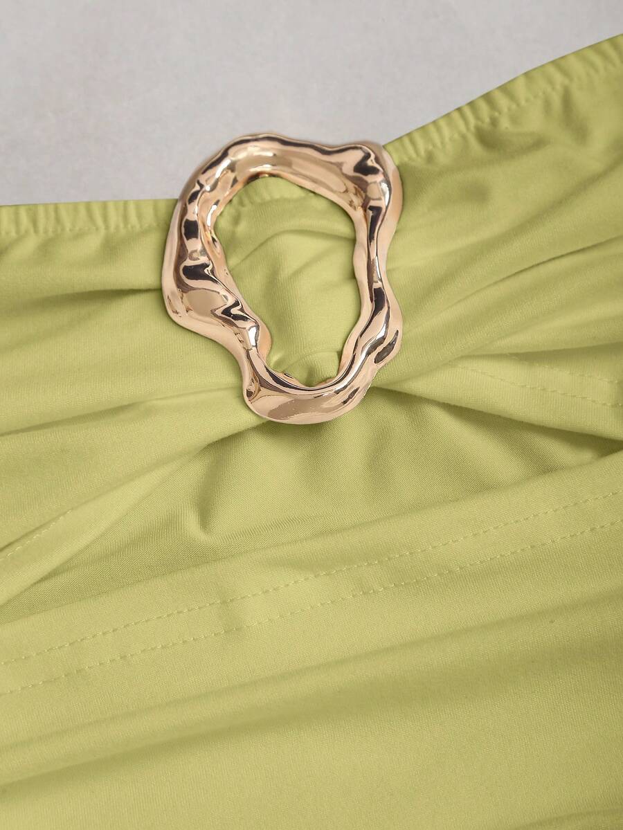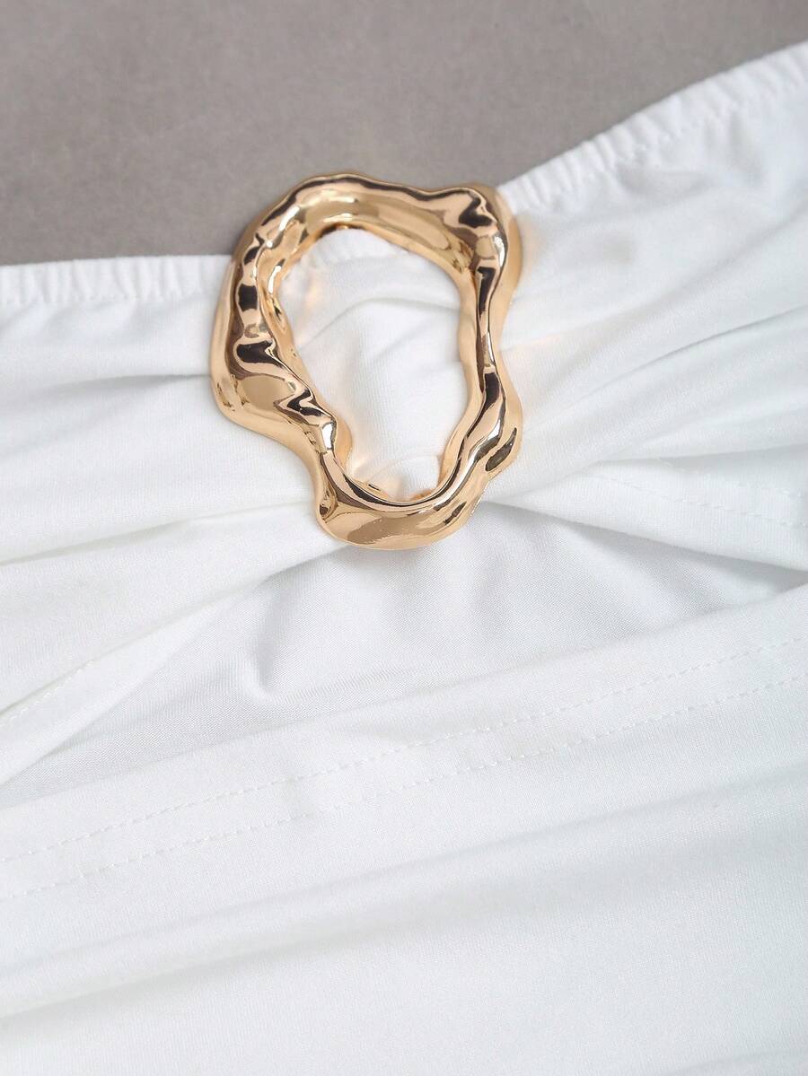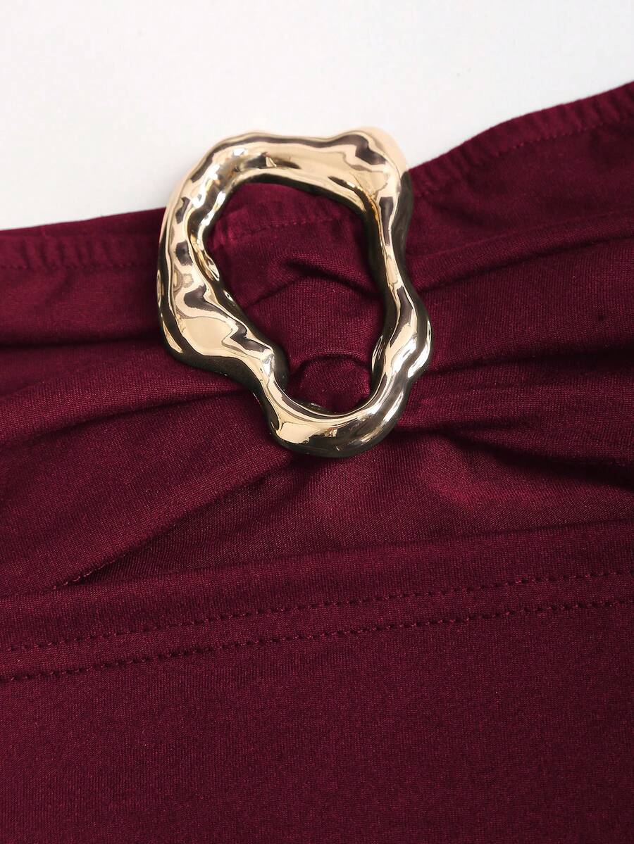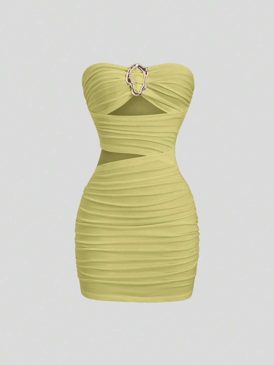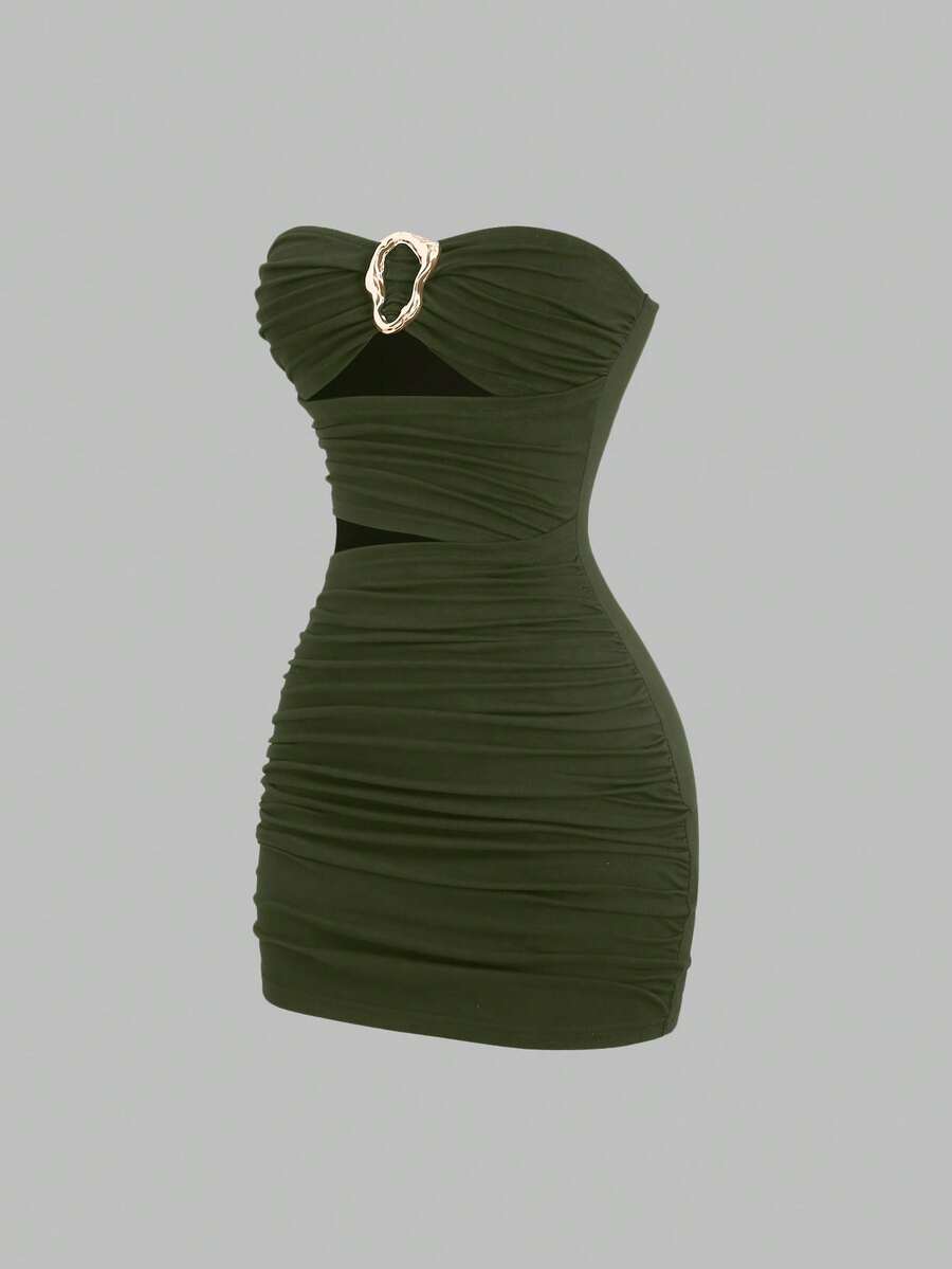 Sweetra Women's Sexy Fitted Strapless Metal Buckle Mini Dress