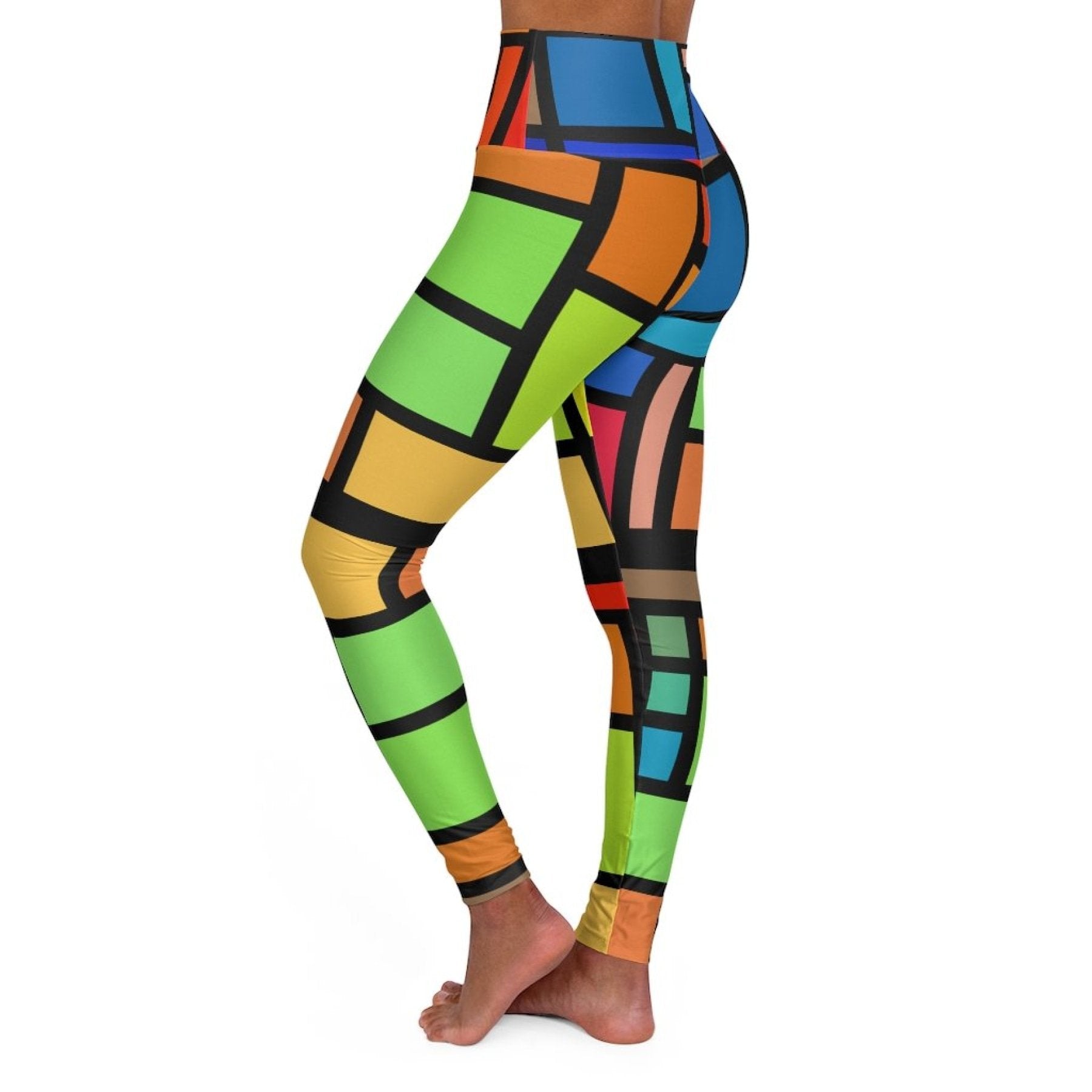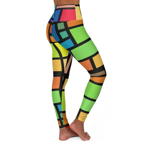 Womens High-waist Fitness Legging Yoga Pants - Multicolor Grid Block