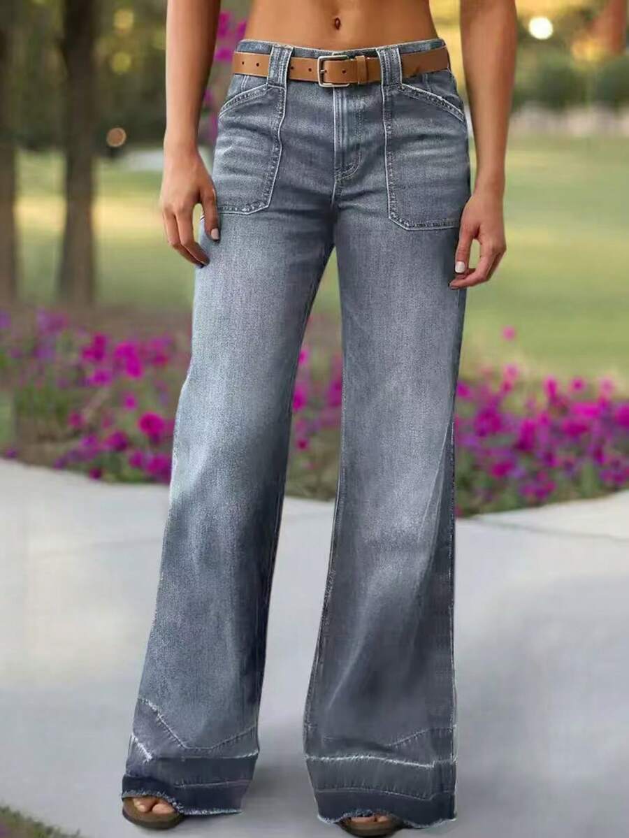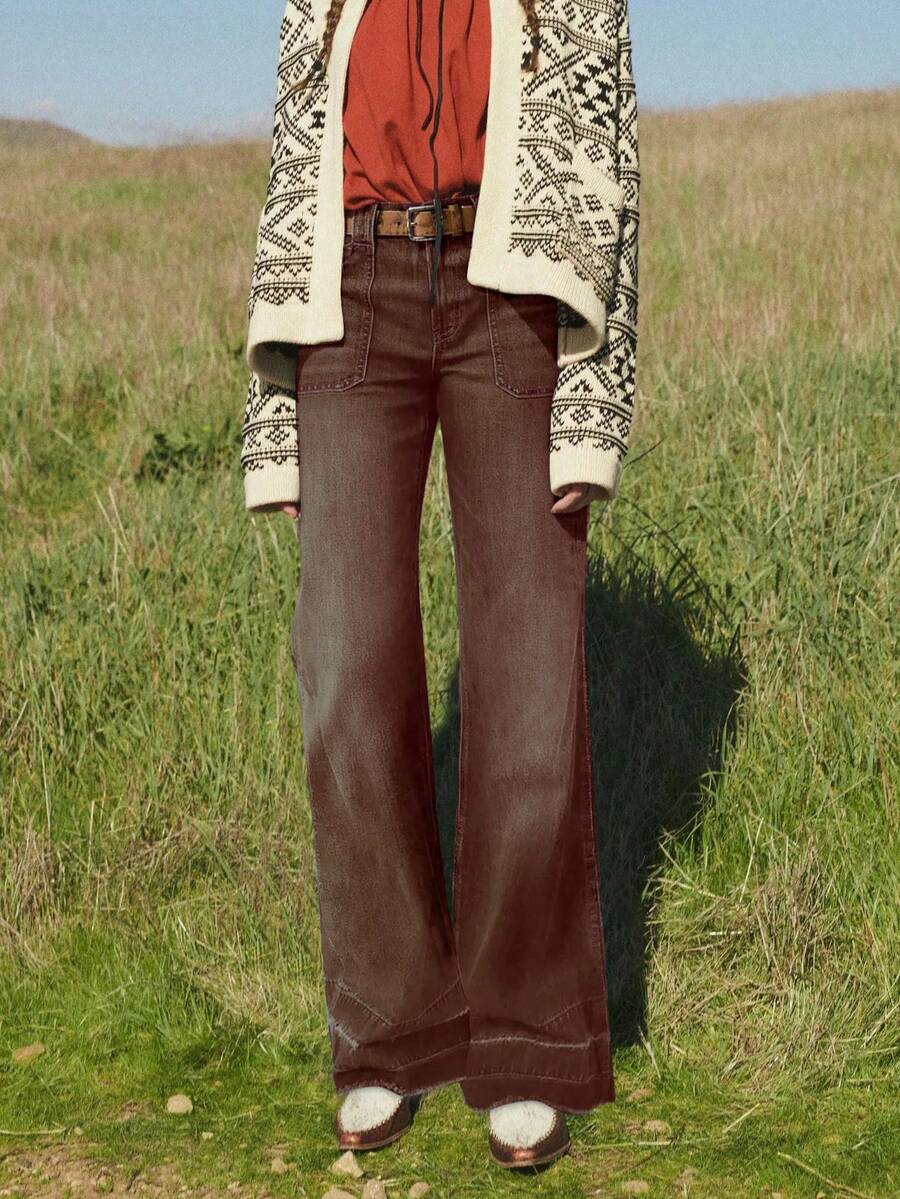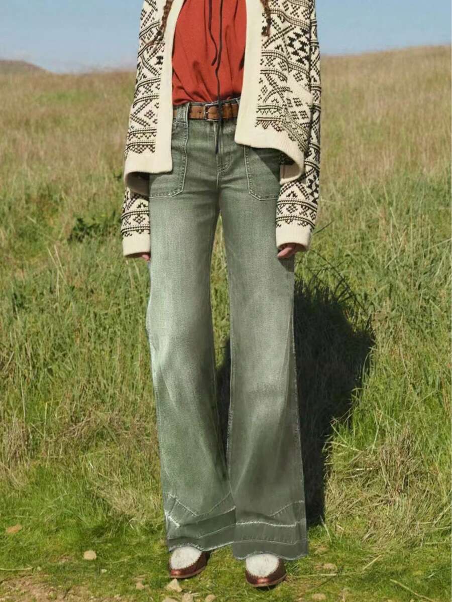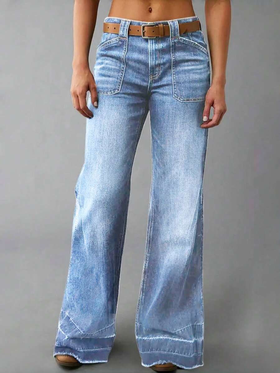 Women's Wide Leg Flared Jeans With Diamond Shaped Front Pockets