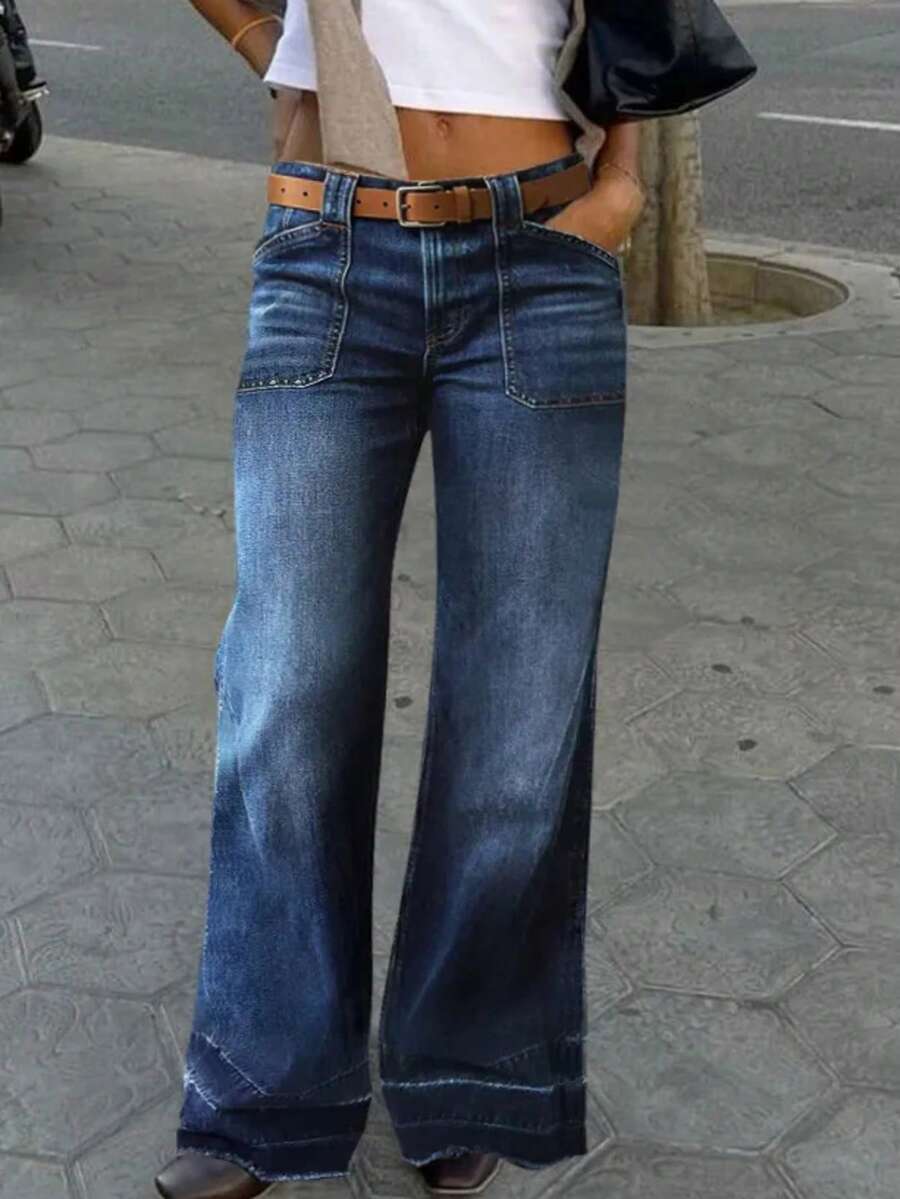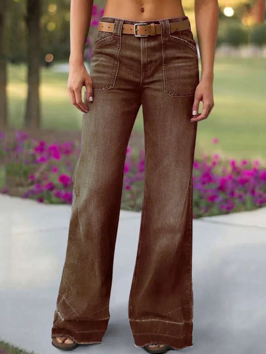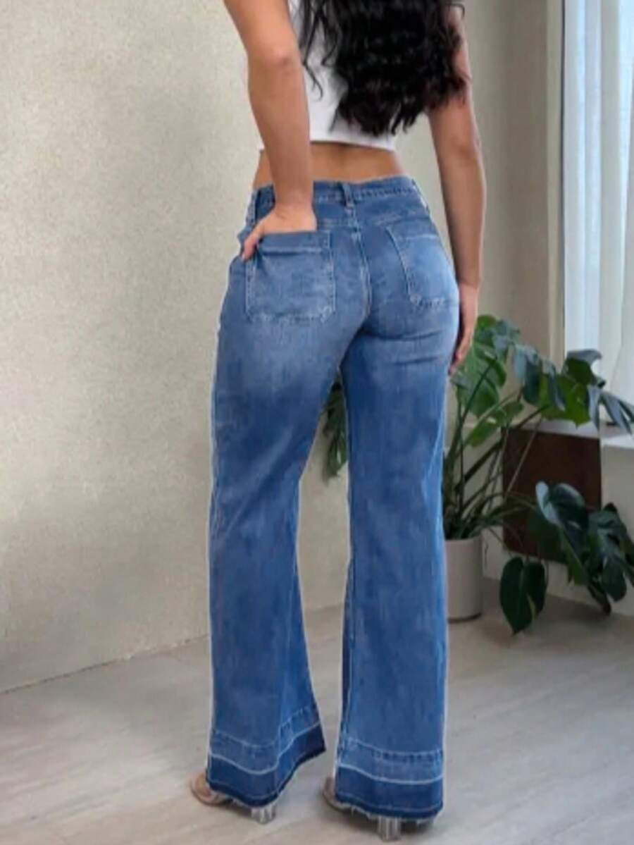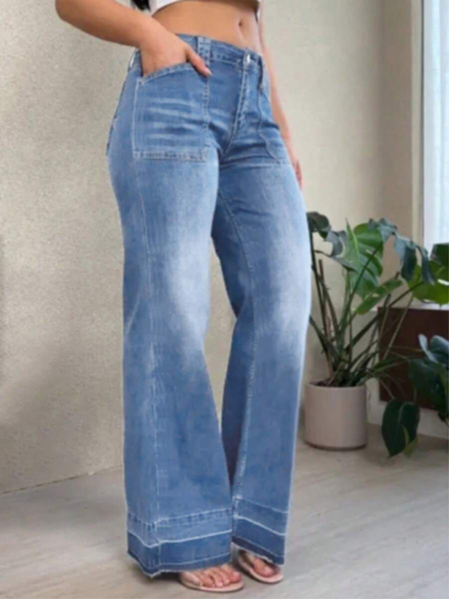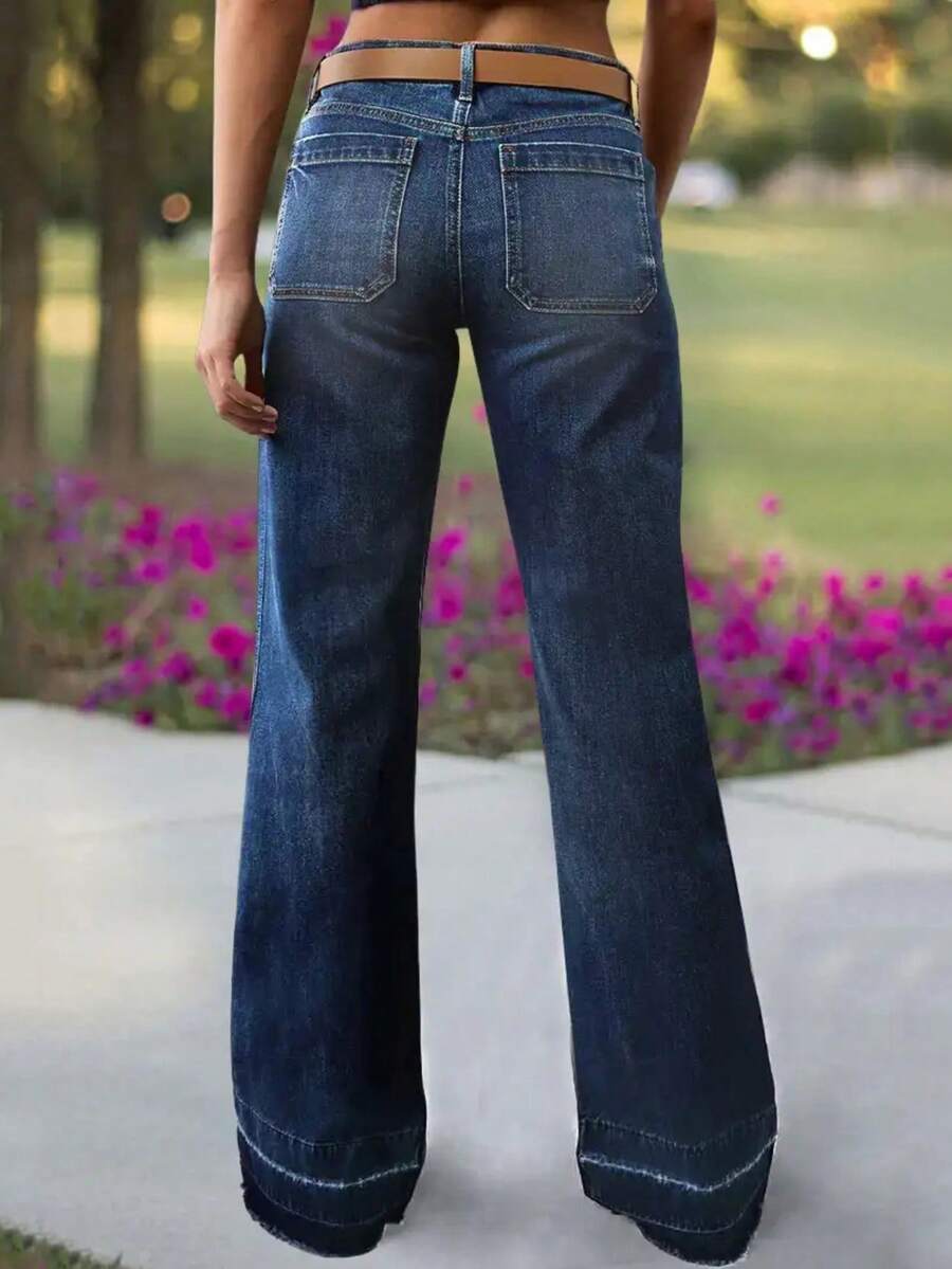 Women's Wide Leg Flared Jeans With Diamond Shaped Front Pockets