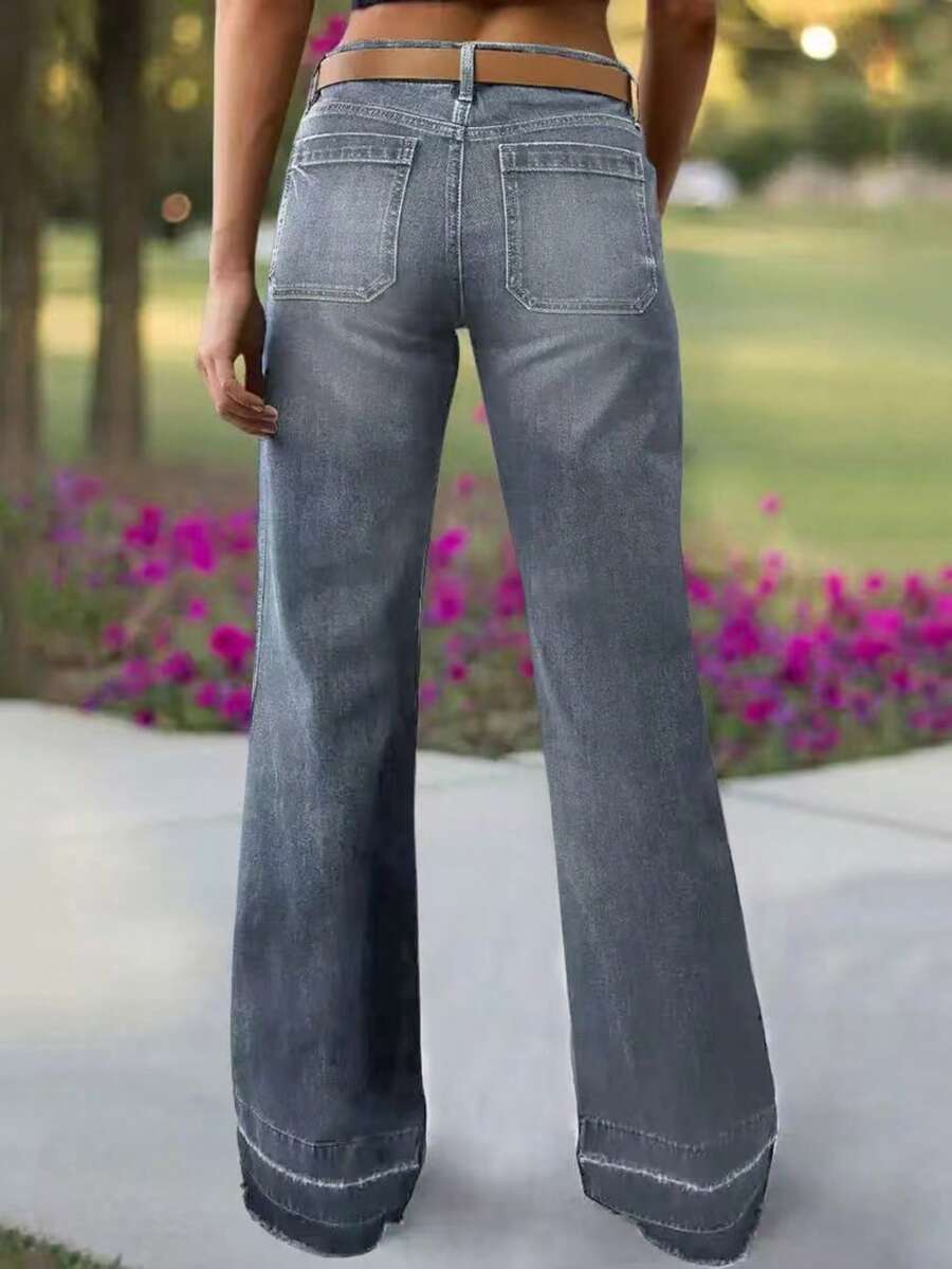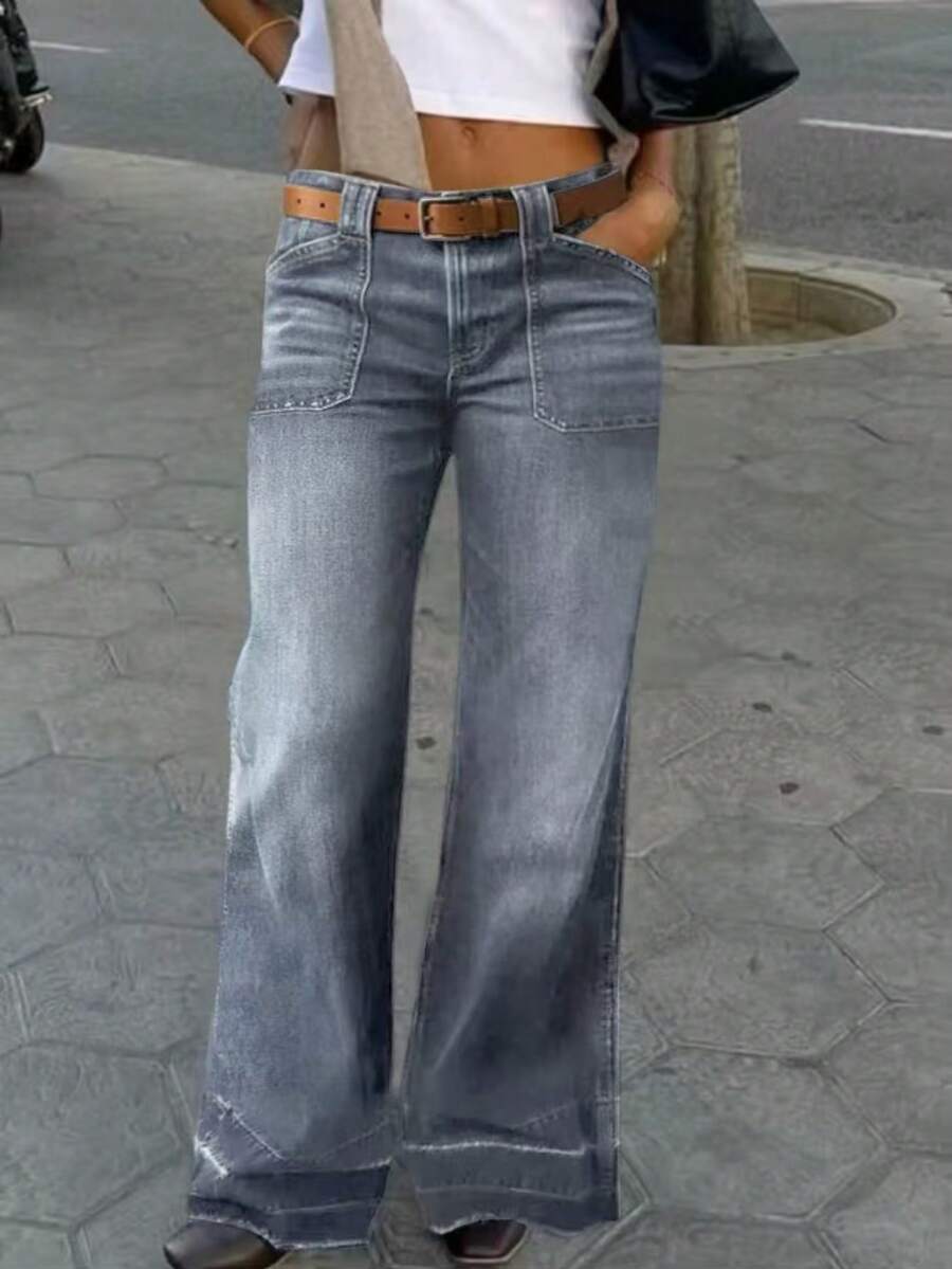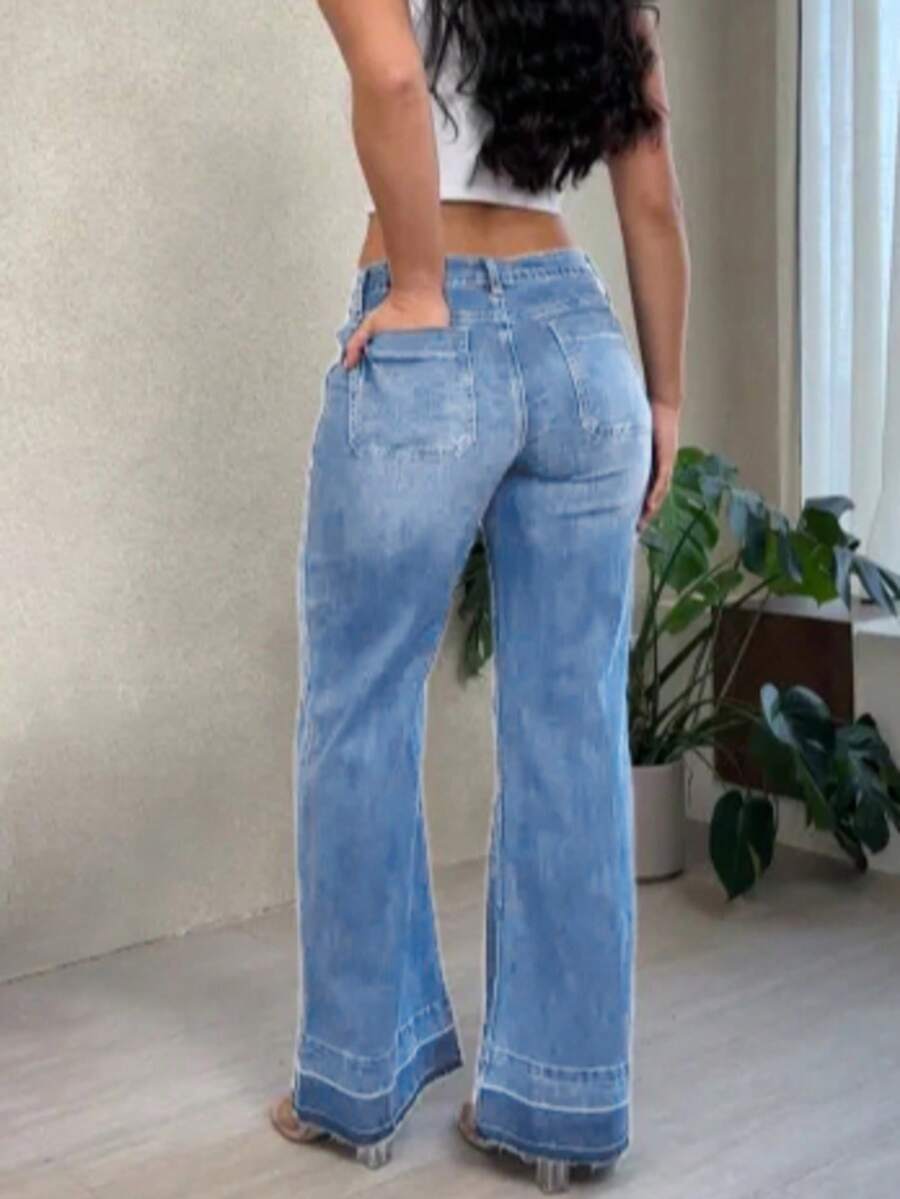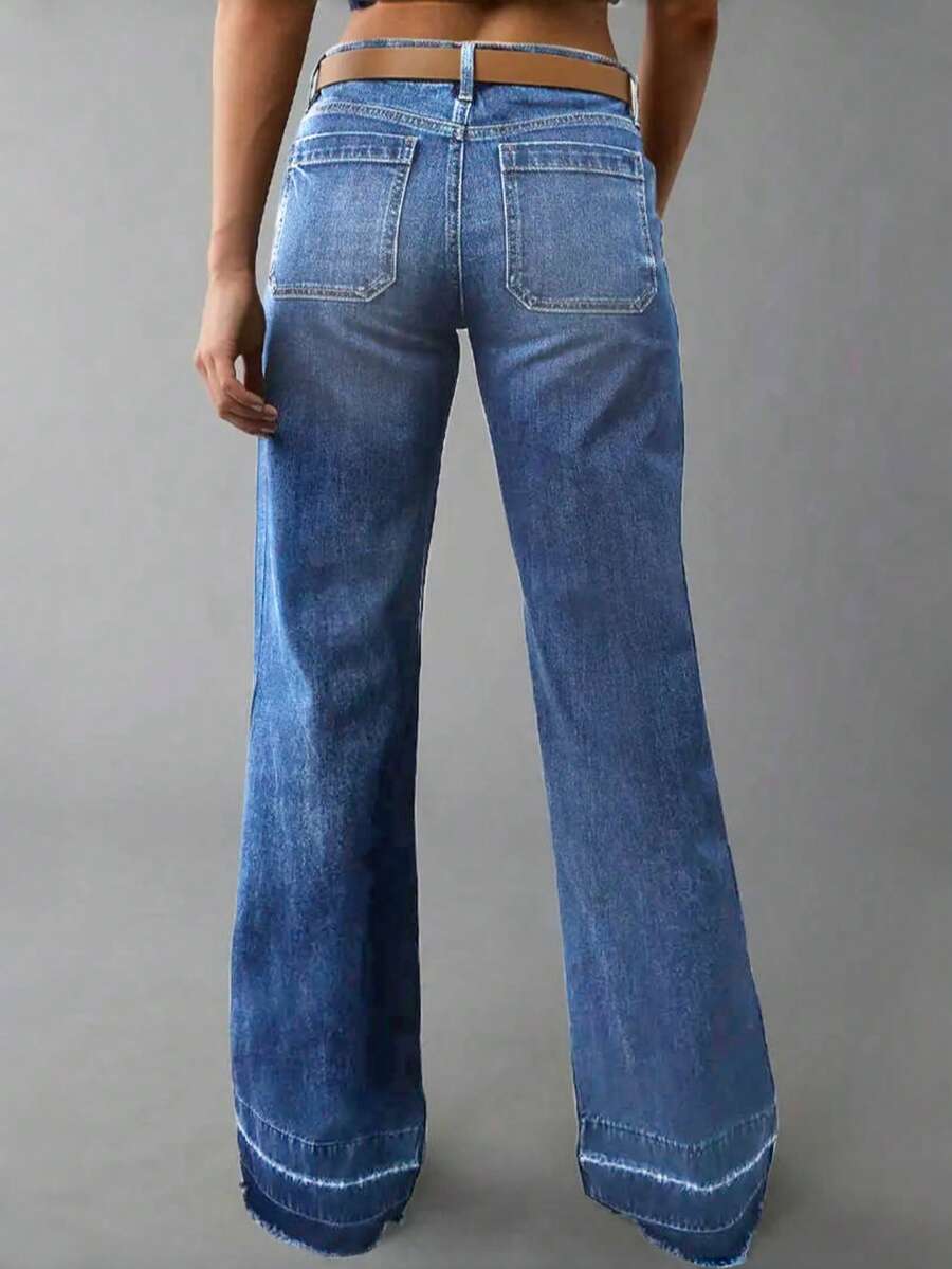 Women's Wide Leg Flared Jeans With Diamond Shaped Front Pockets