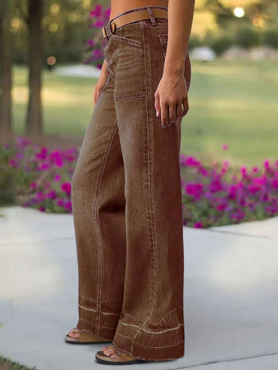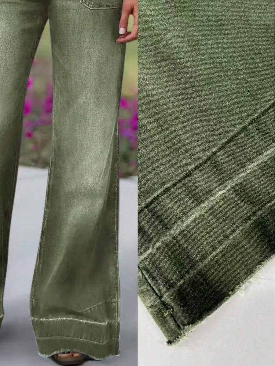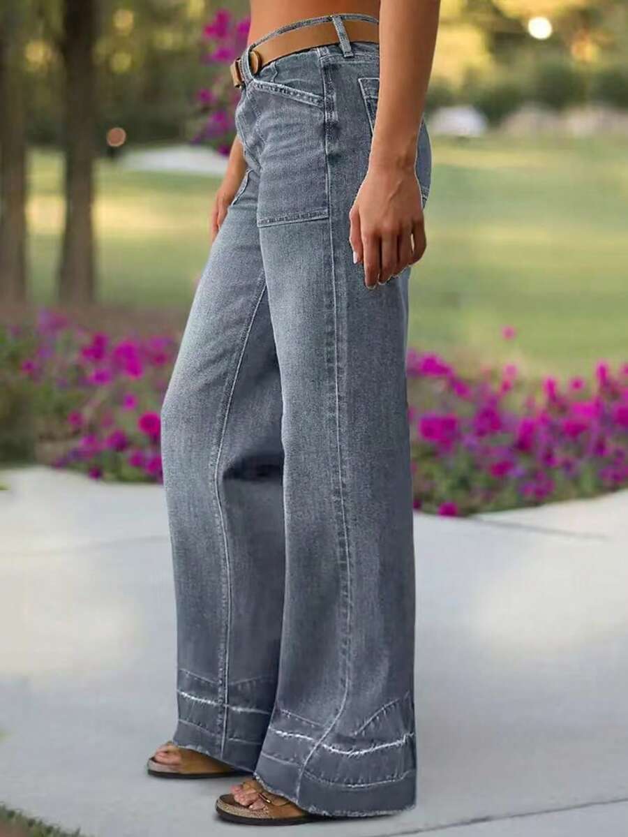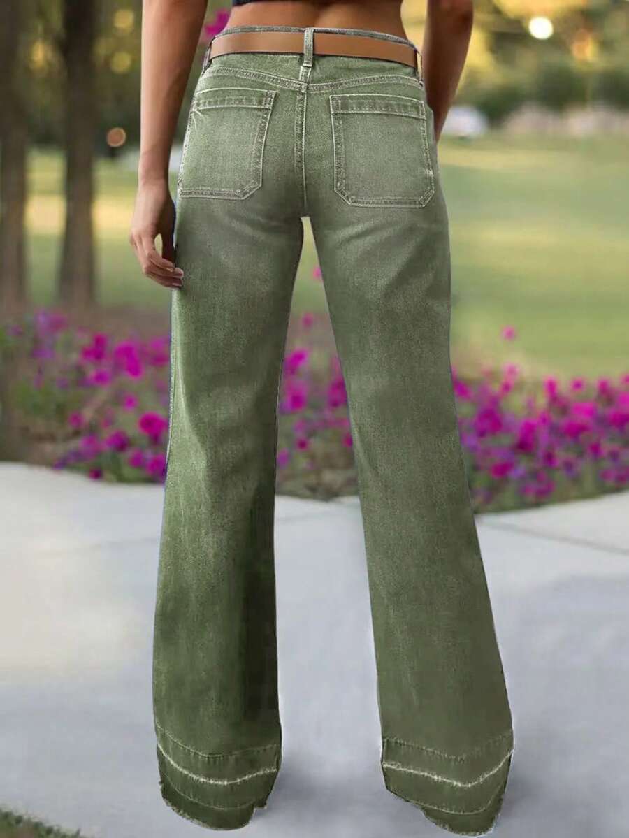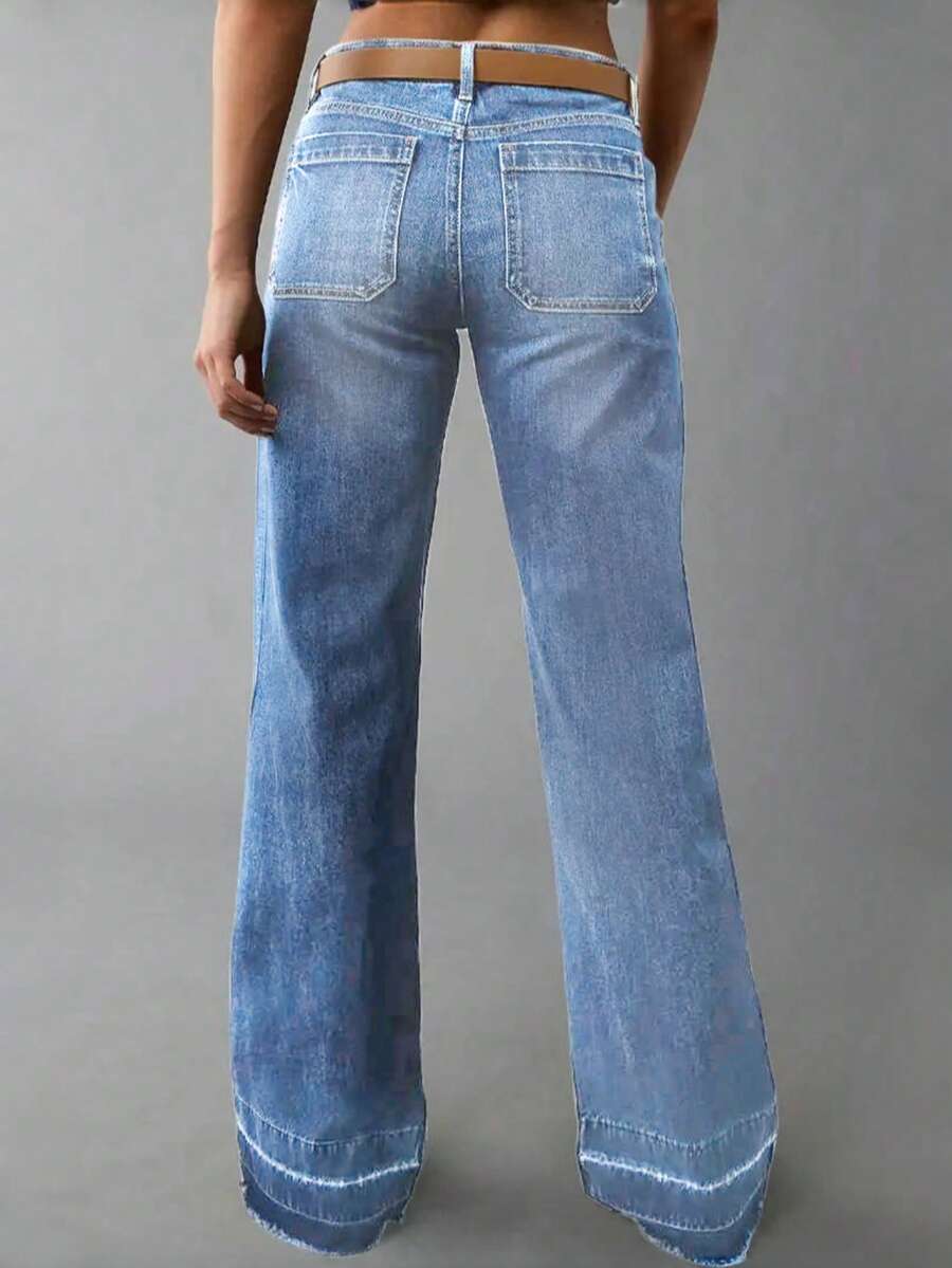 Women's Wide Leg Flared Jeans With Diamond Shaped Front Pockets