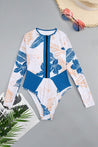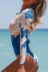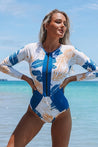 Blue Tropical LongSleeve OnePiece Surfing Swimsuit