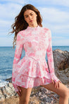 One-Piece Long Sleeve UPF50 Ruffle Skirt Swim Suit