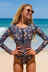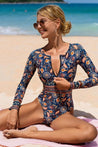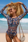 Whether you're hitting the waves or lounging on the beach, our Printed Spun Long Sleeved High-Waisted Deep V One-Piece UPF50+ Rash Guard is the perfect addition to your swimwear collection. Upgrade your swim style with this fashionable and functional rash guard today!
