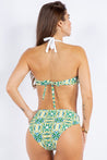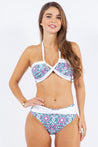TWO PIECE FLORAL PRINTS CRISS CROSS HALTER BIKINI
