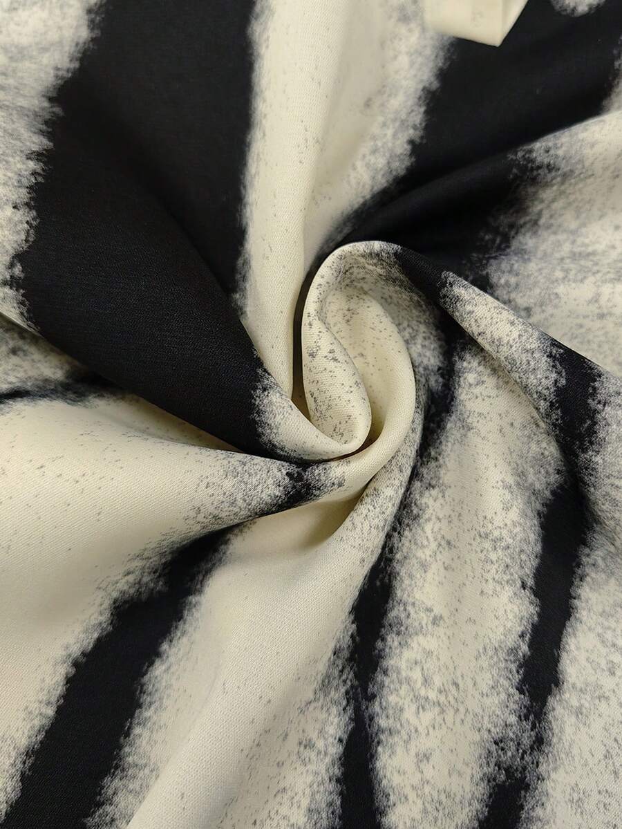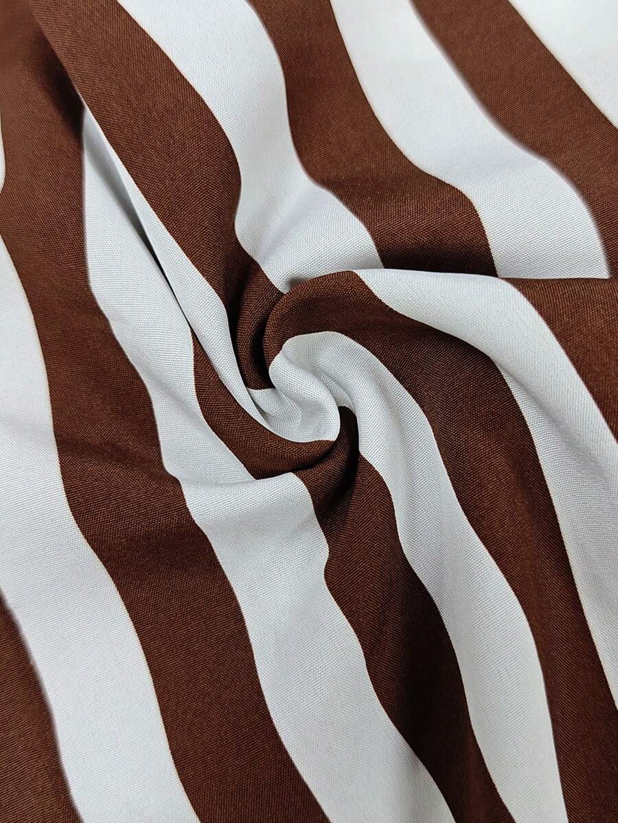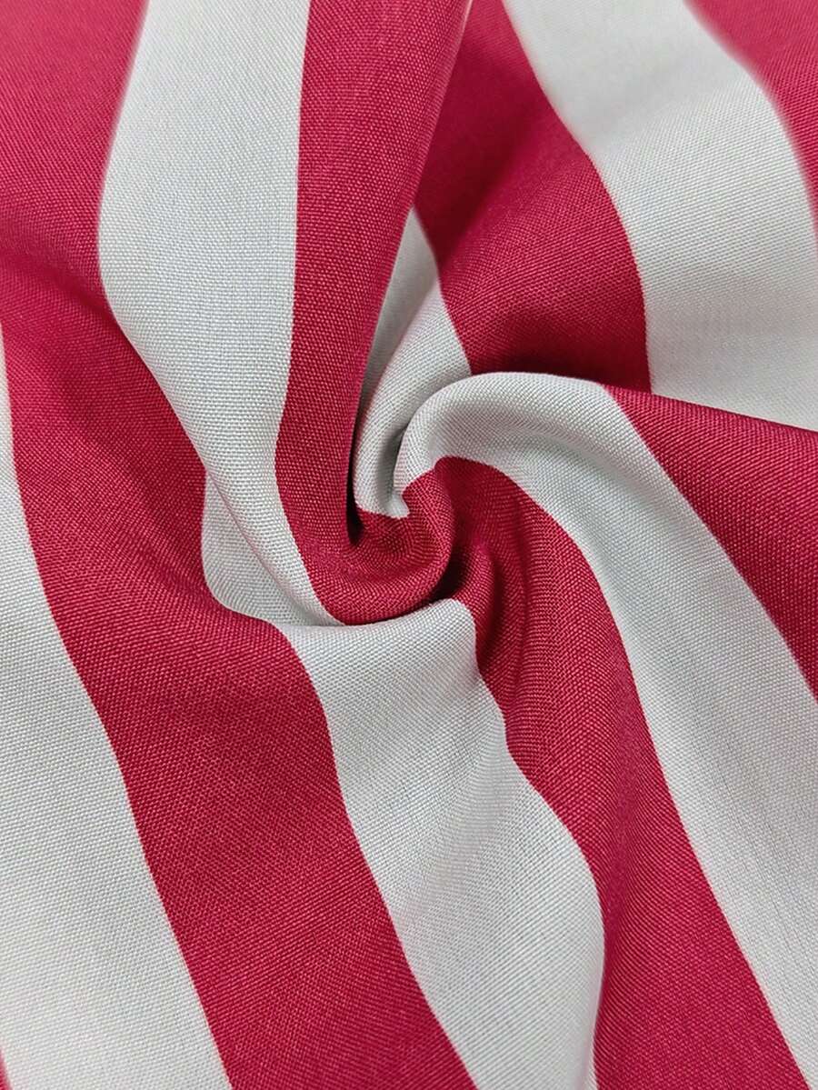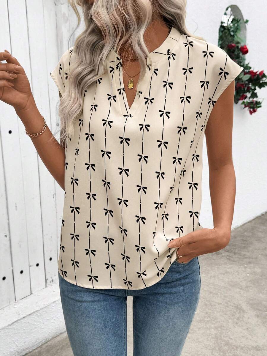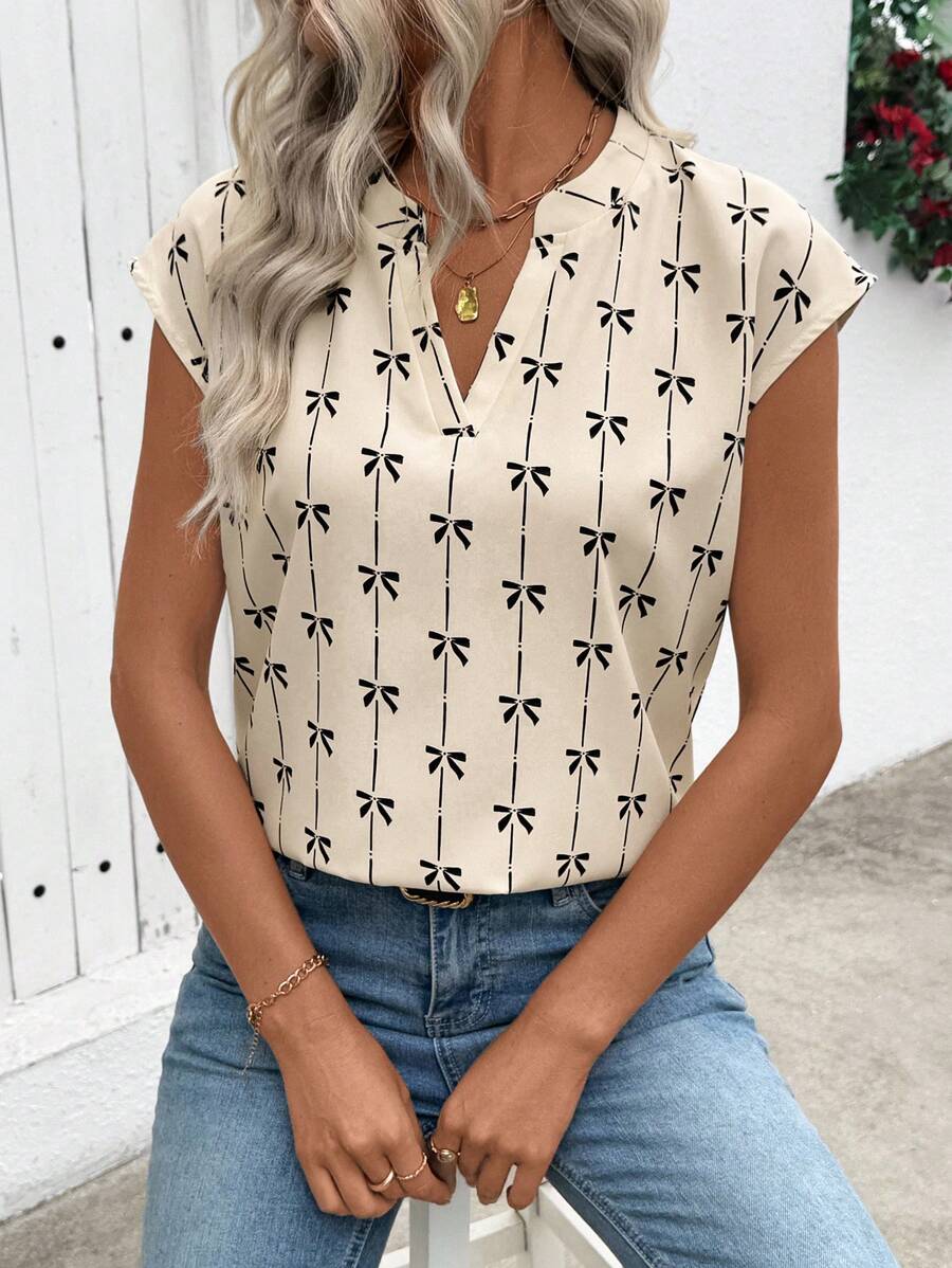 EMERY ROSE Notched V-Neck Stripe Print Elegant Office Wear Short Sleeve Blouse