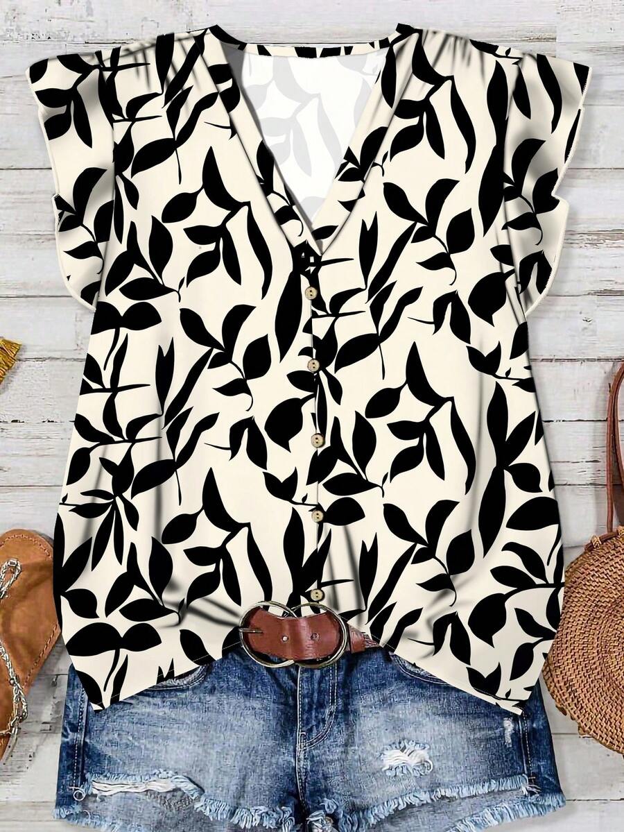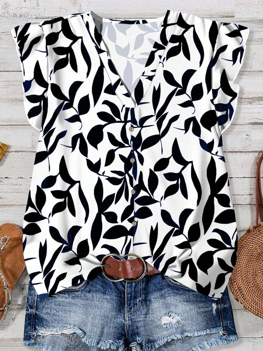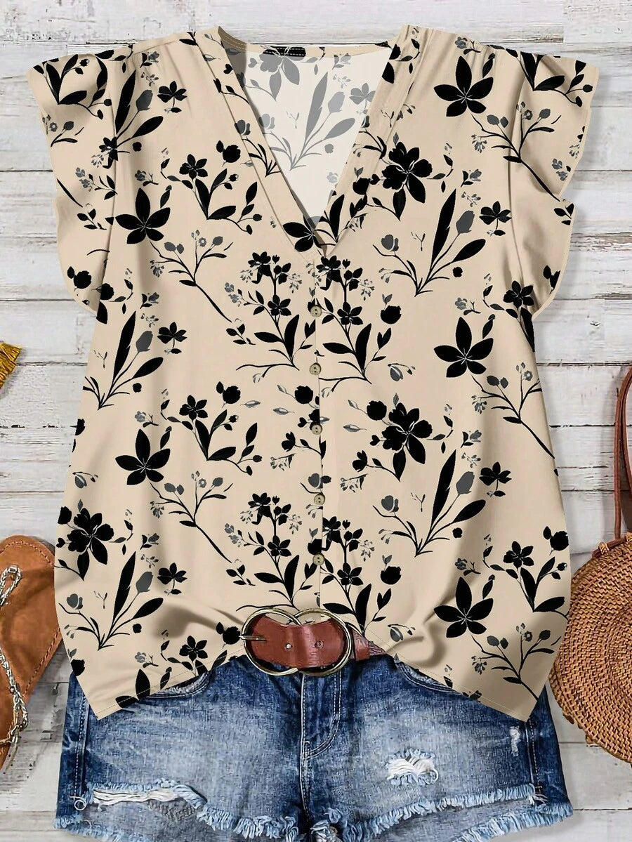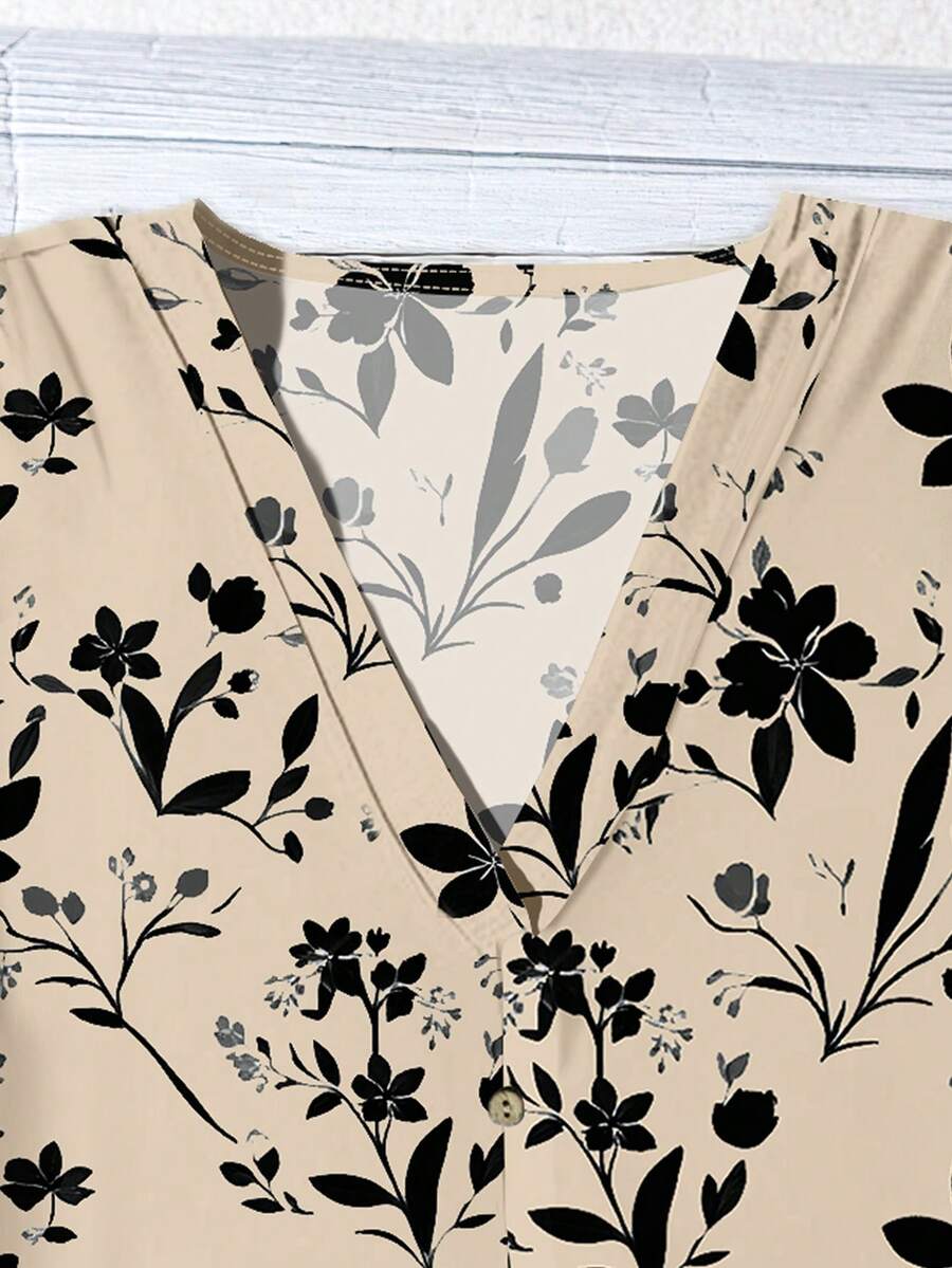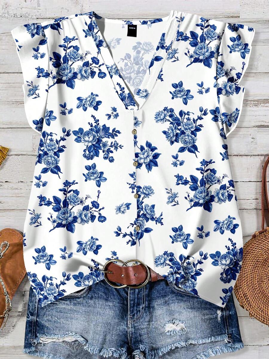 EMERY ROSE Women's Casual Floral Print Shirt, Suitable For Summer V Neck Blouses