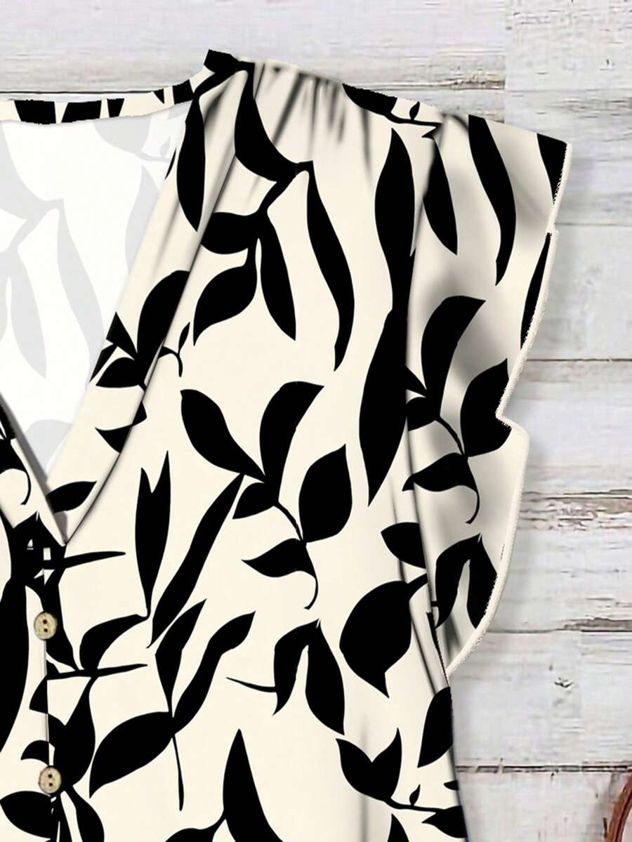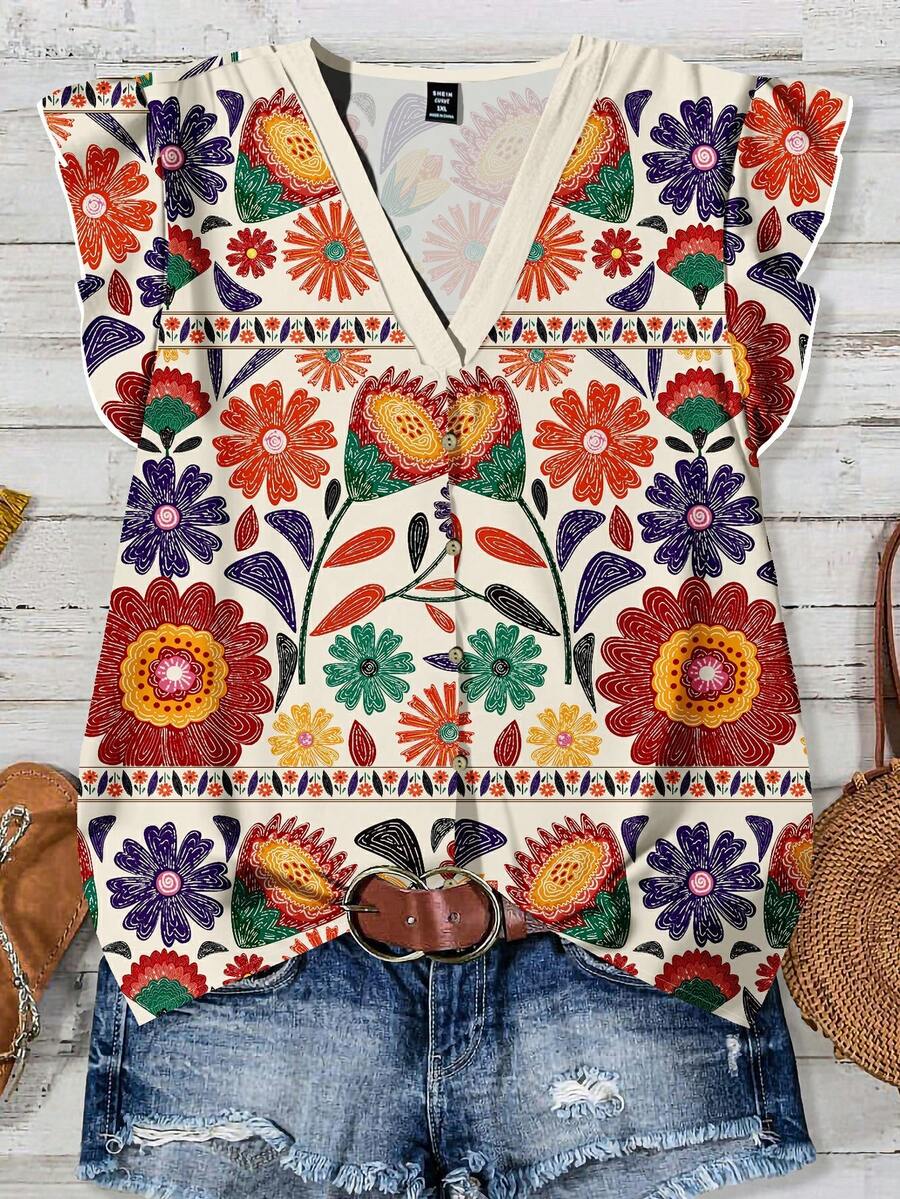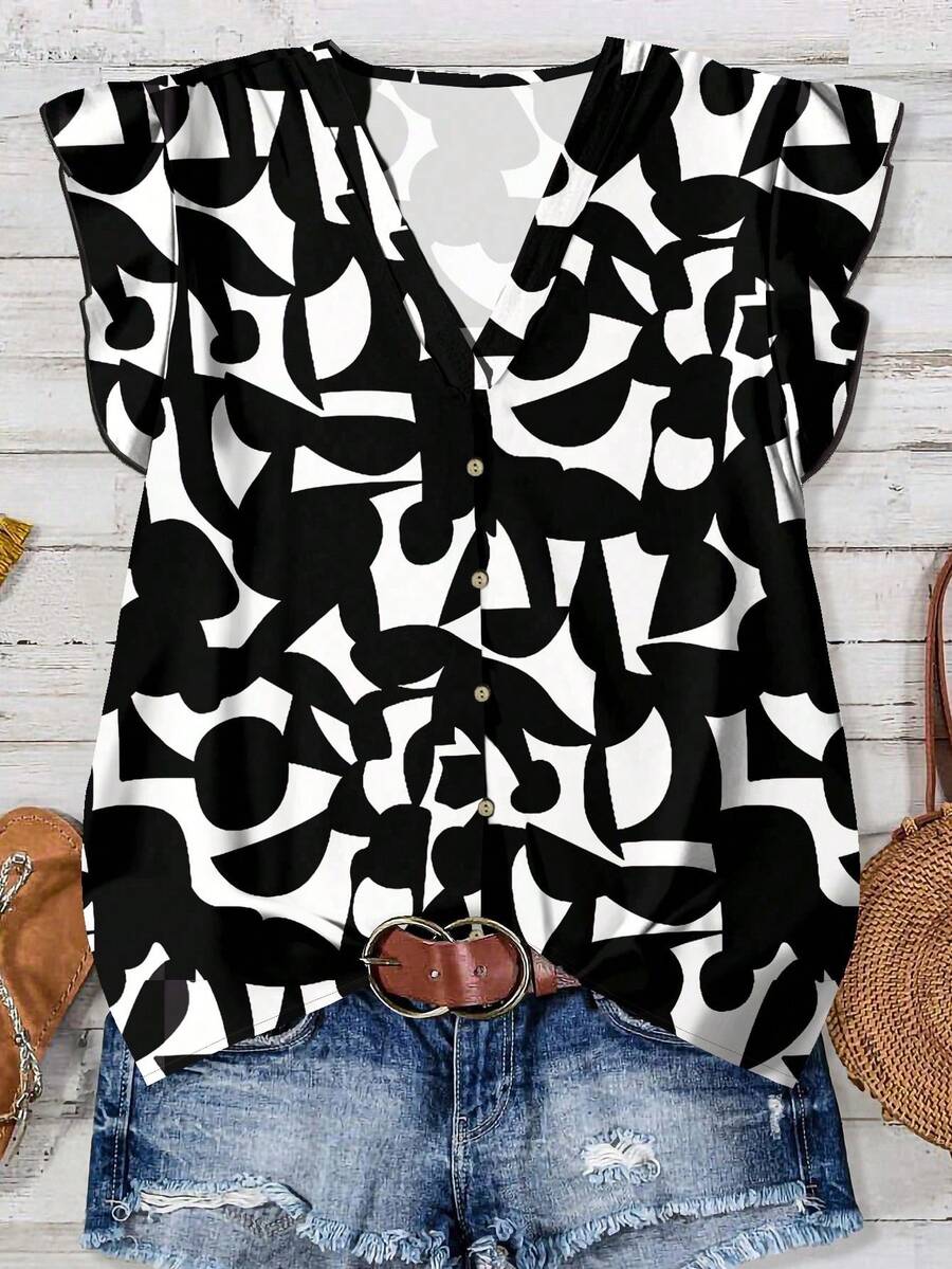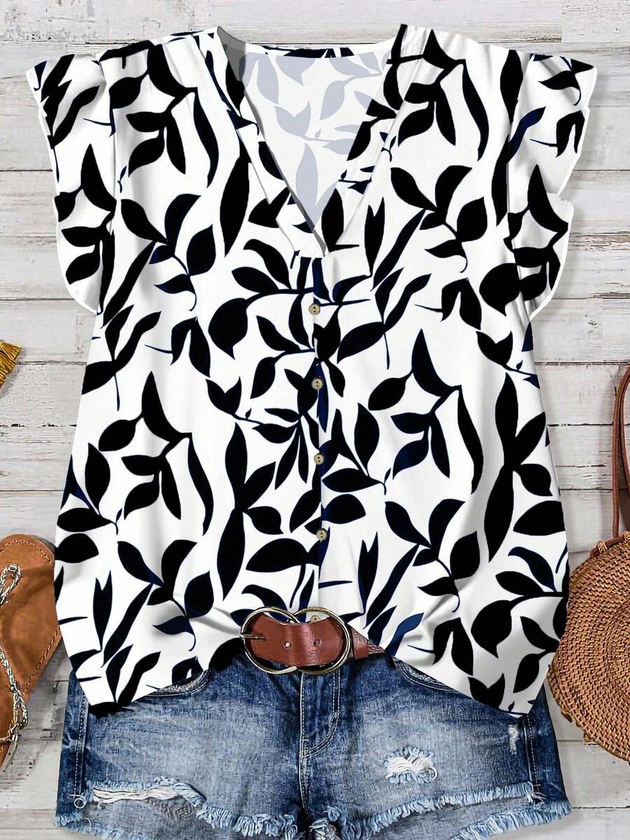 EMERY ROSE Women's Casual Floral Print Shirt, Suitable For Summer V Neck Blouses