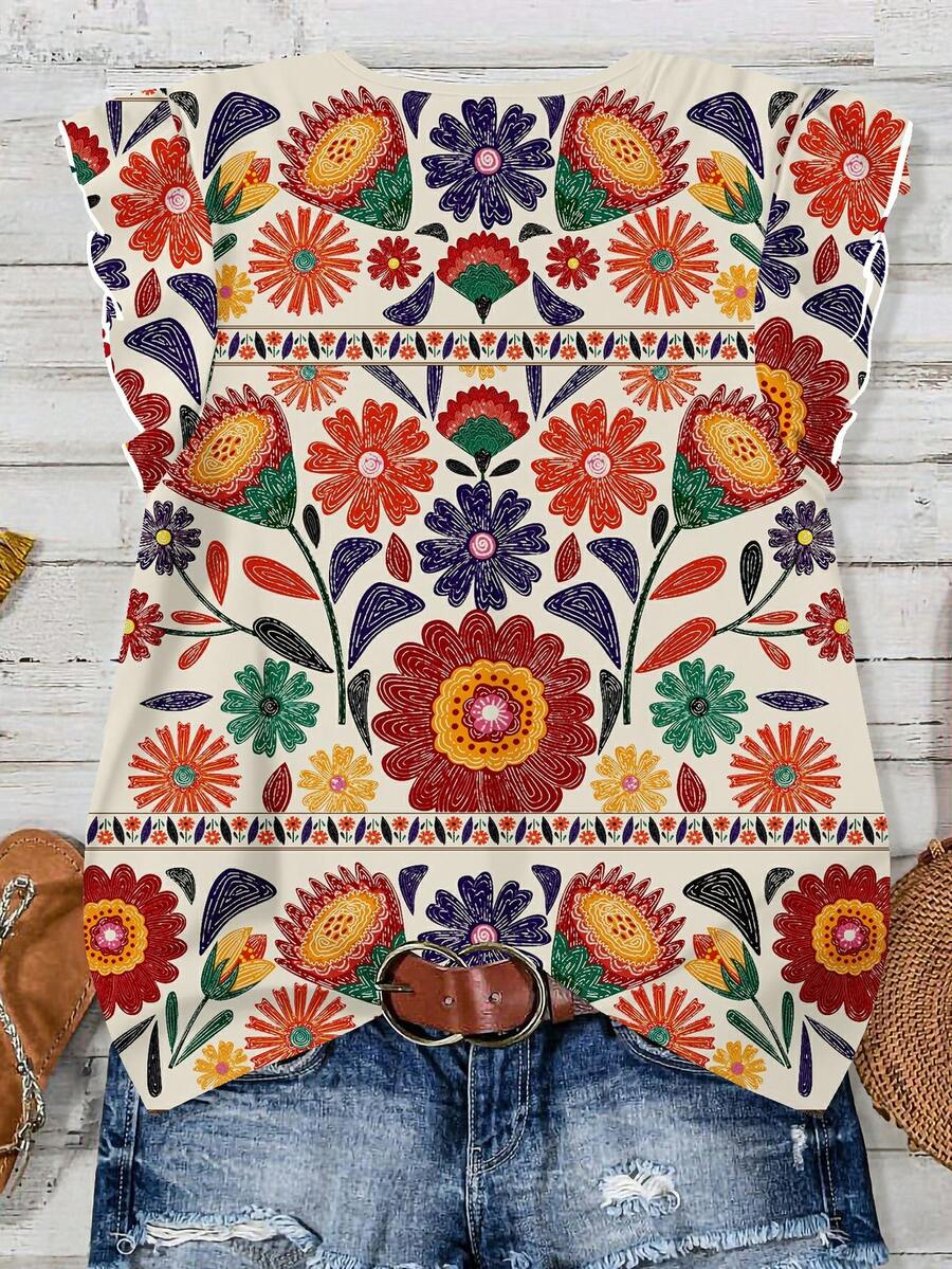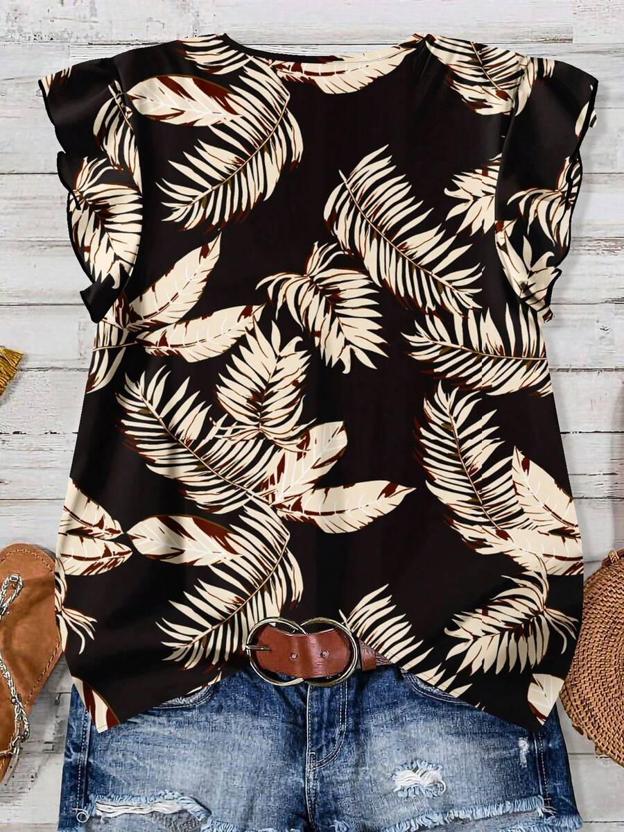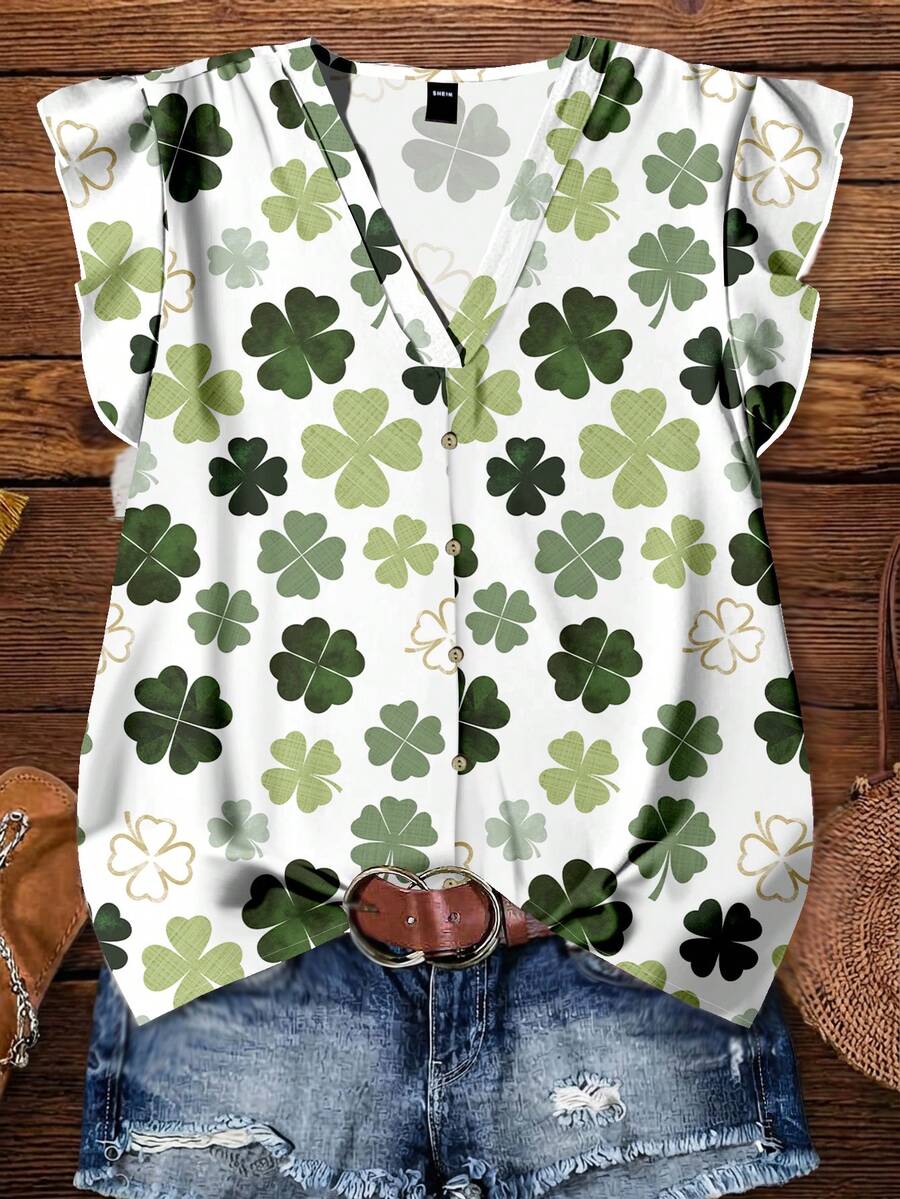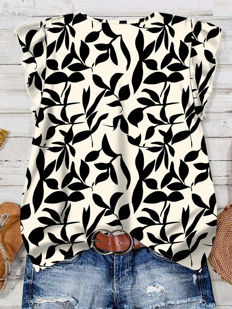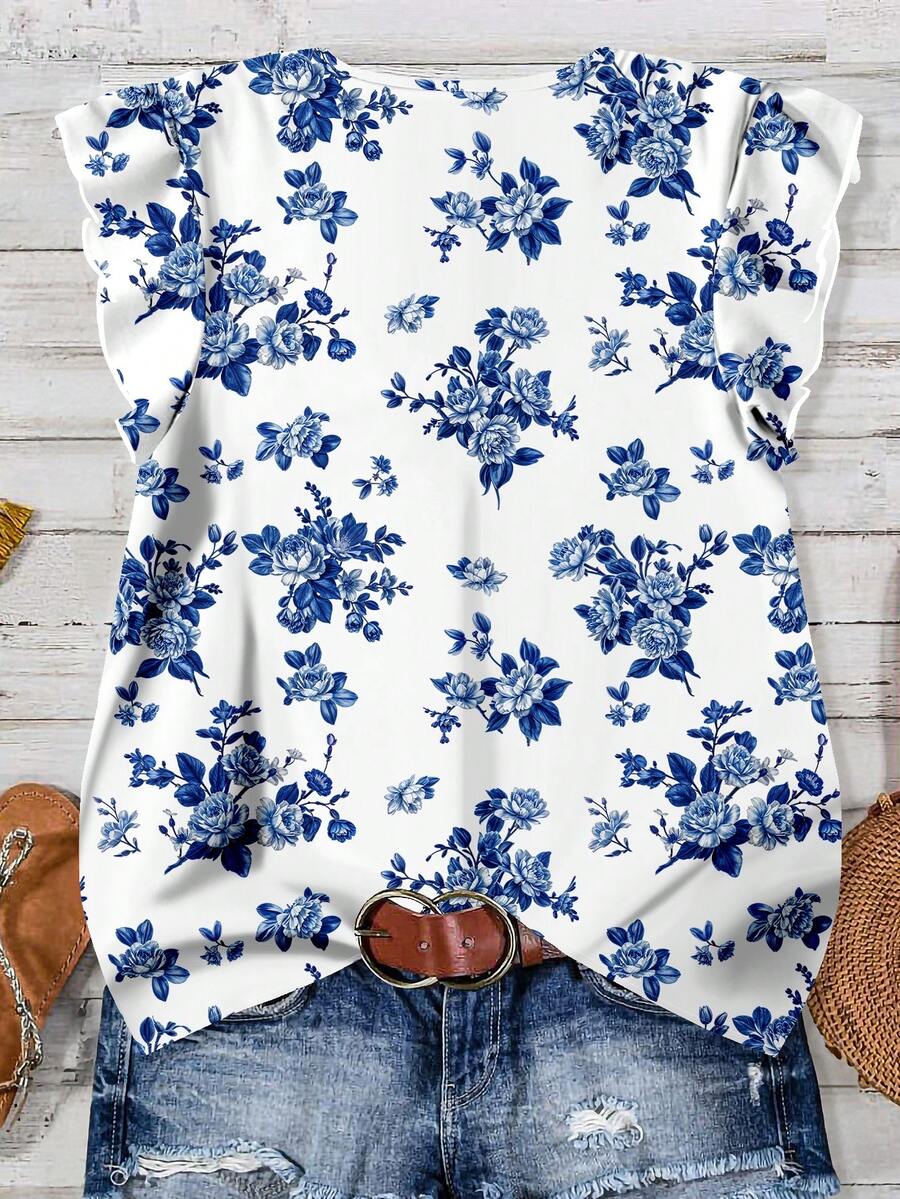 EMERY ROSE Women's Casual Floral Print Shirt, Suitable For Summer V Neck Blouses