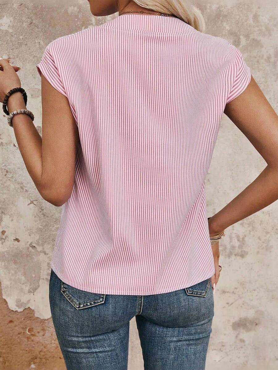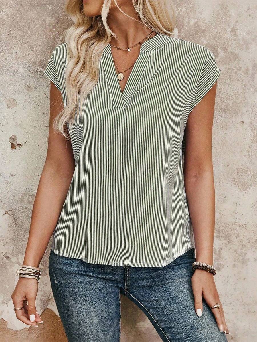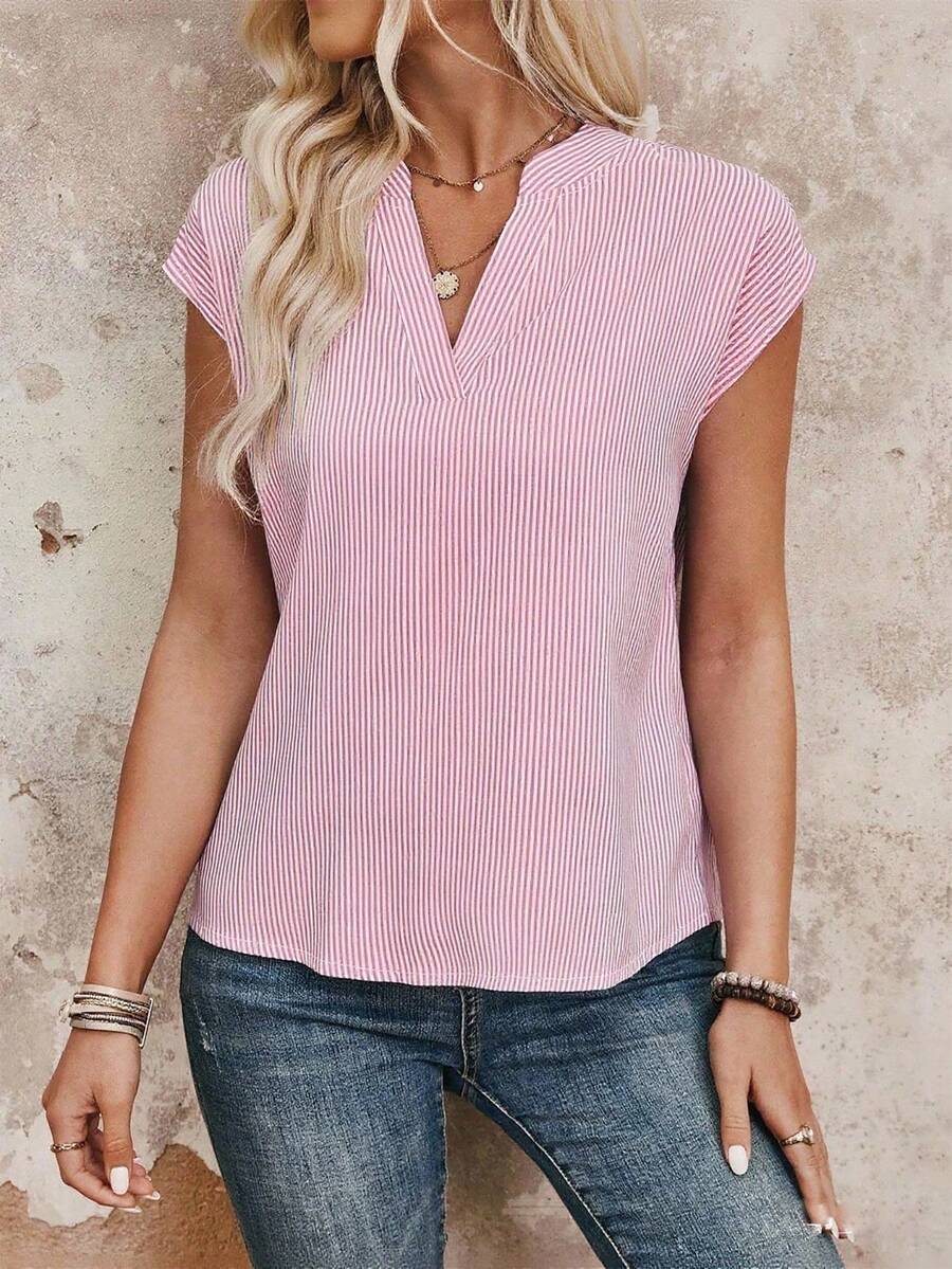 EMERY ROSE Women's Casual Striped Cutout Neck Batwing Sleeve Shirt, Summer
