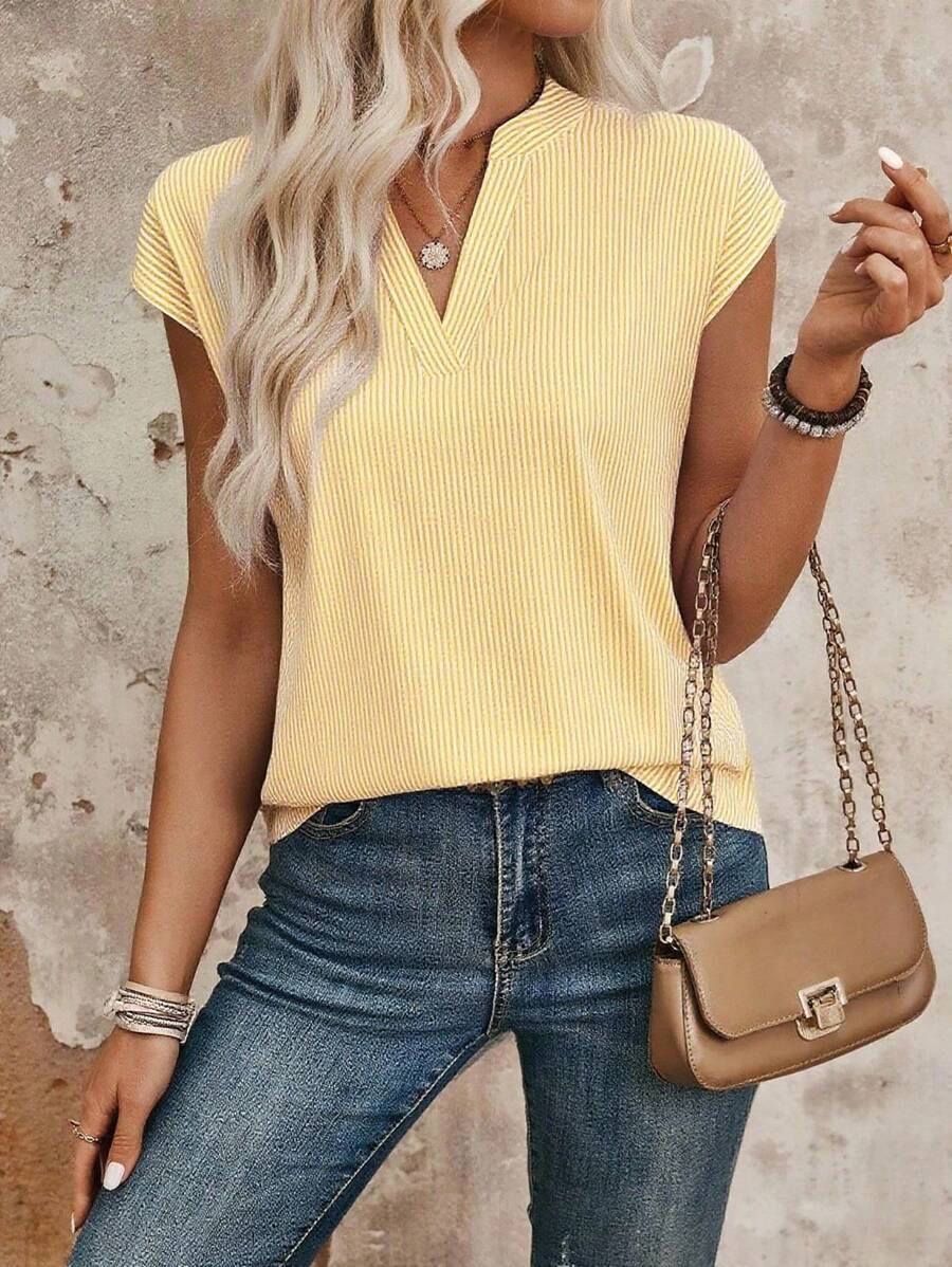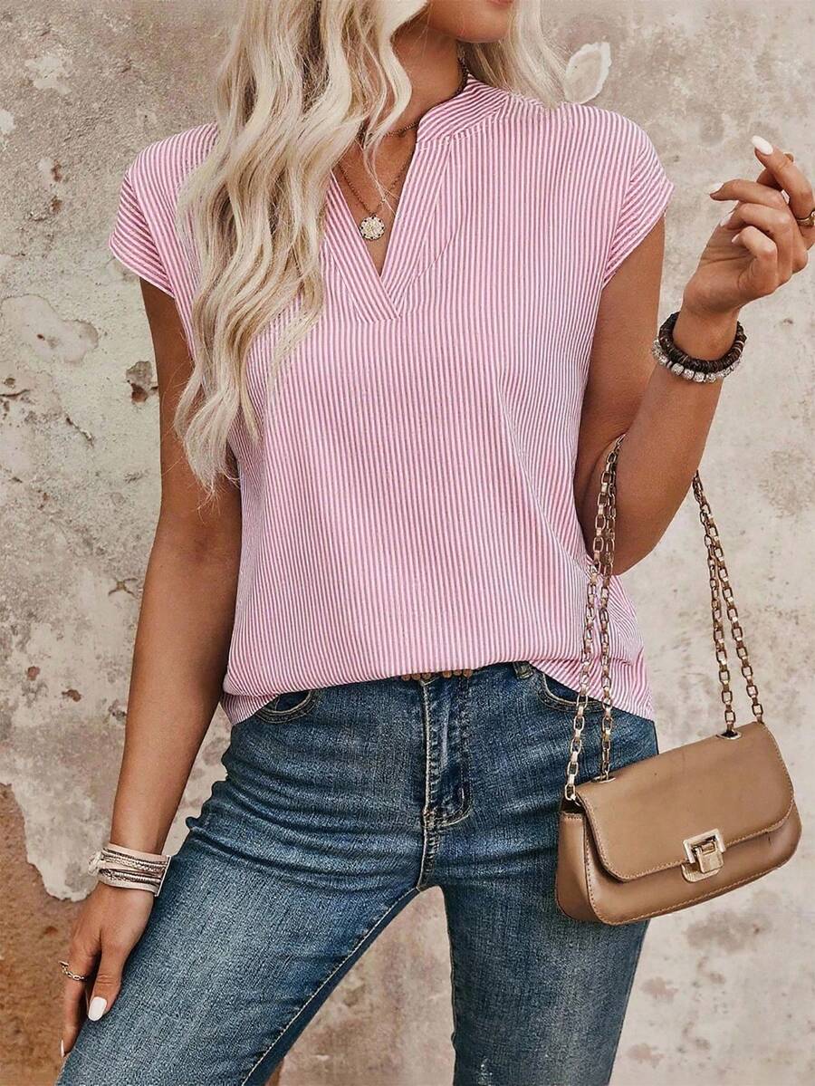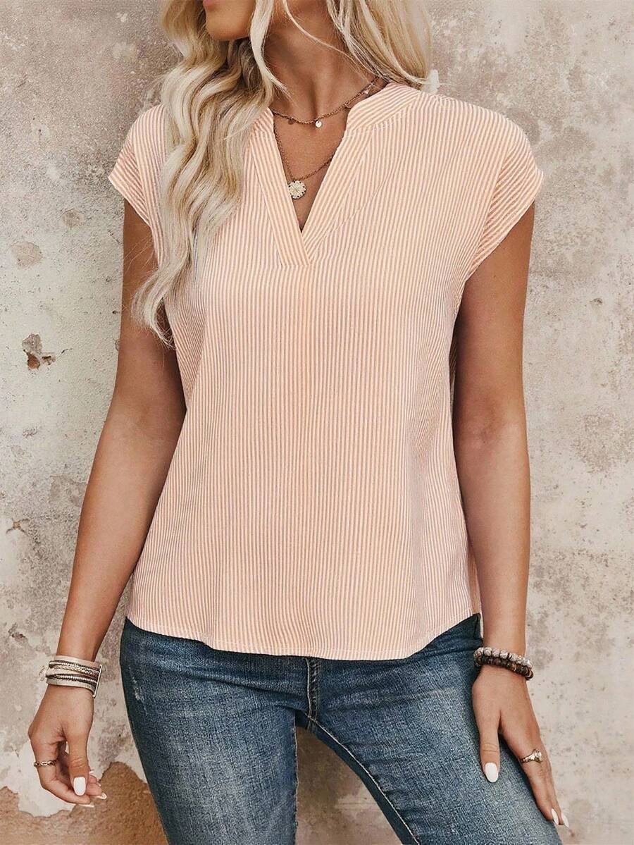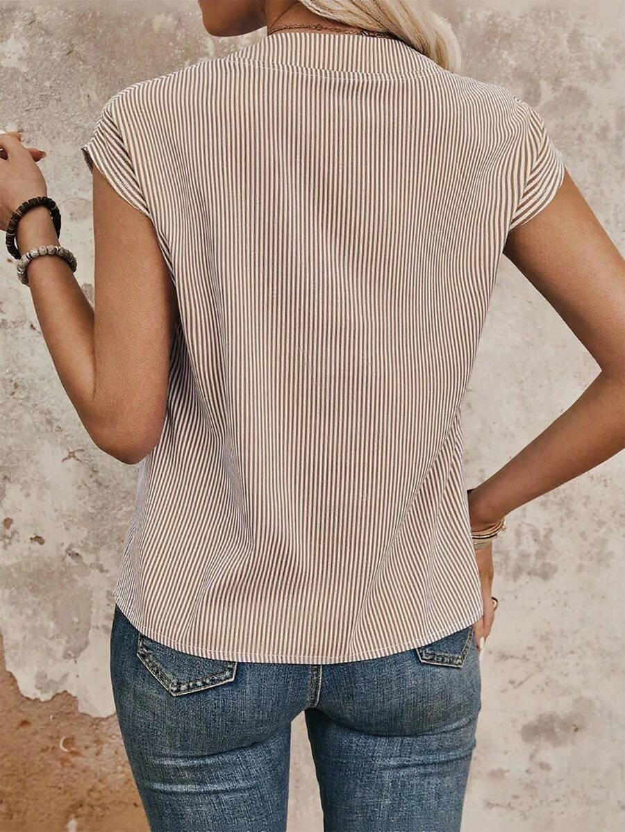 EMERY ROSE Women's Casual Striped Cutout Neck Batwing Sleeve Shirt, Summer