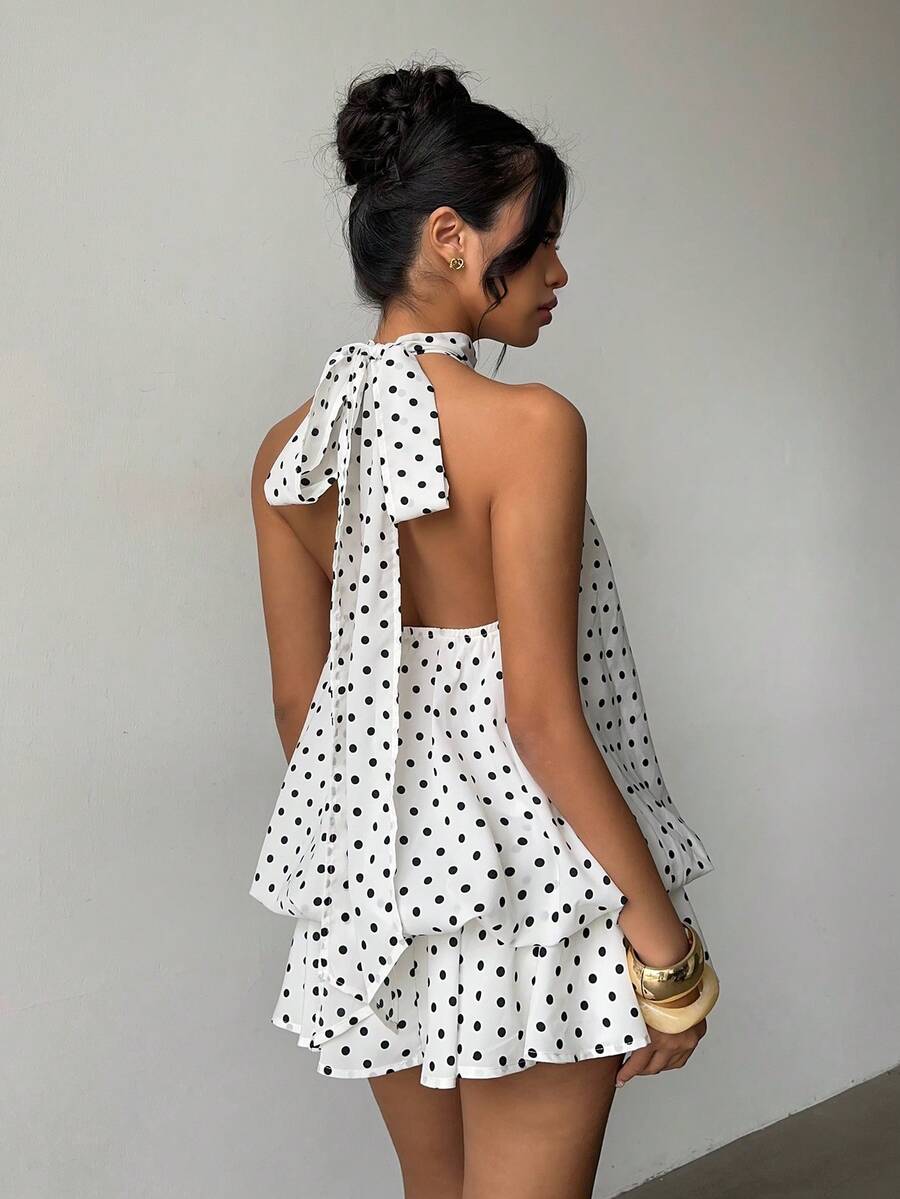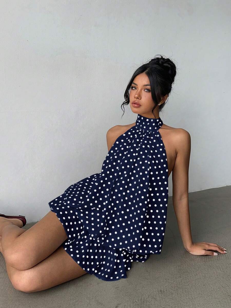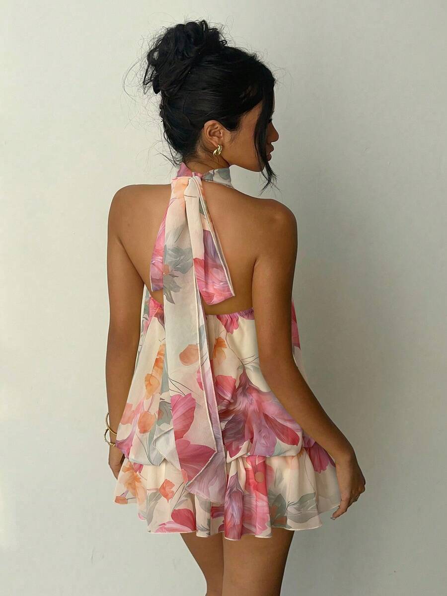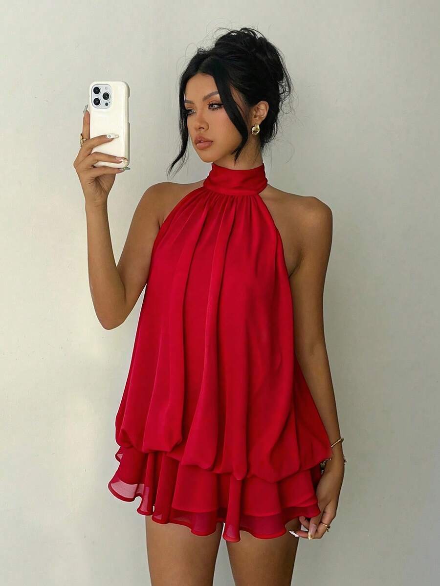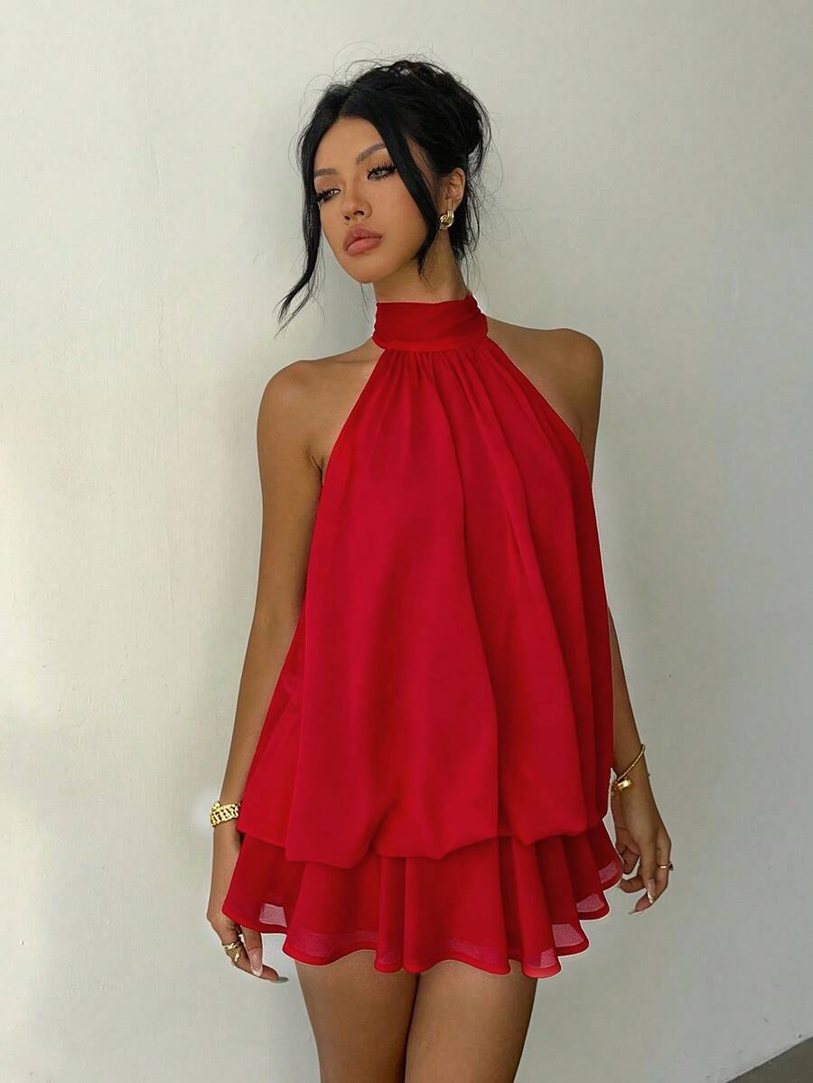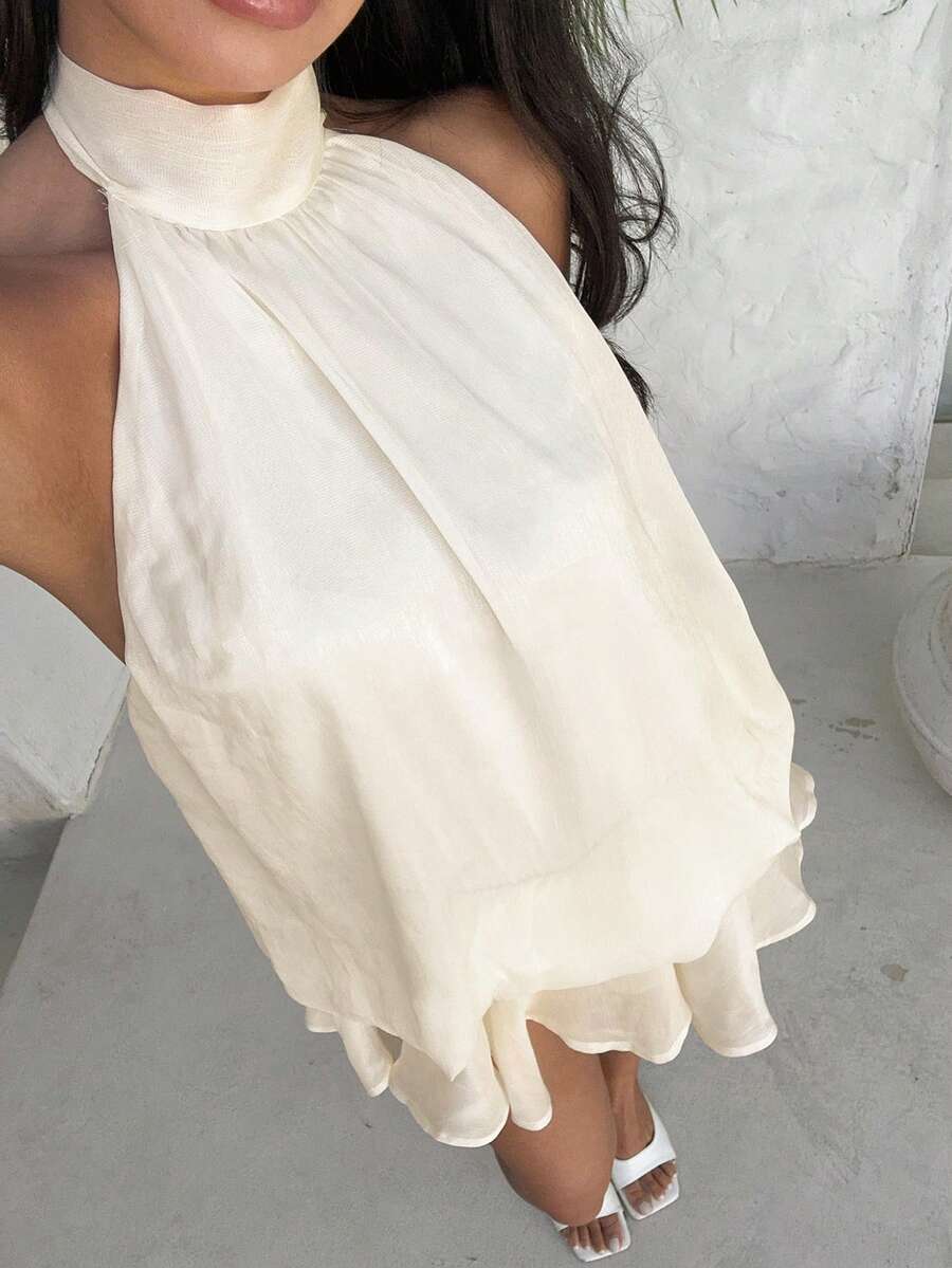 Aloruh Women's Elegant Brown Halter Tie Mini Dress