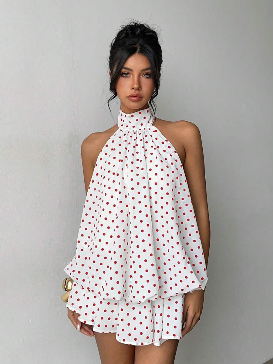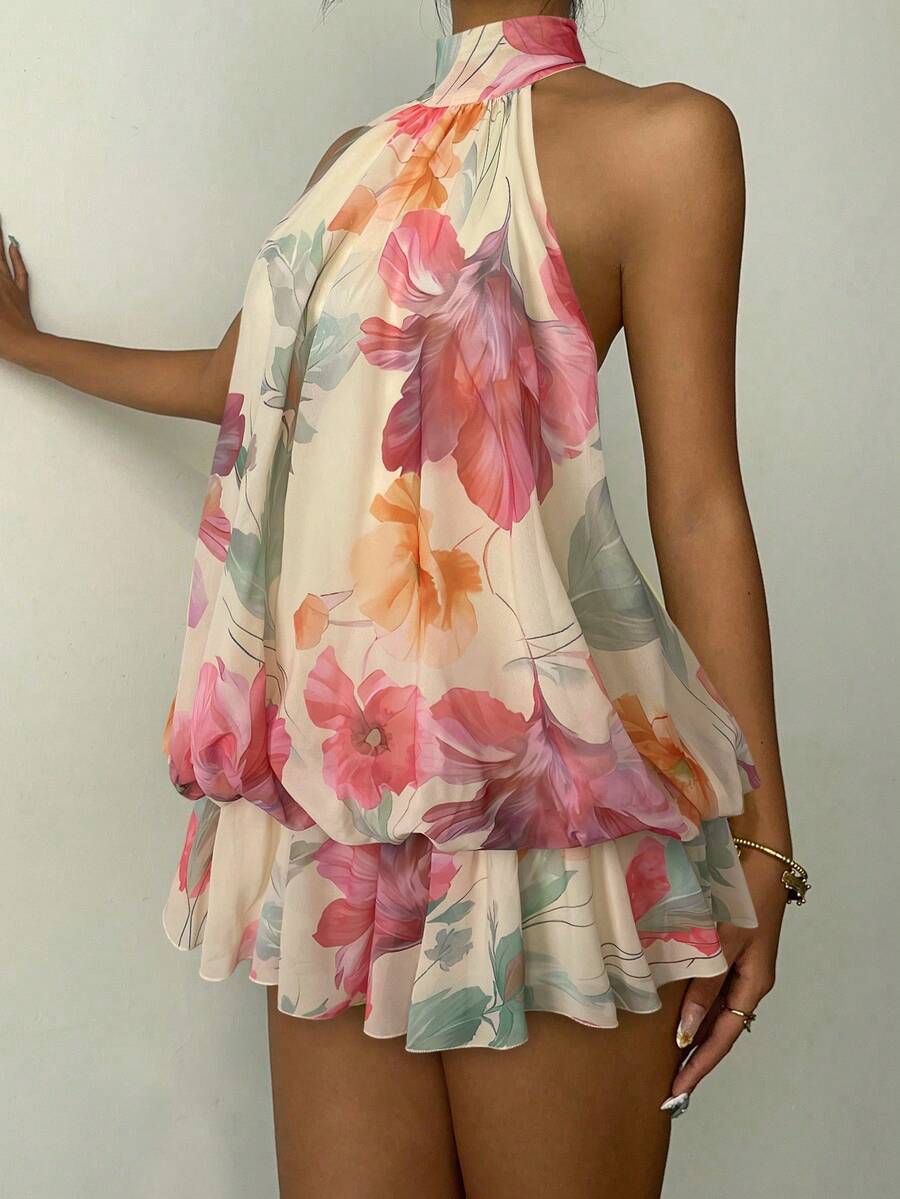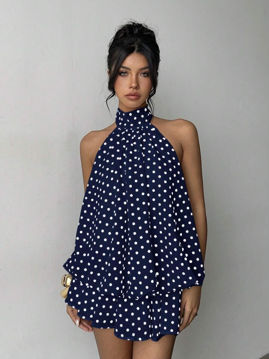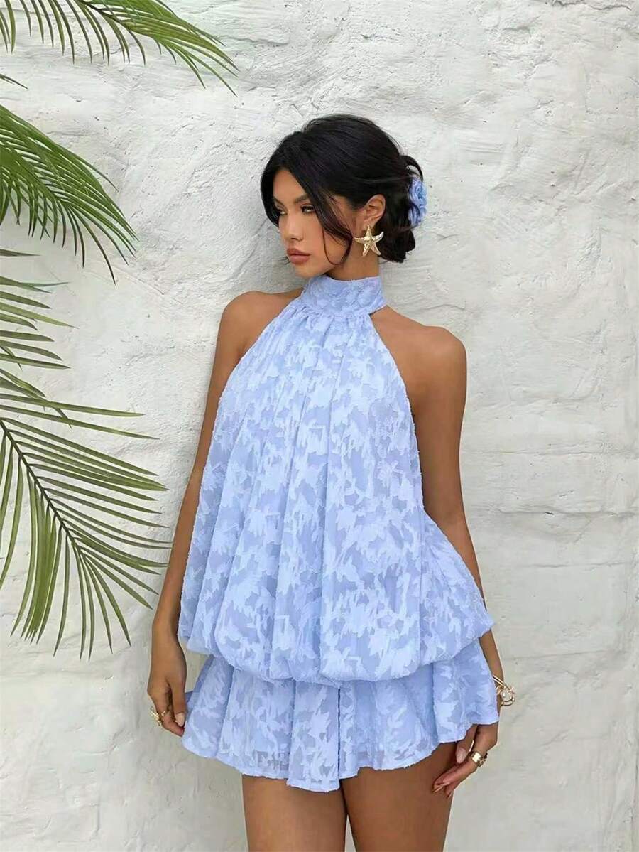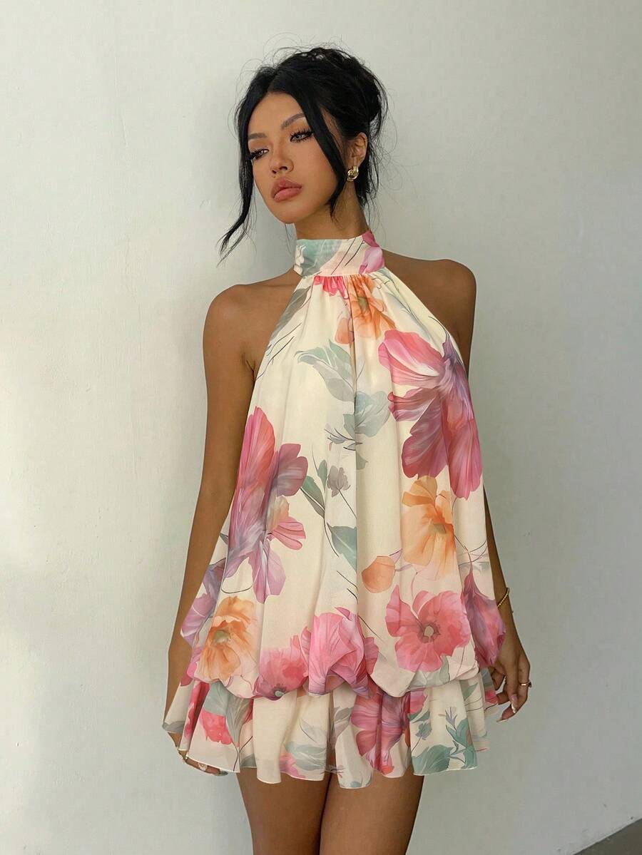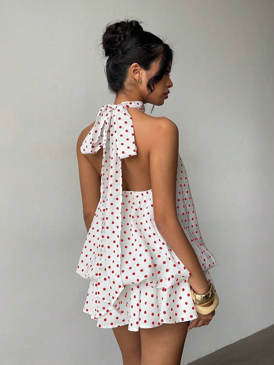 Aloruh Women's Elegant Brown Halter Tie Mini Dress