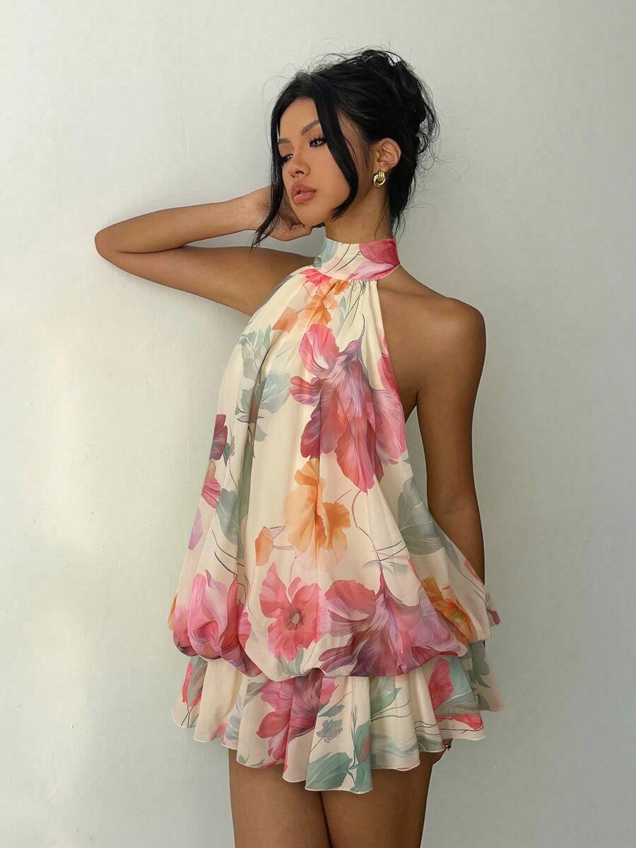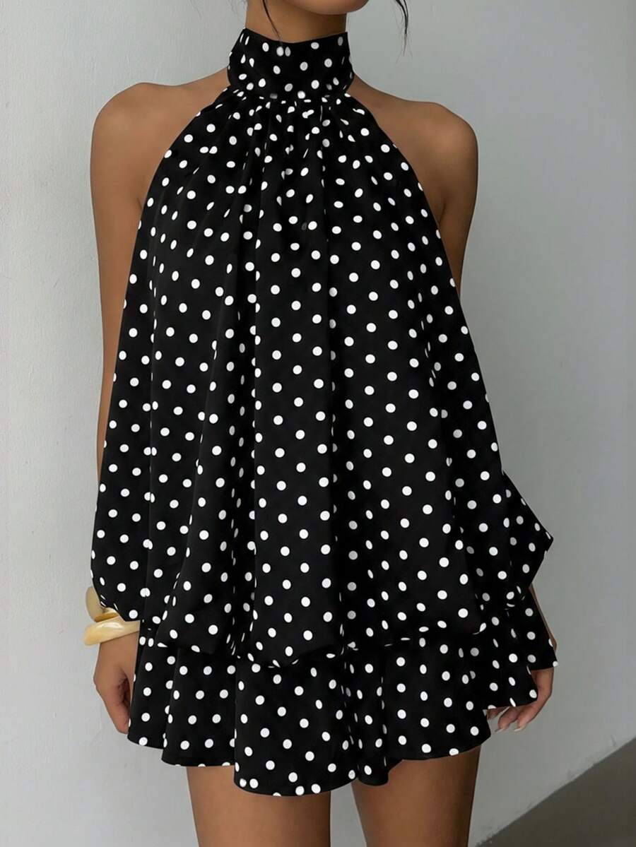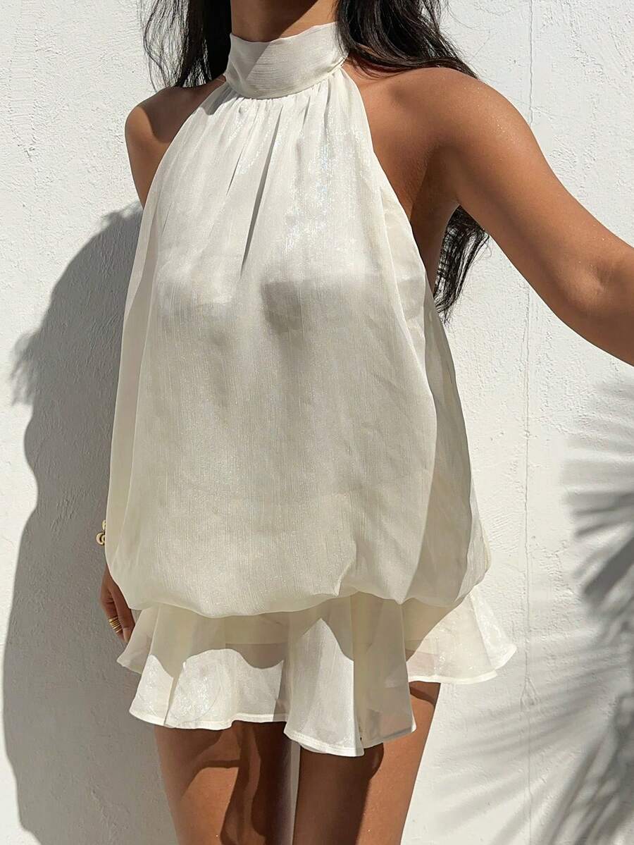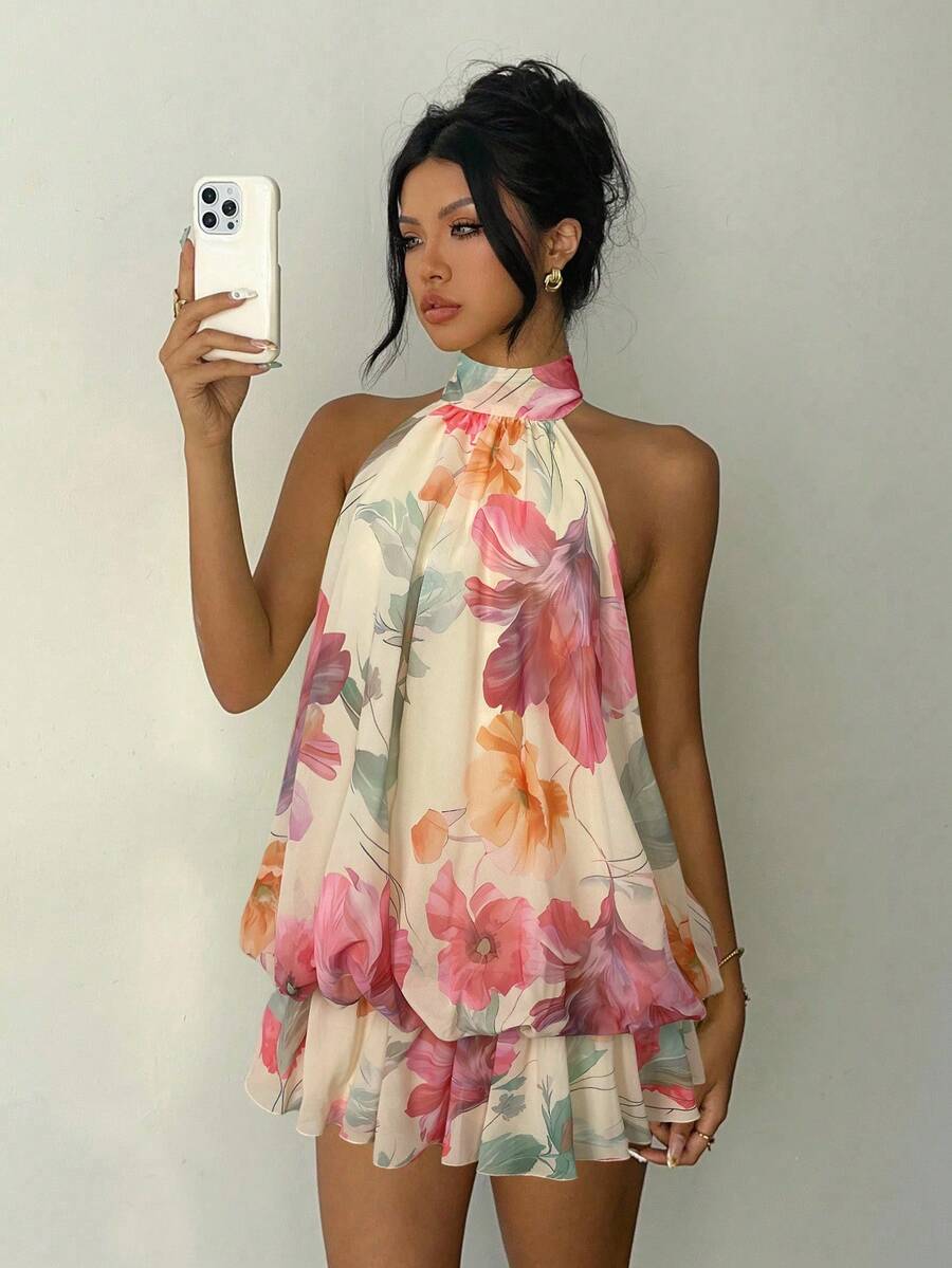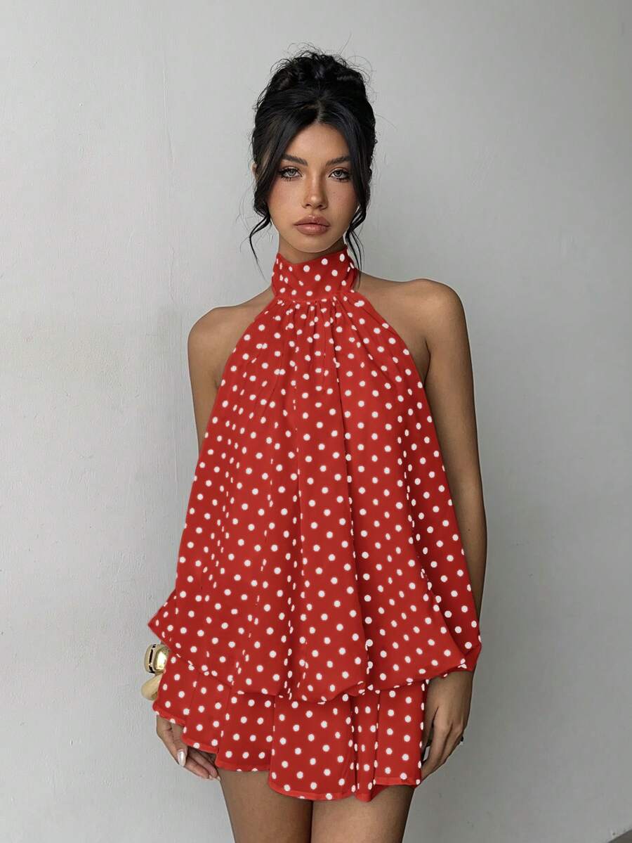 Aloruh Women's Elegant Brown Halter Tie Mini Dress