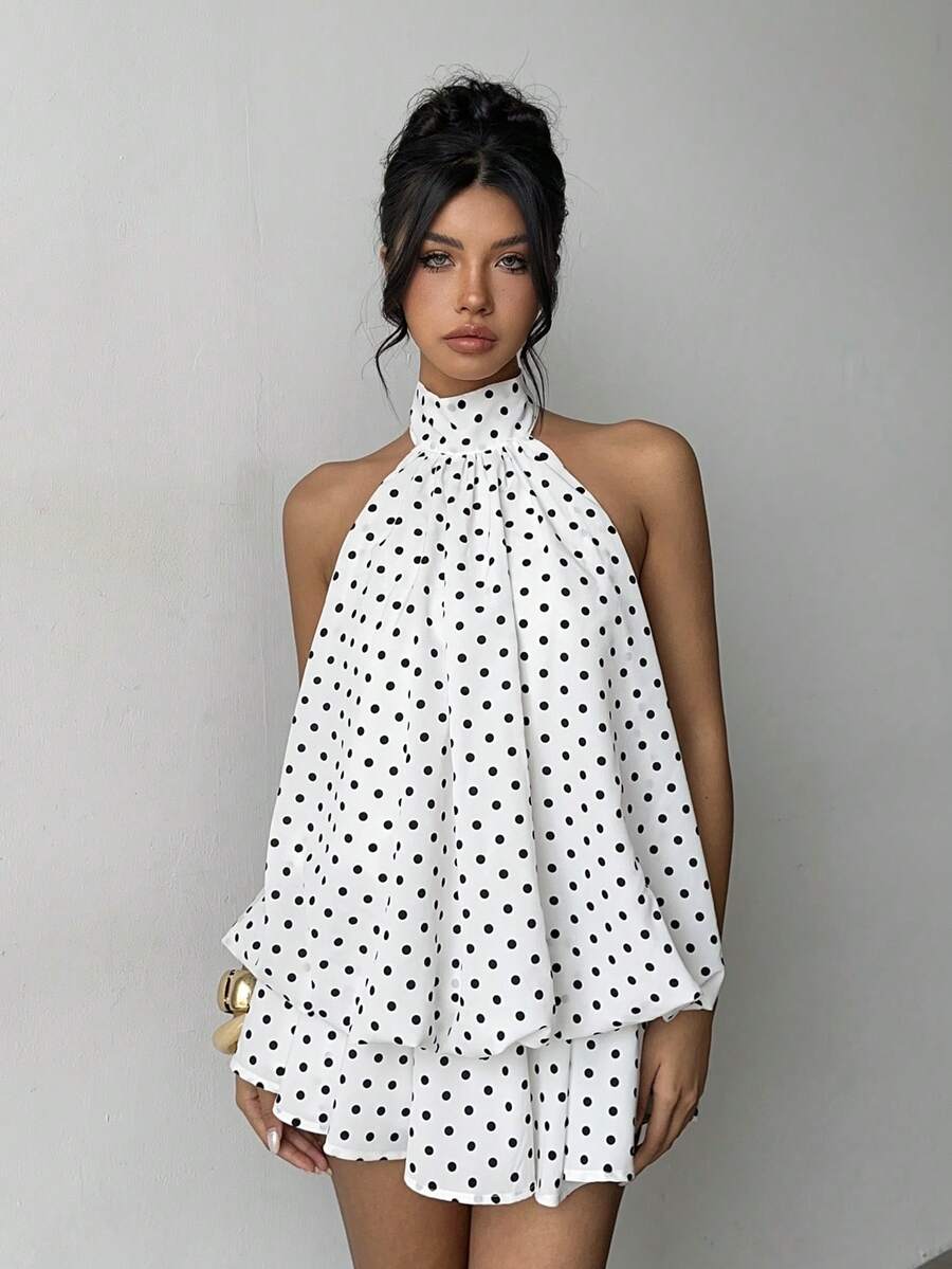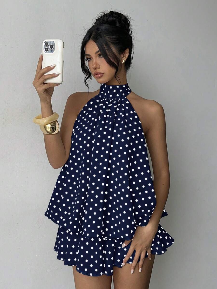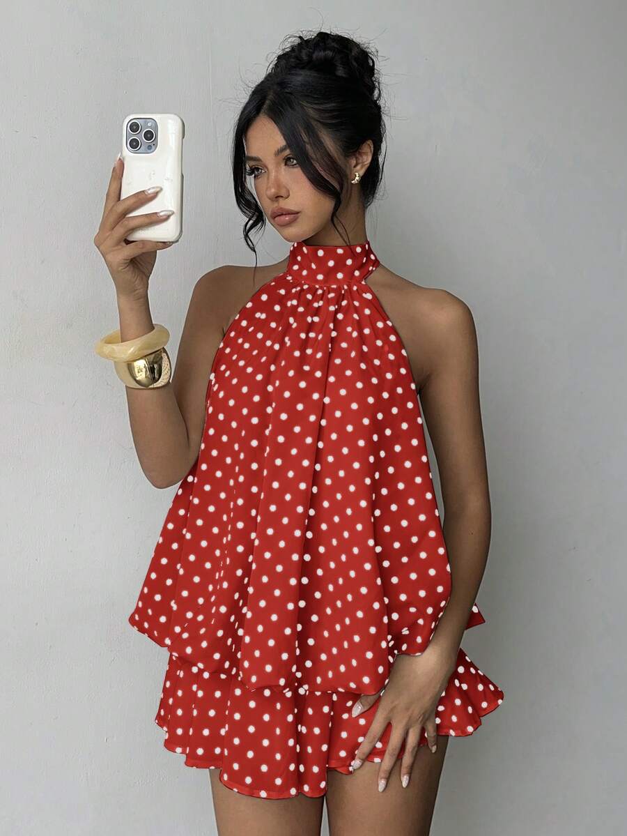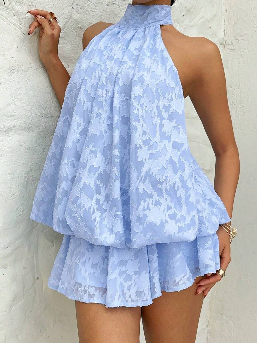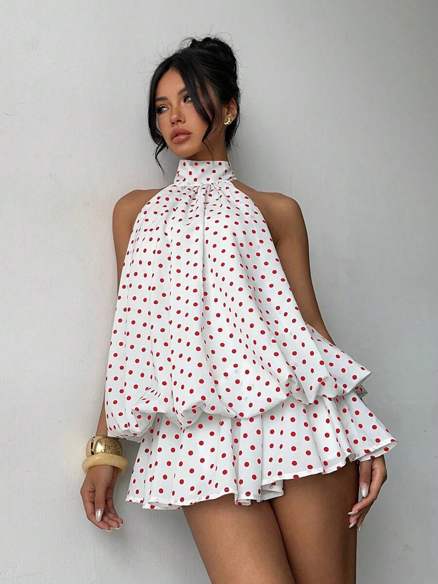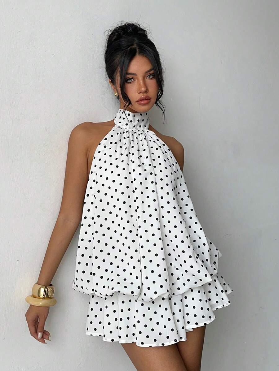 Aloruh Women's Elegant Brown Halter Tie Mini Dress