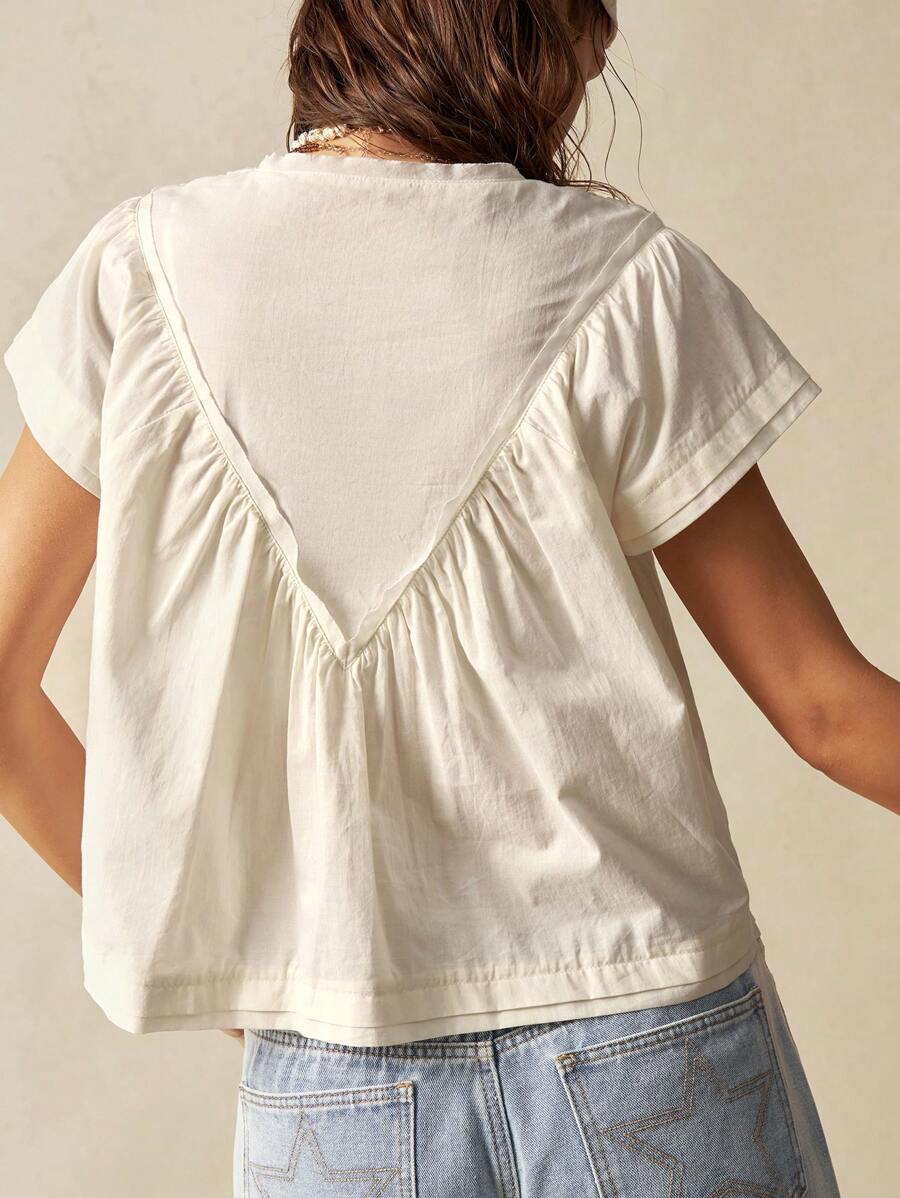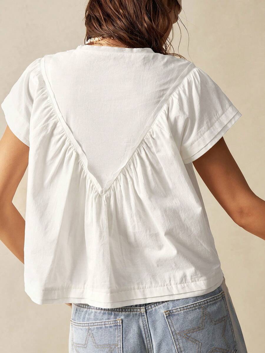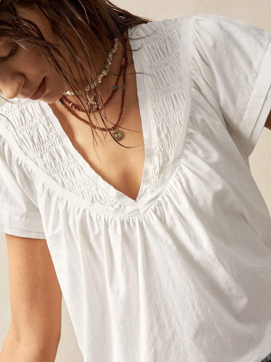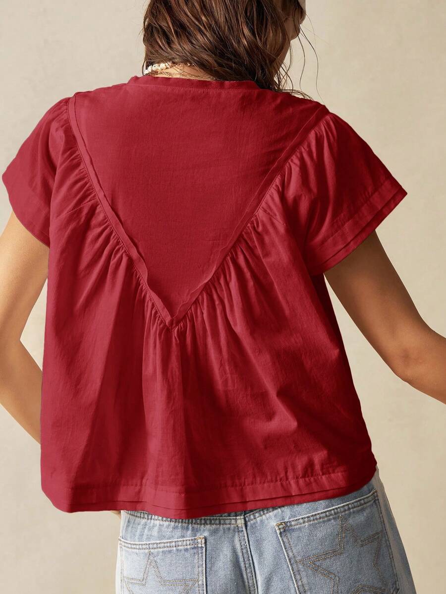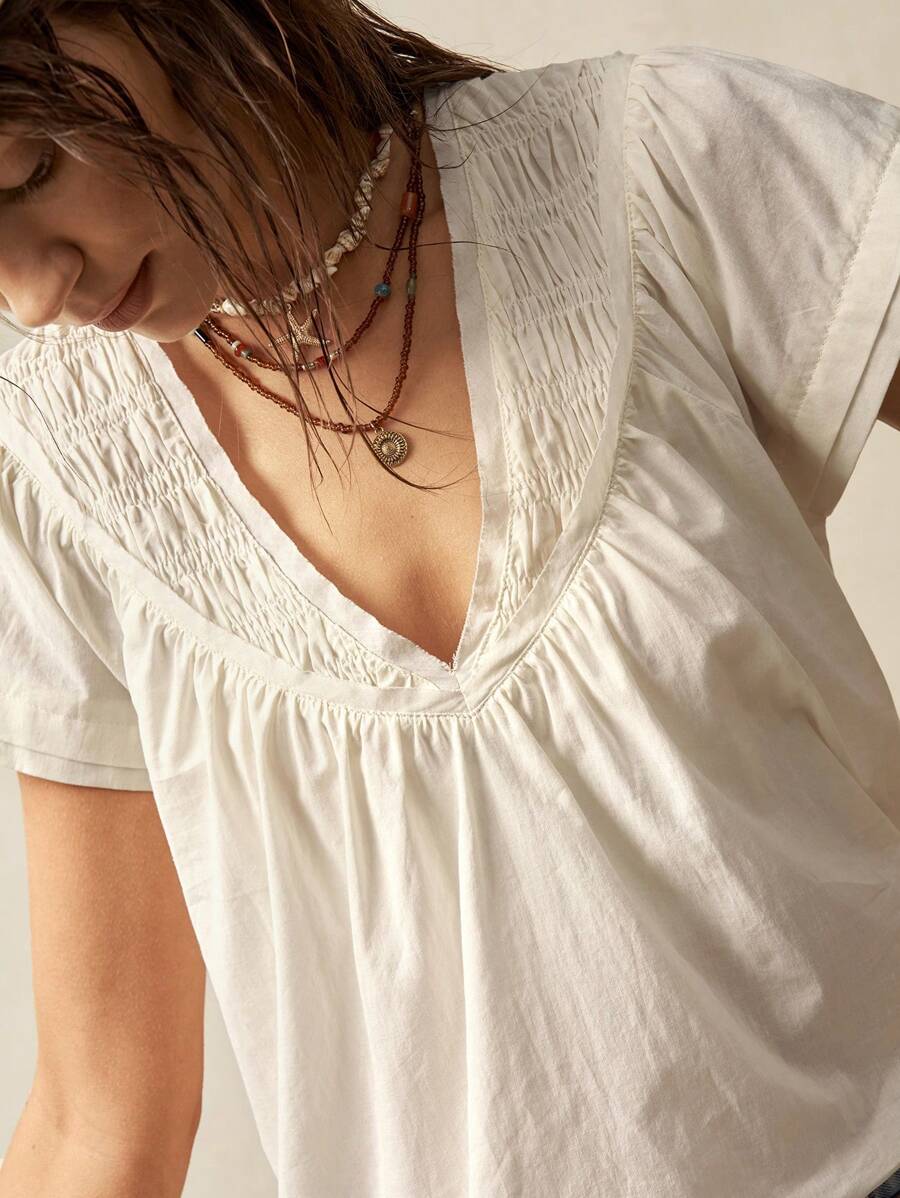 Bohemela Solid Color V-Neck Loose Fit Women Blouse