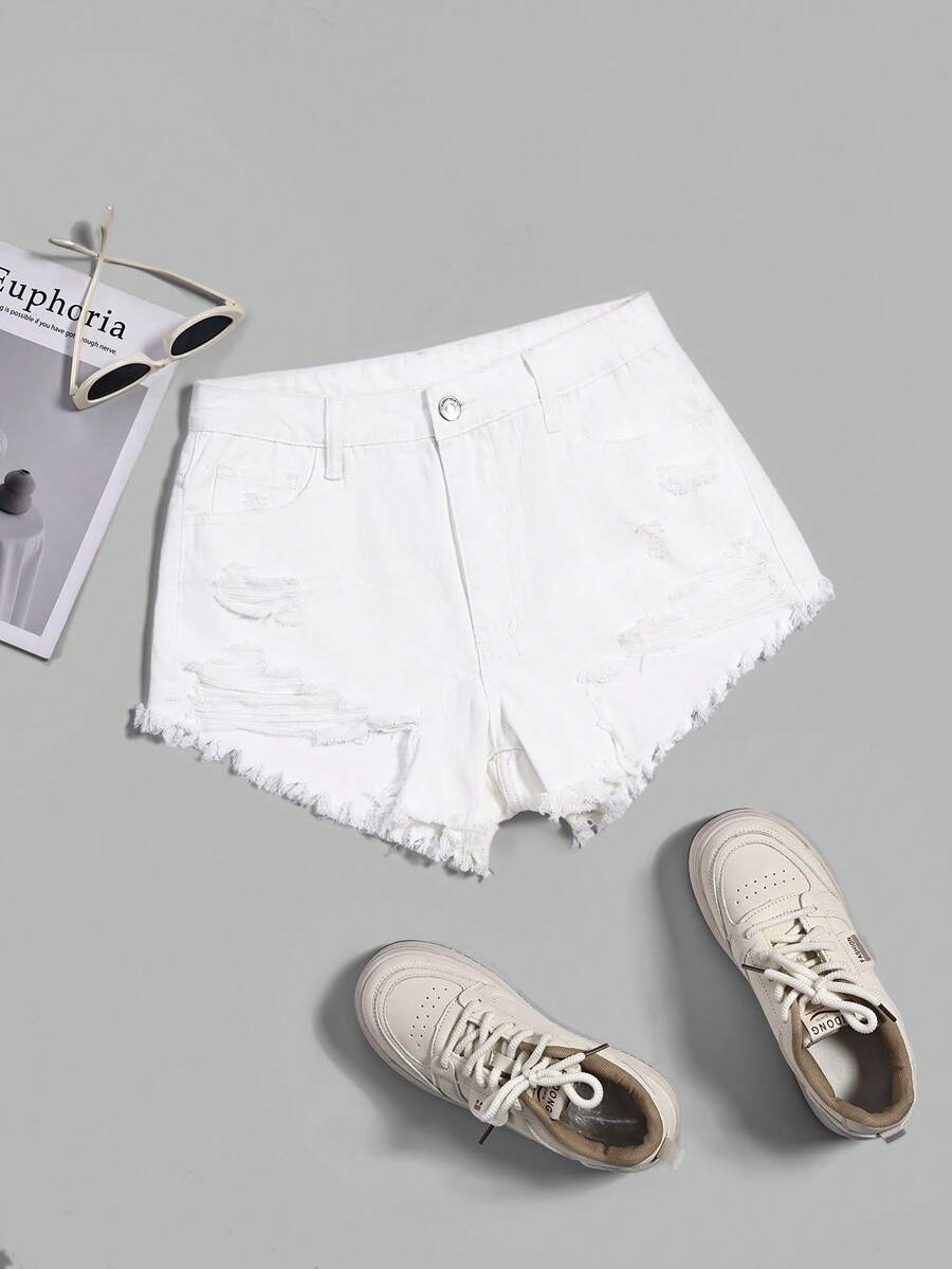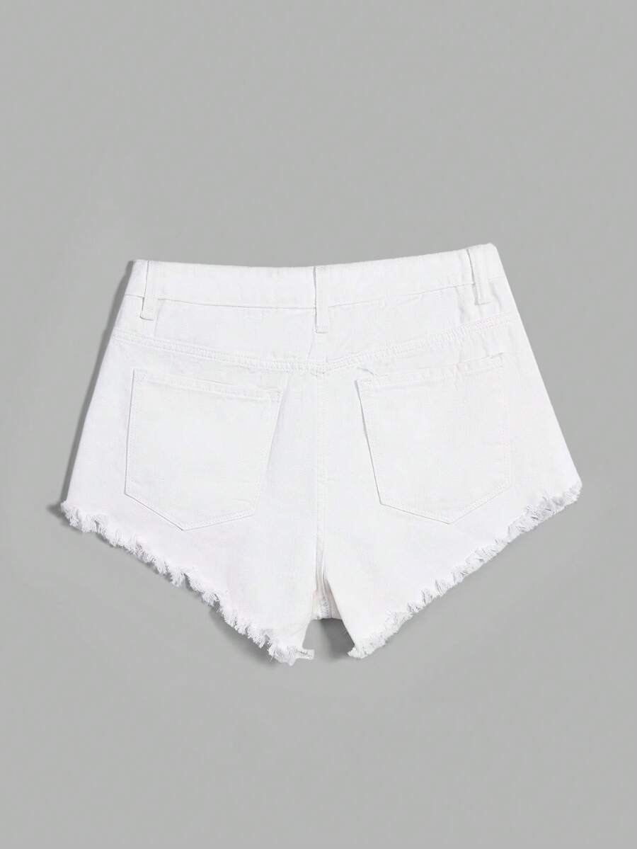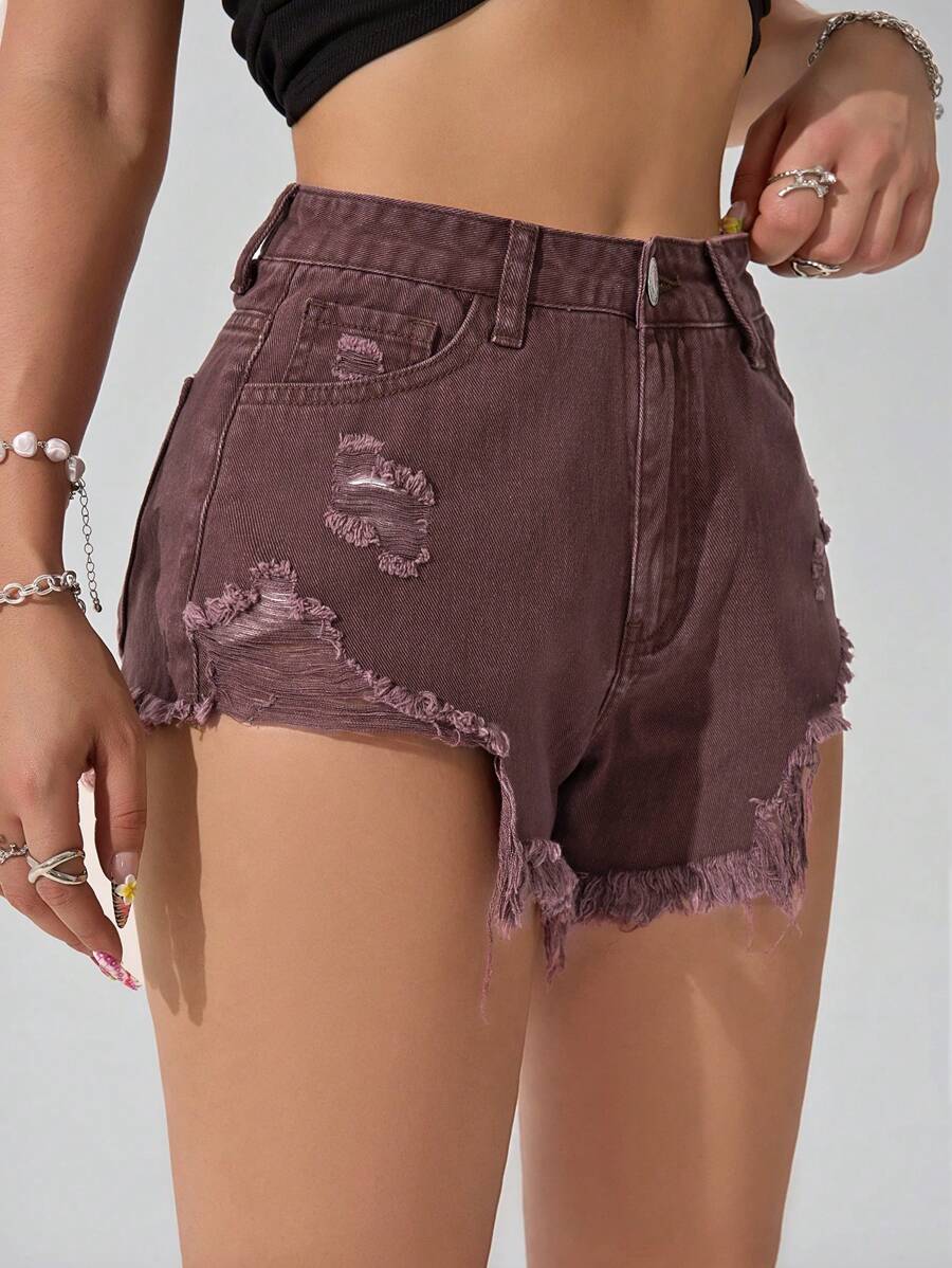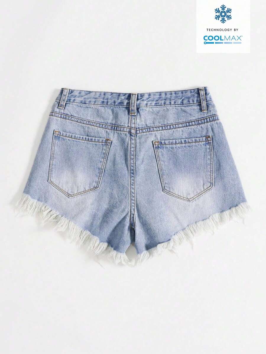 SHEIN EZwear Women Ripped Fringe Hem Everyday Denim Shorts Y2k