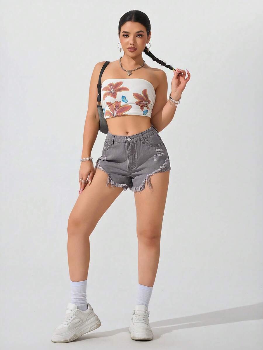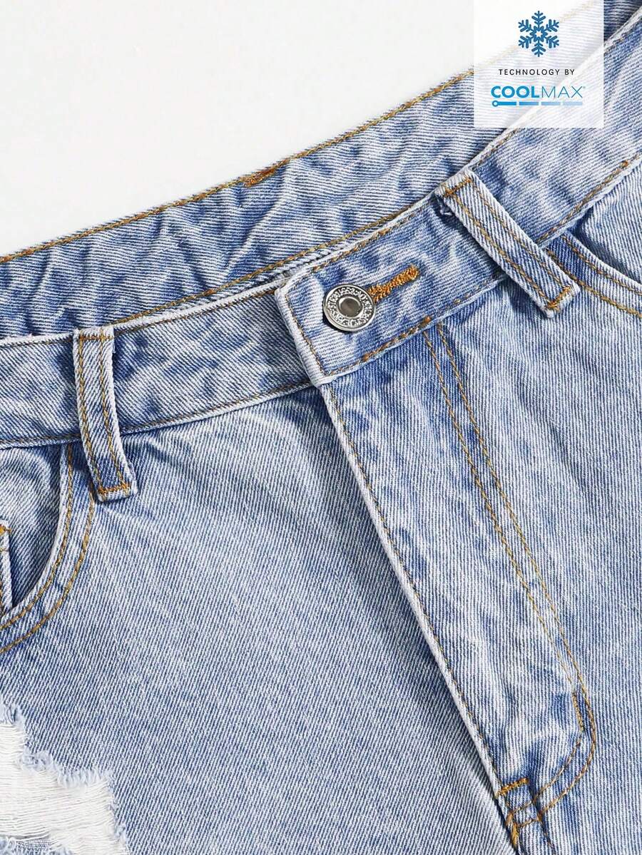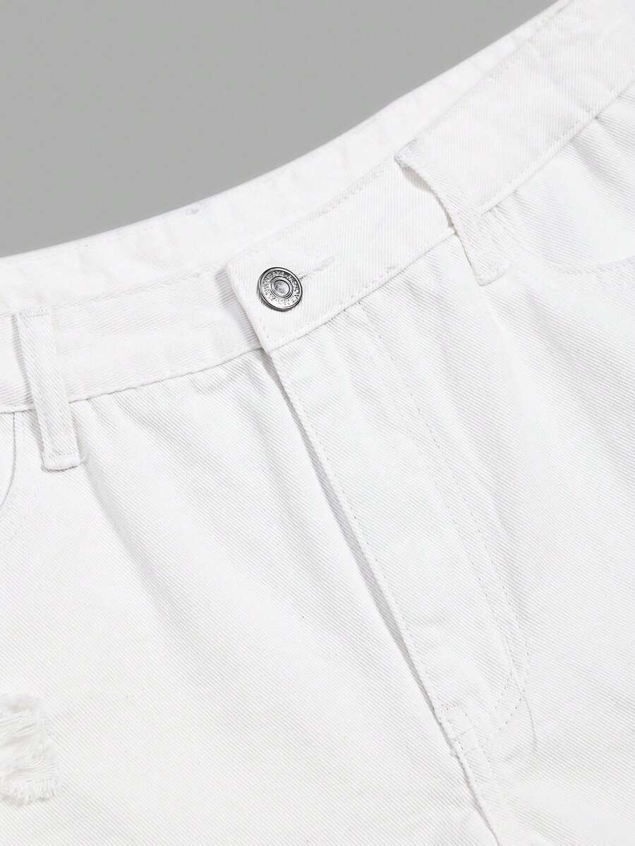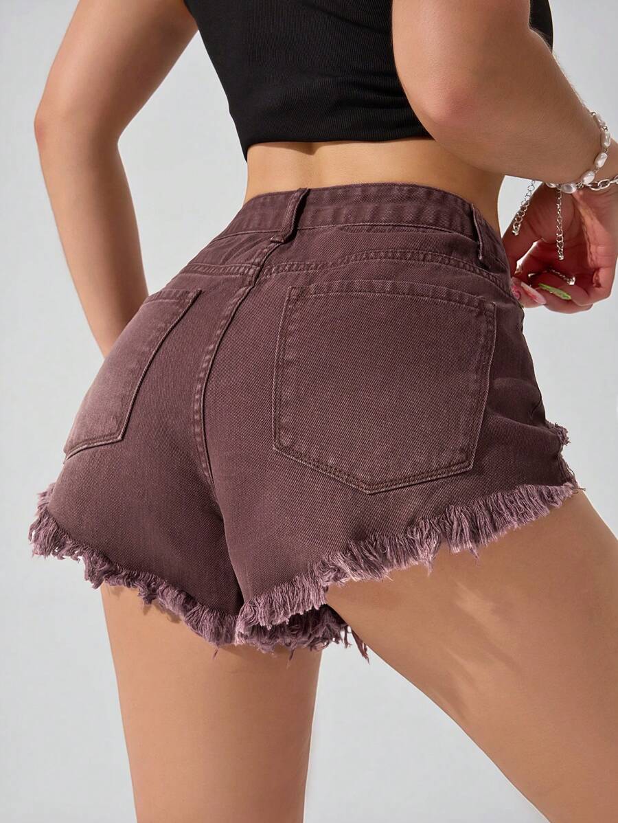 SHEIN EZwear Women Ripped Fringe Hem Everyday Denim Shorts Y2k